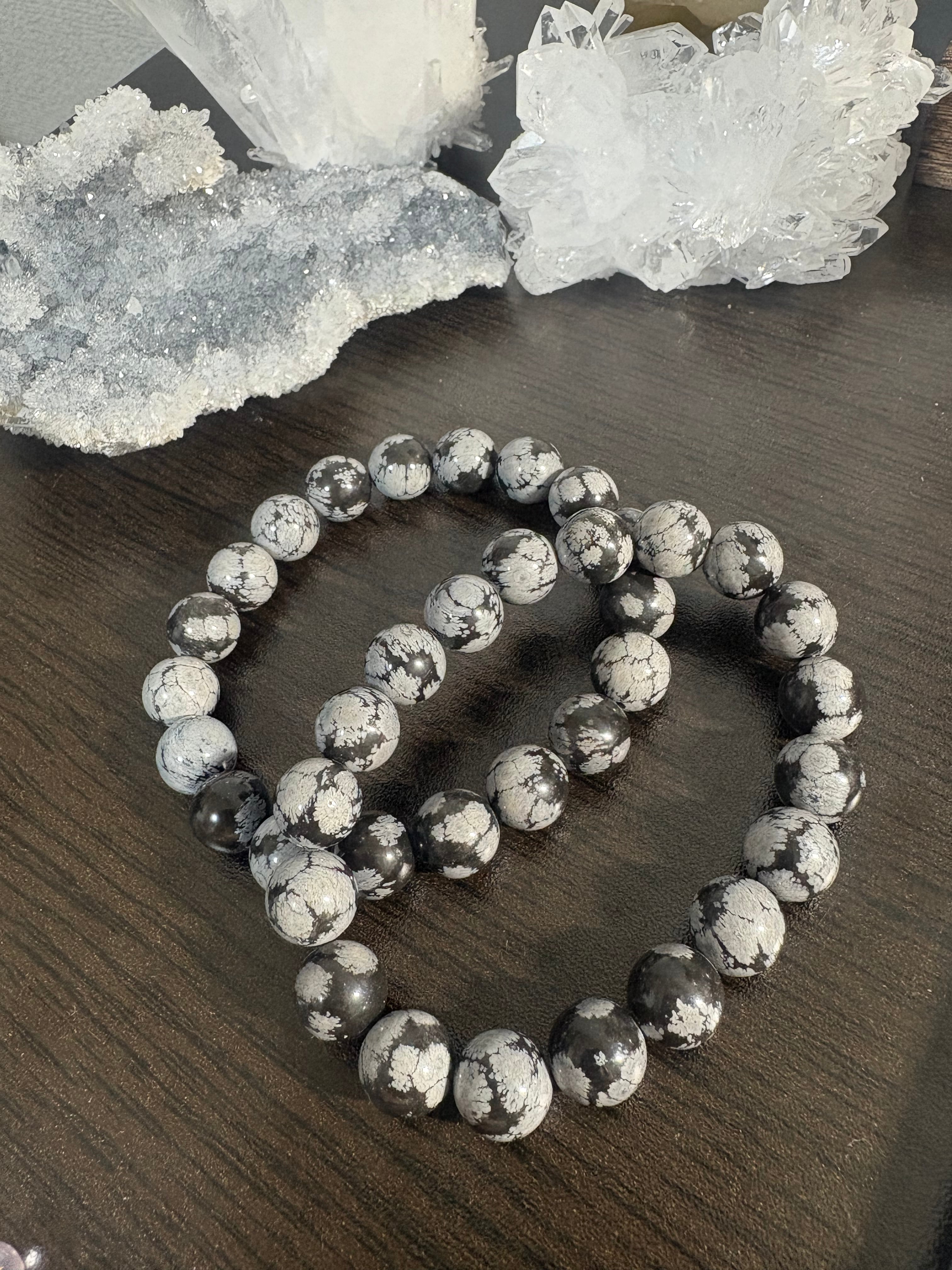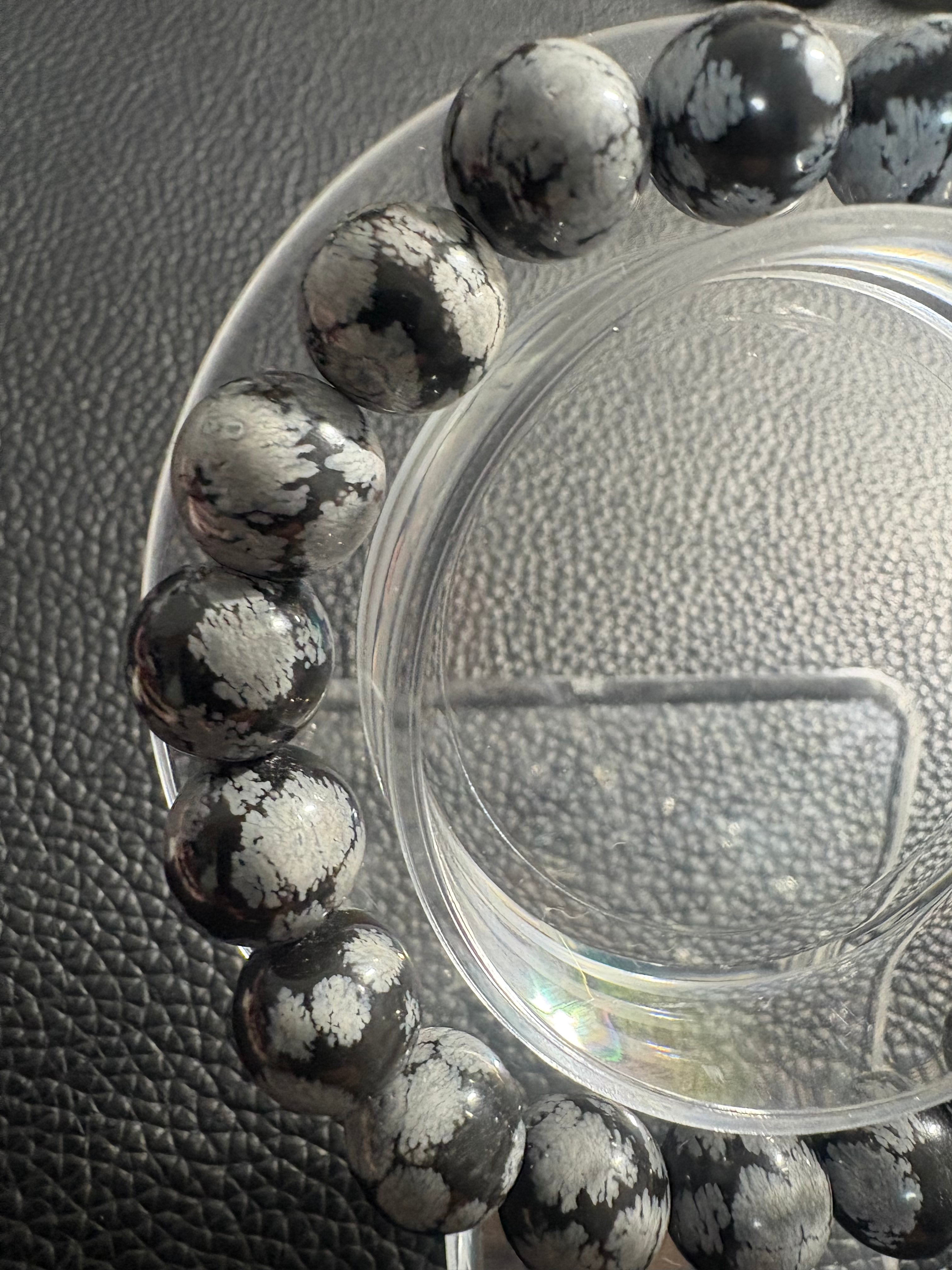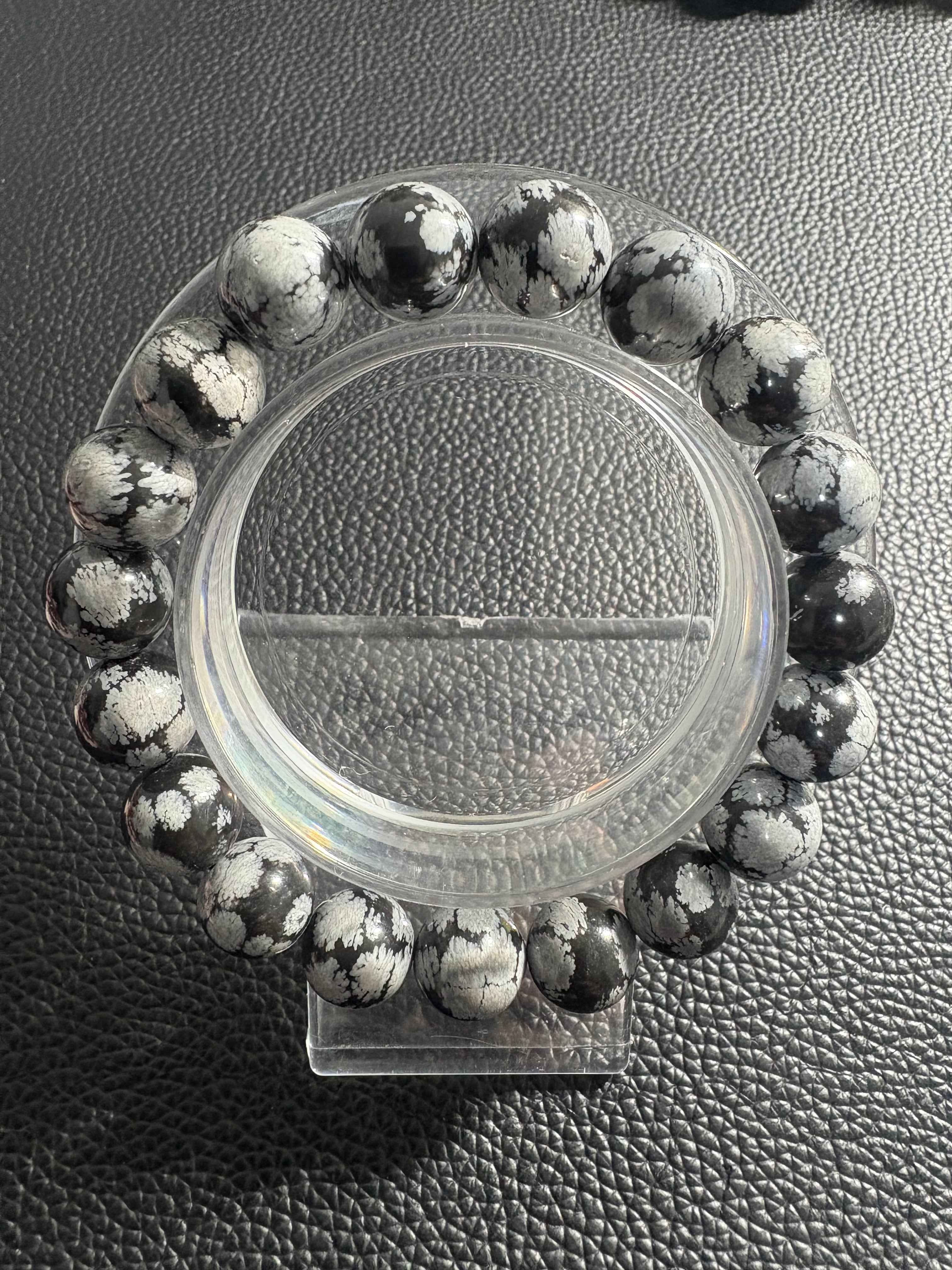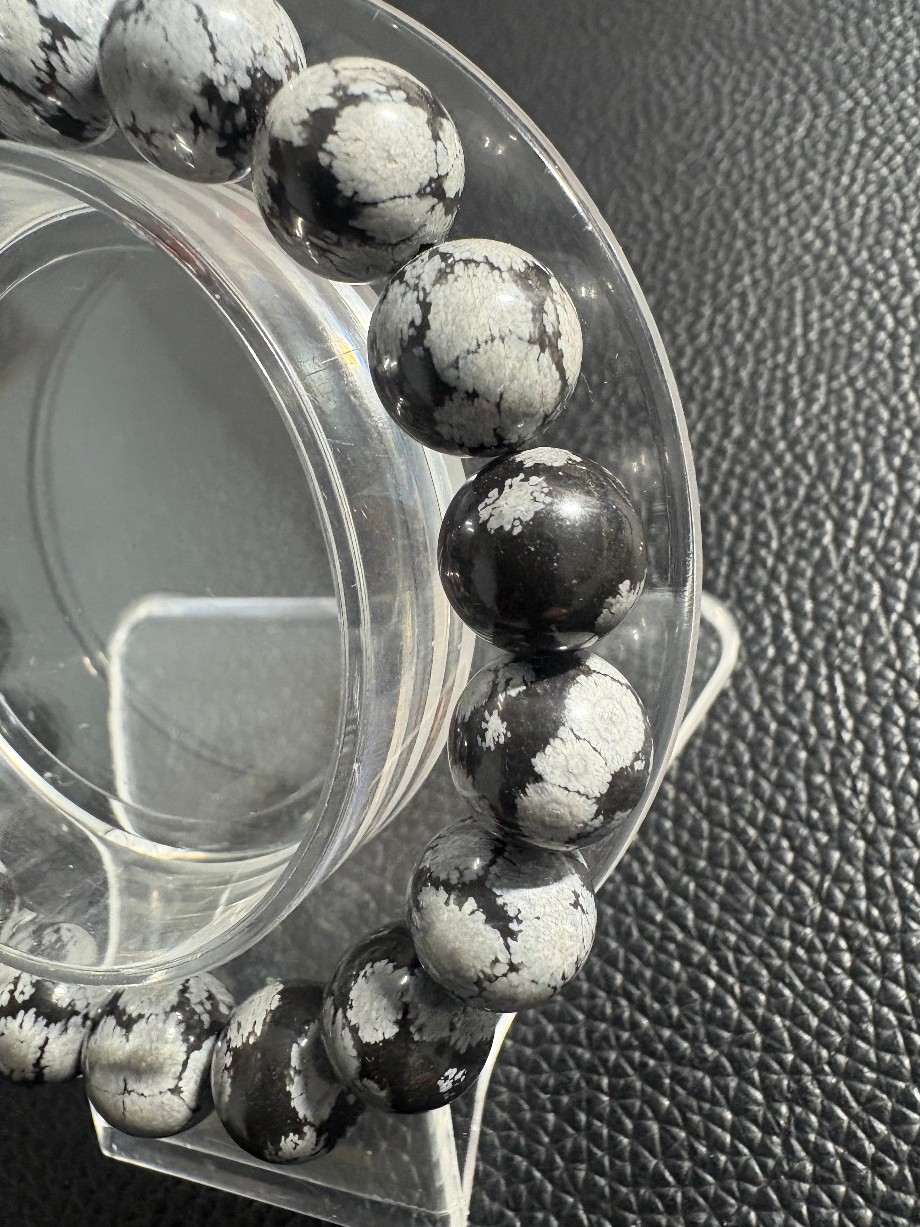 ✨再入荷✨スノーフレークオブシディアン✨ サイズ10.7ミリ 内径16.5㎝ ※フォローして頂き、10%OFFクーポンをご利用下さい☆