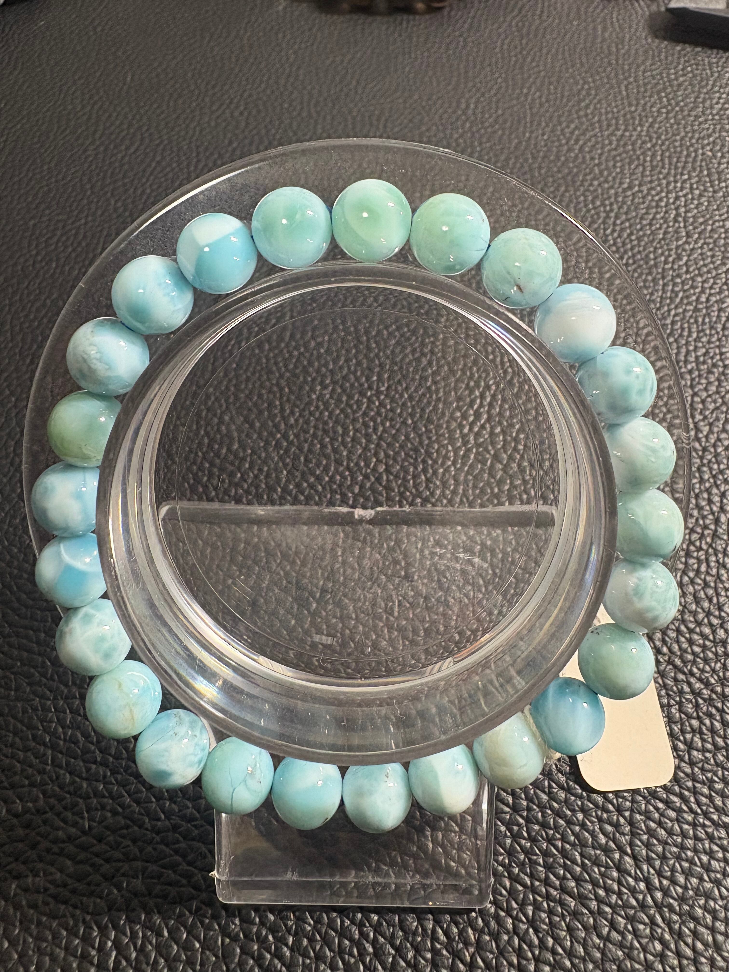 ✨お買い得ラリマー✨ サイズ8ミリ 内径16.5㎝ ※黒い点(マンガン)があるので安いですが、お値段以上に綺麗だと思います✨ ※フォローして頂き10%OFFクーポンをご利用下さい♪