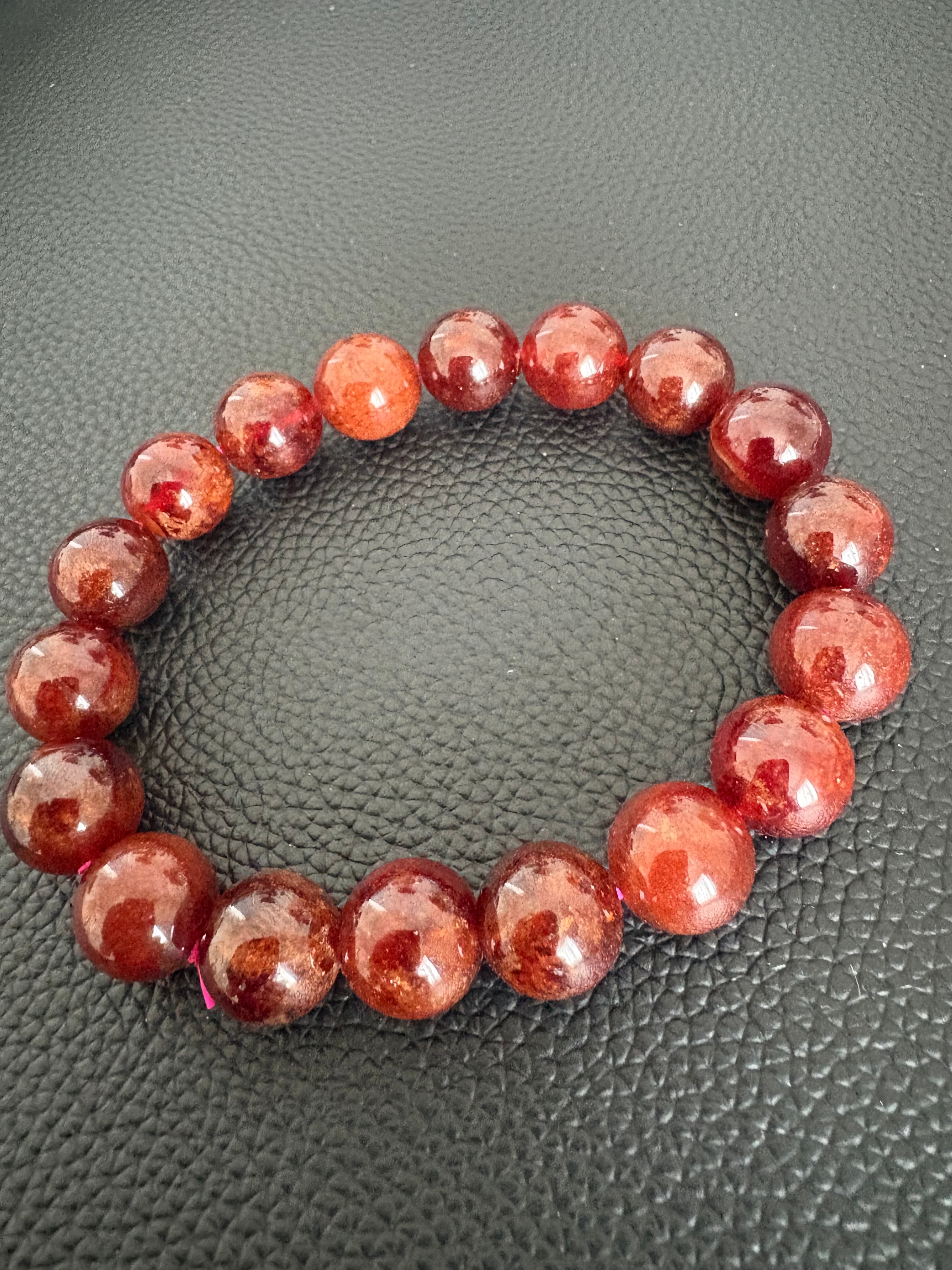 オレンジガーネットのブレスレットは、持ち主に情熱や活力を与え、目標達成をサポートするとされています。また、エネルギーの循環を促進し、心身のバランスを整える効果も期待できます。さらに、魔除けや守護の力も持つとされ、ネガティブな感情やエネルギーを浄化するとも言われています。