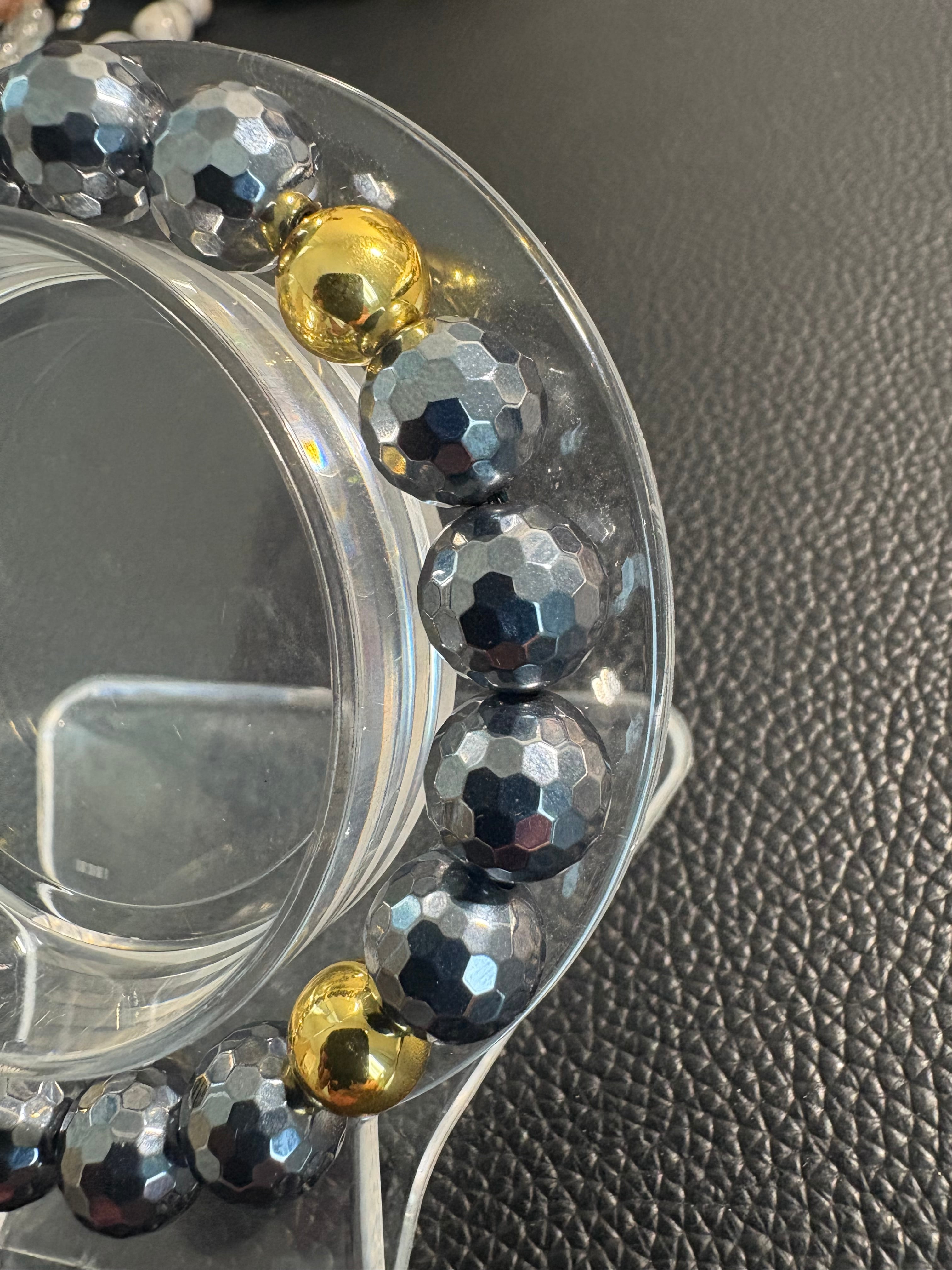 ✨テラヘルツ(ミラボールカット)&ヘマタイトブレス✨ サイズ10ミリ 内径16㎝ ※内径調整可⭐︎PayIDアプリからフォローして頂き、10%OFFクーポンをご利用下さい♪ 2,700円→2,430円✨