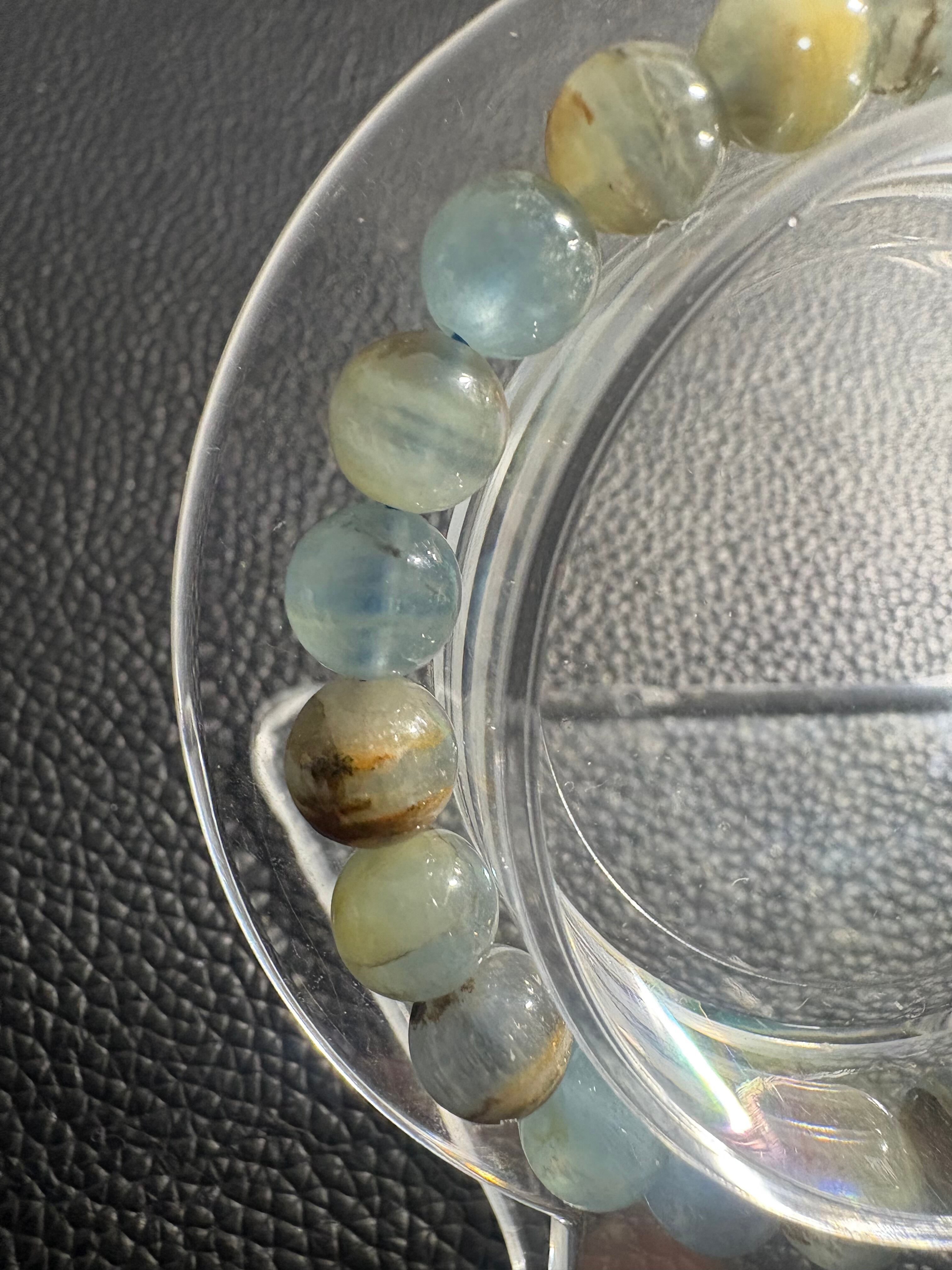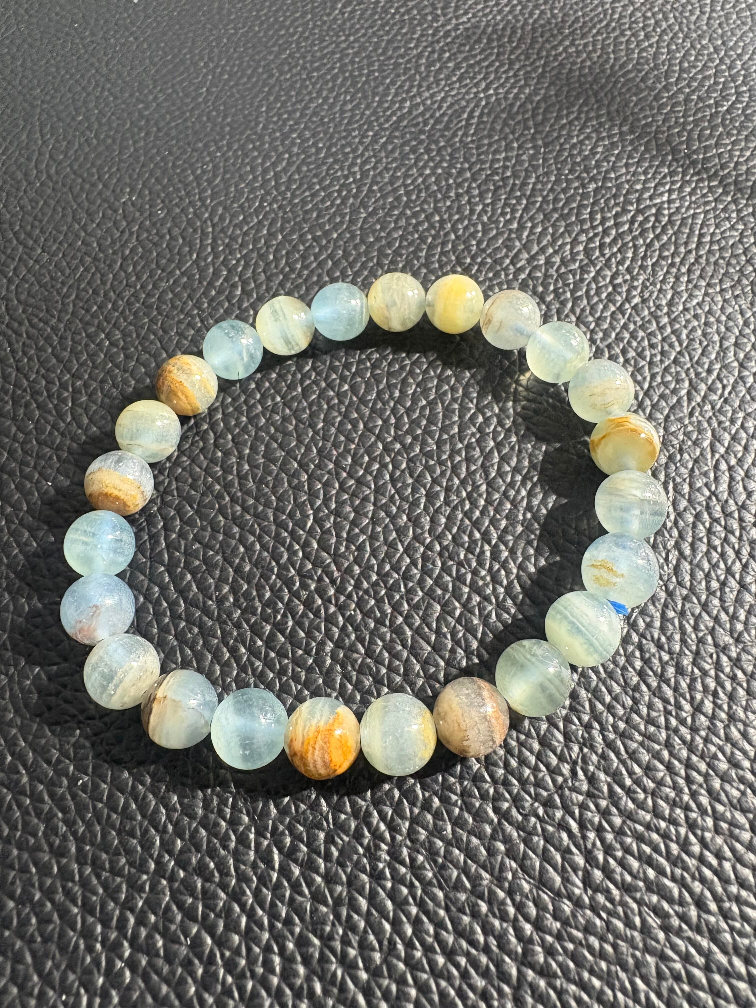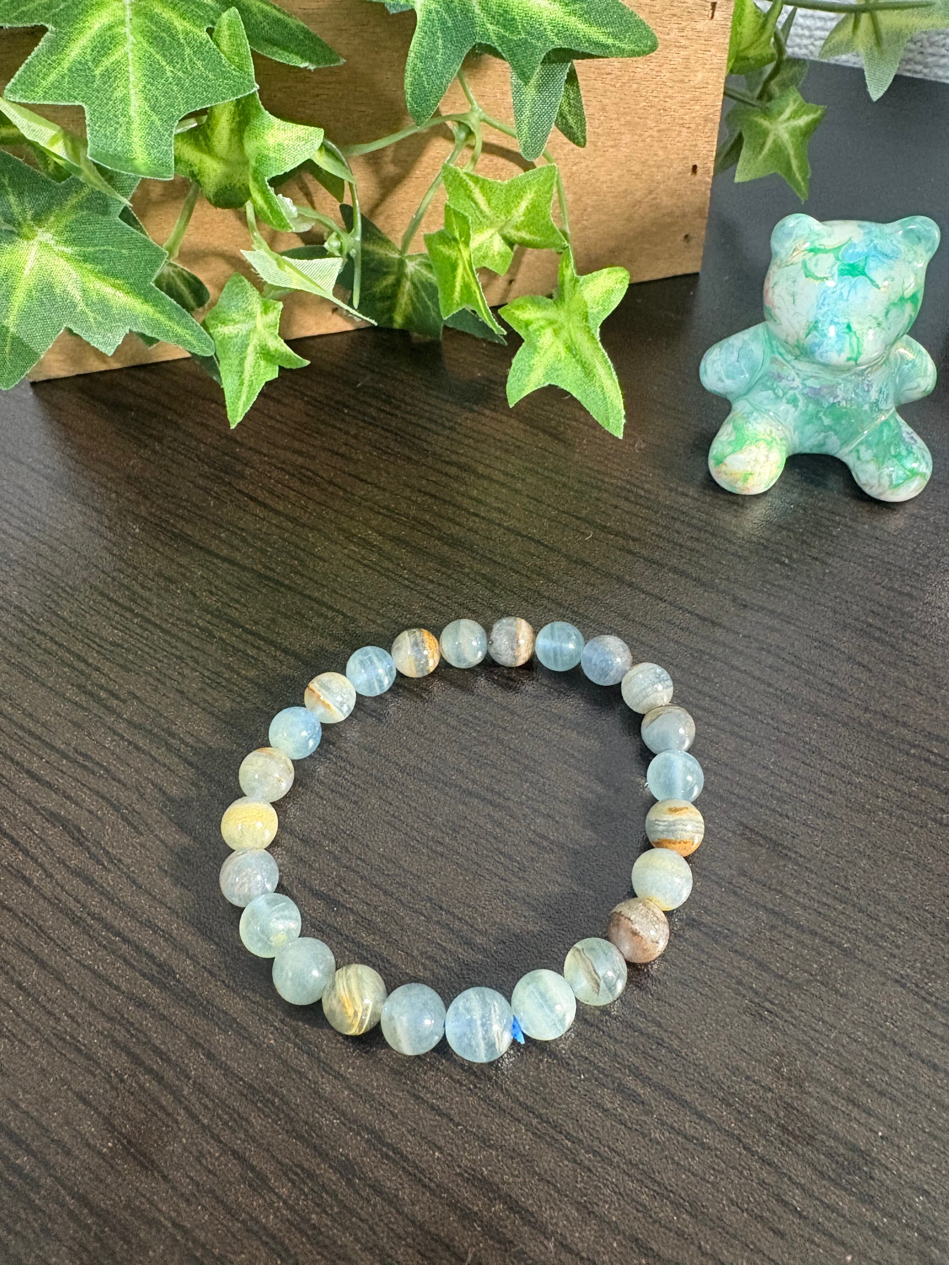 カリビアンカルサイト(カリビアンブルーカルサイト)ブレスレットの効果は、ストレス解消や癒し、ネガティブな感情の浄化、そして創造性や前向きな気持ち、目標達成をサポートすることが期待できます。