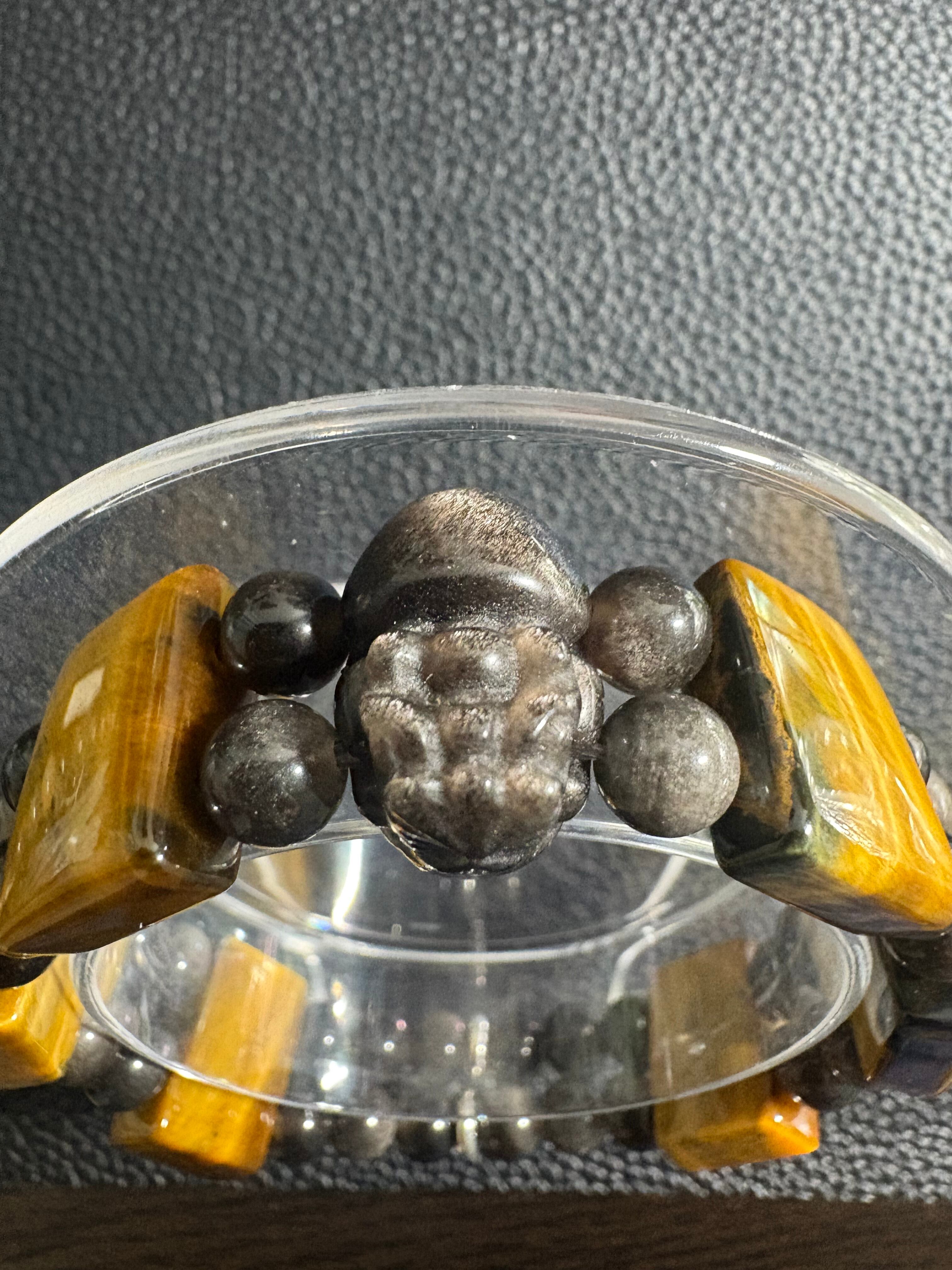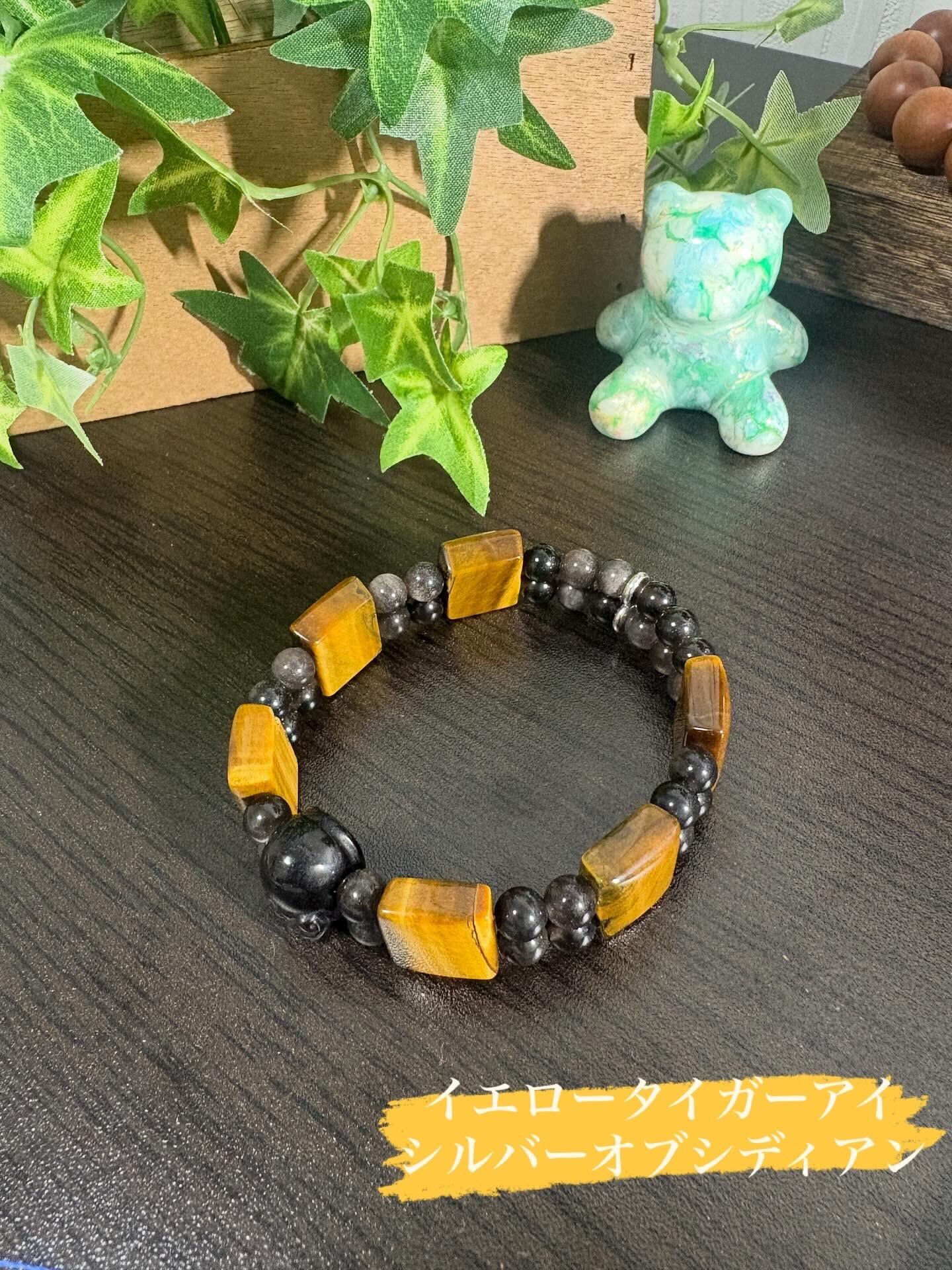 ✨デザインブレスレット(イエロータイガーアイ、シルバーオブシディアン)✨ サイズ16ミリ 内径16㎝ ※フォローして頂き、10%OFFクーポンをご利用下さい☆