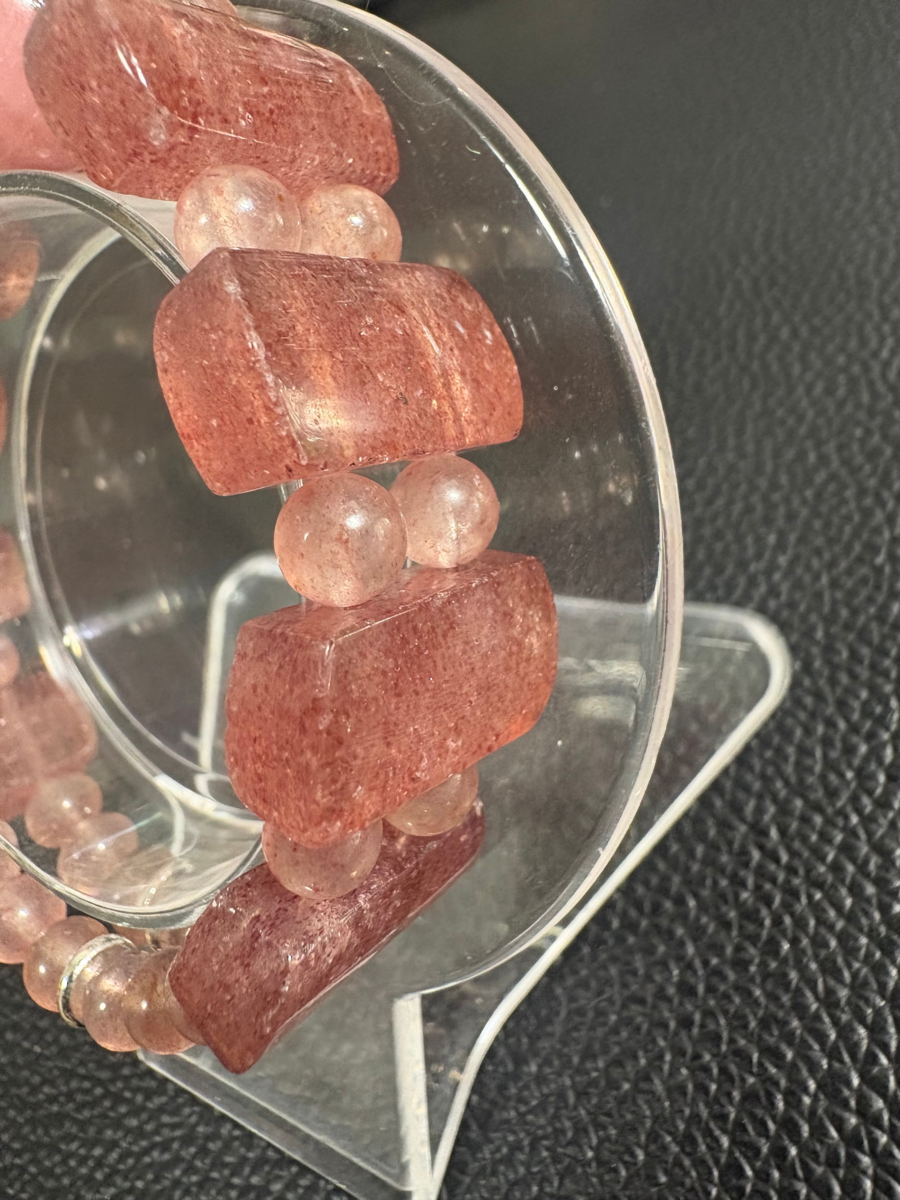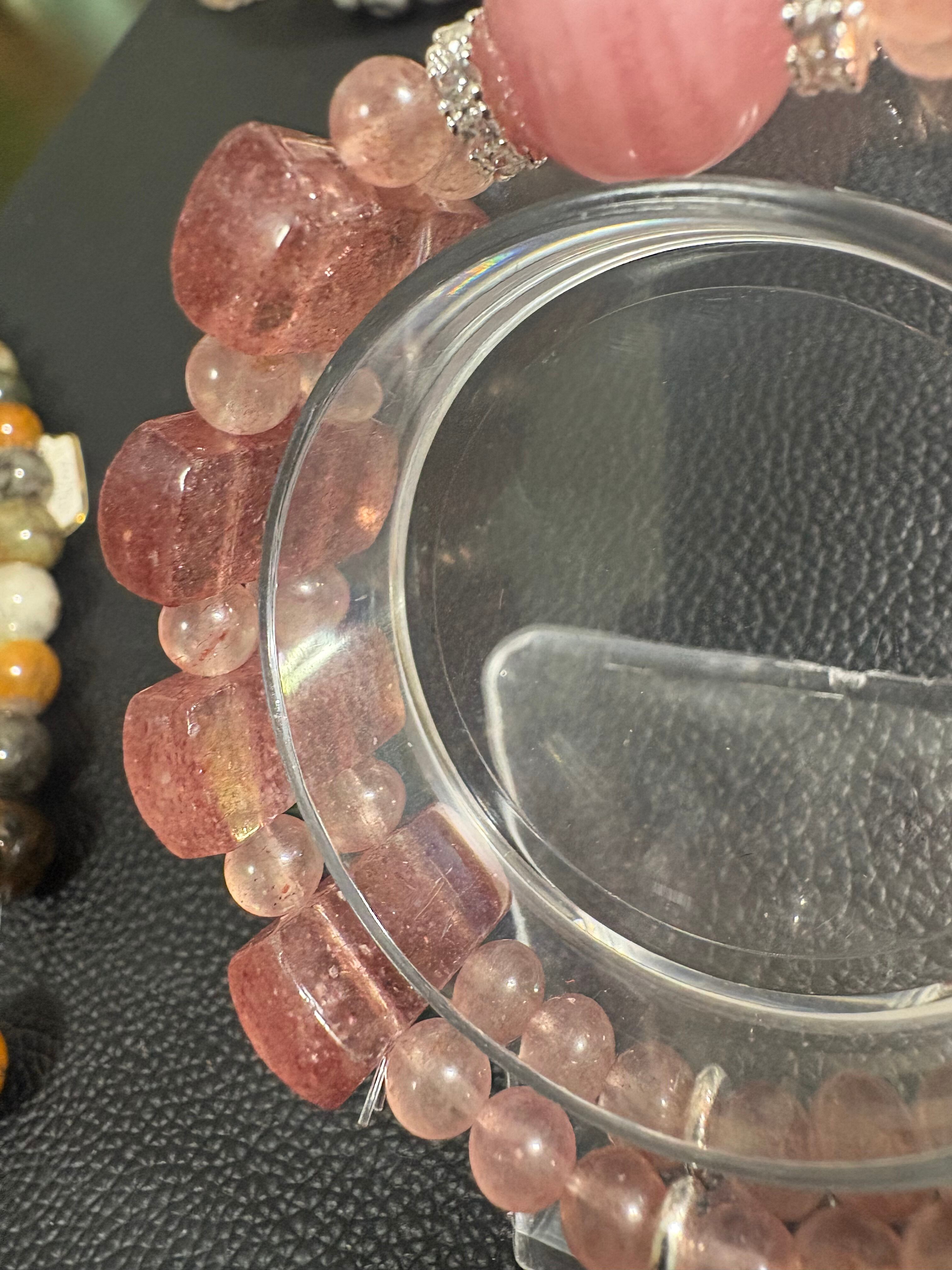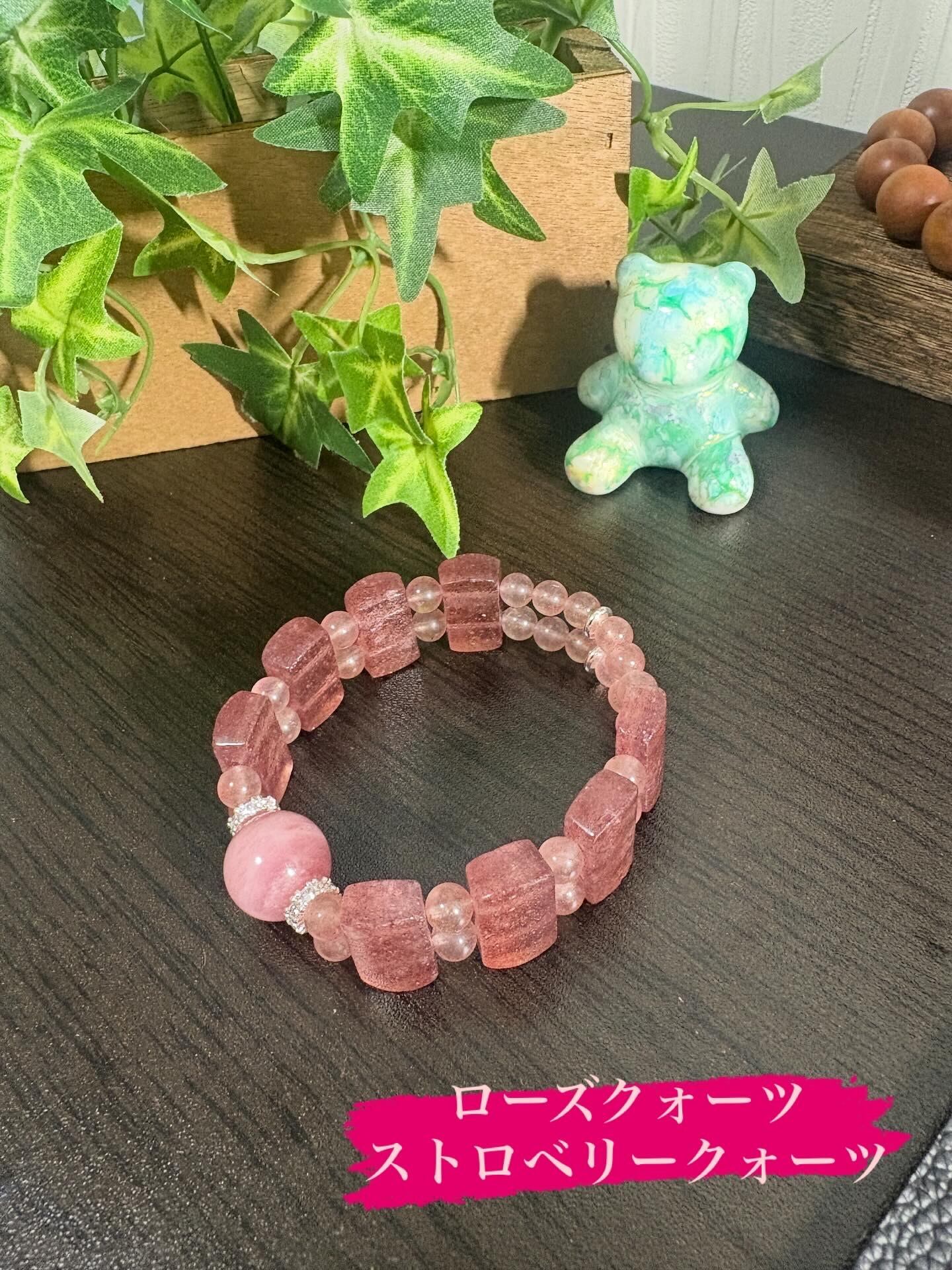 ✨デザインブレスレット(ローズクォーツ、ストロベリークォーツ)✨ サイズ19ミリ 内径15㎝ ※フォローして頂き、10%OFFクーポンをご利用下さい☆