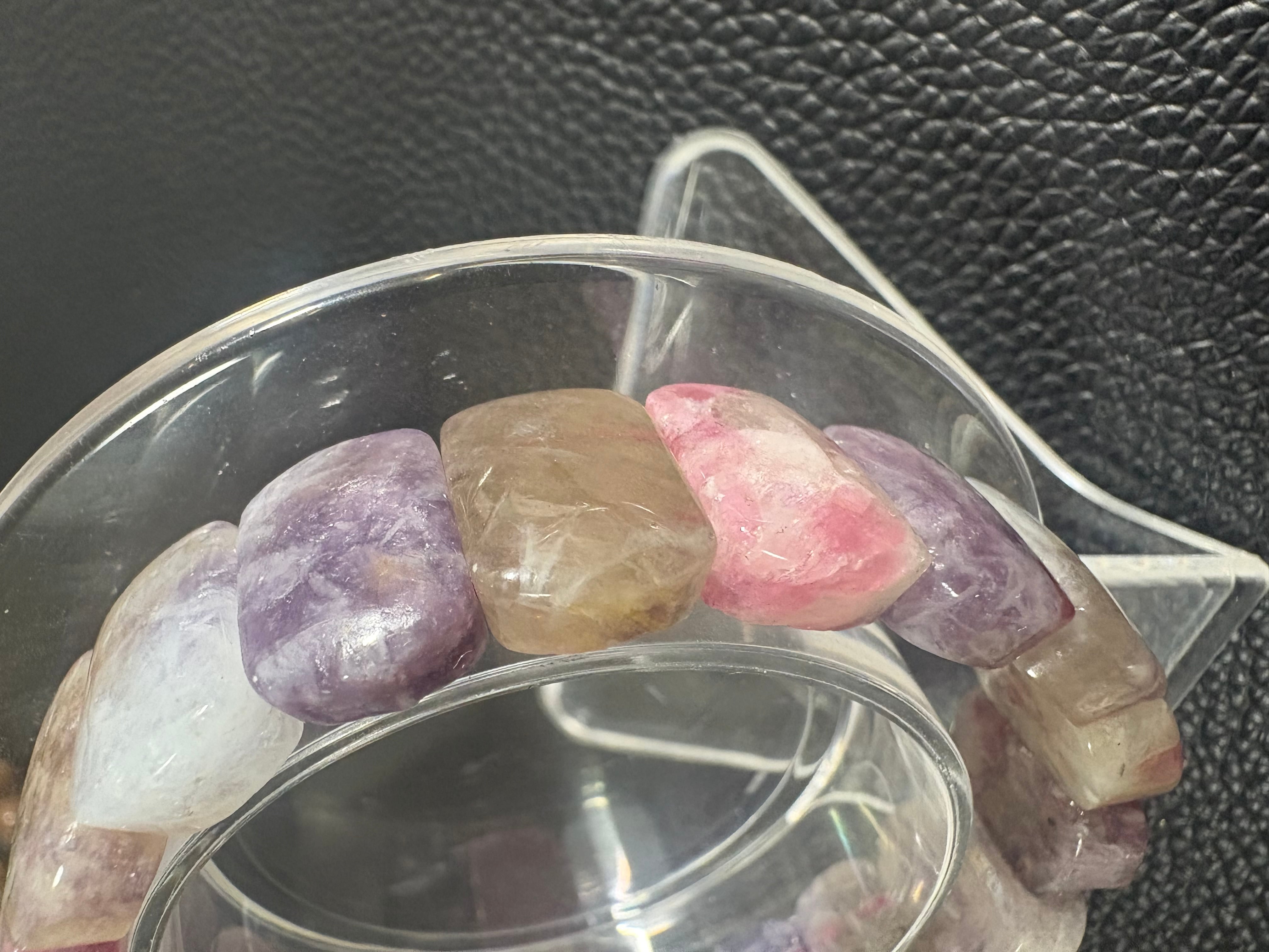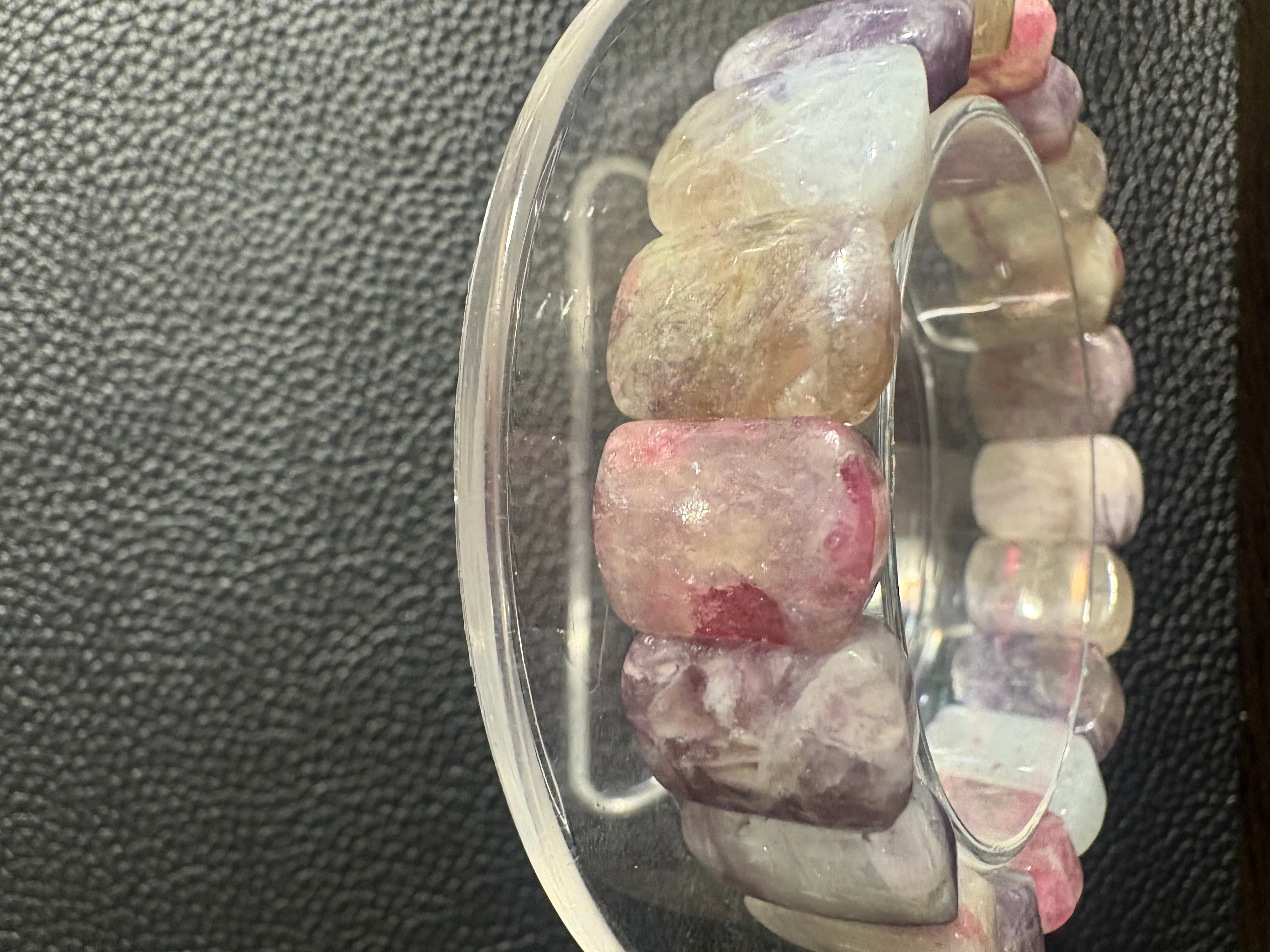 ユニコーンストーンは、マダガスカルで発見された、レピドライト、ピンクトルマリン、スモーキークォーツ、クリーブランダイトなどが混在する鉱物で、癒しの力が強く、不安や恐怖から解放されるとされます。また、強力なエネルギーで精神的な安定と強さを培い、困難な状況を乗り越える勇気を与え、霊的な保護にも役立つとされています。希望や未来、愛を引き寄せるスピリチュアルな意味合いも持ちます。