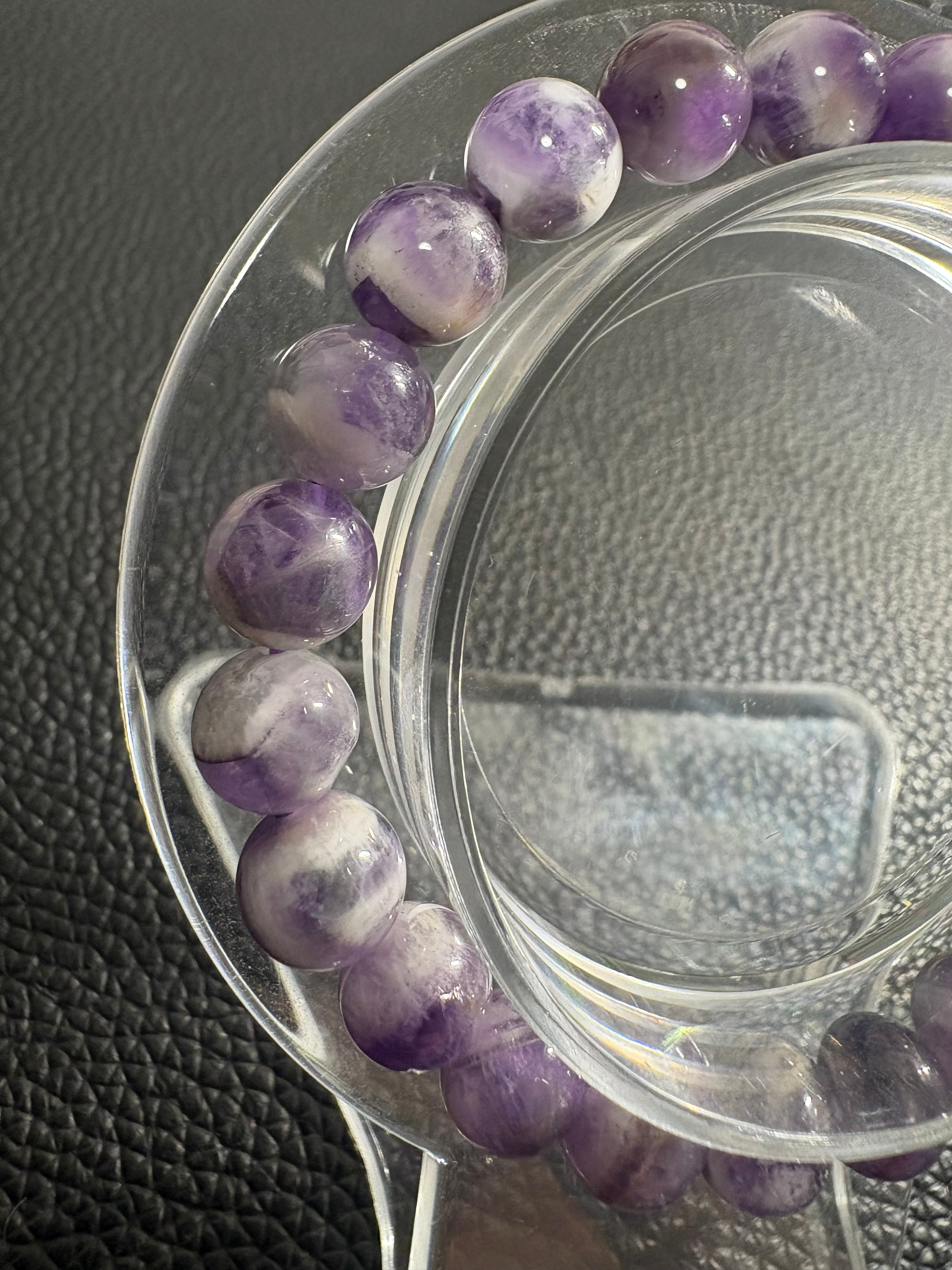 ドリームアメジストはアメジストの一種であり、心を穏やかにする、精神を安定させる、安眠効果がある、直感力や霊性を高める、そして魔除けや浄化作用を持つとされるパワーストーンです。また、美しい模様が特徴で、高いスピリチュアルなパワーを持つとされ、個性を発揮したい人や内面の美を磨きたい人のお守りにも適しています。