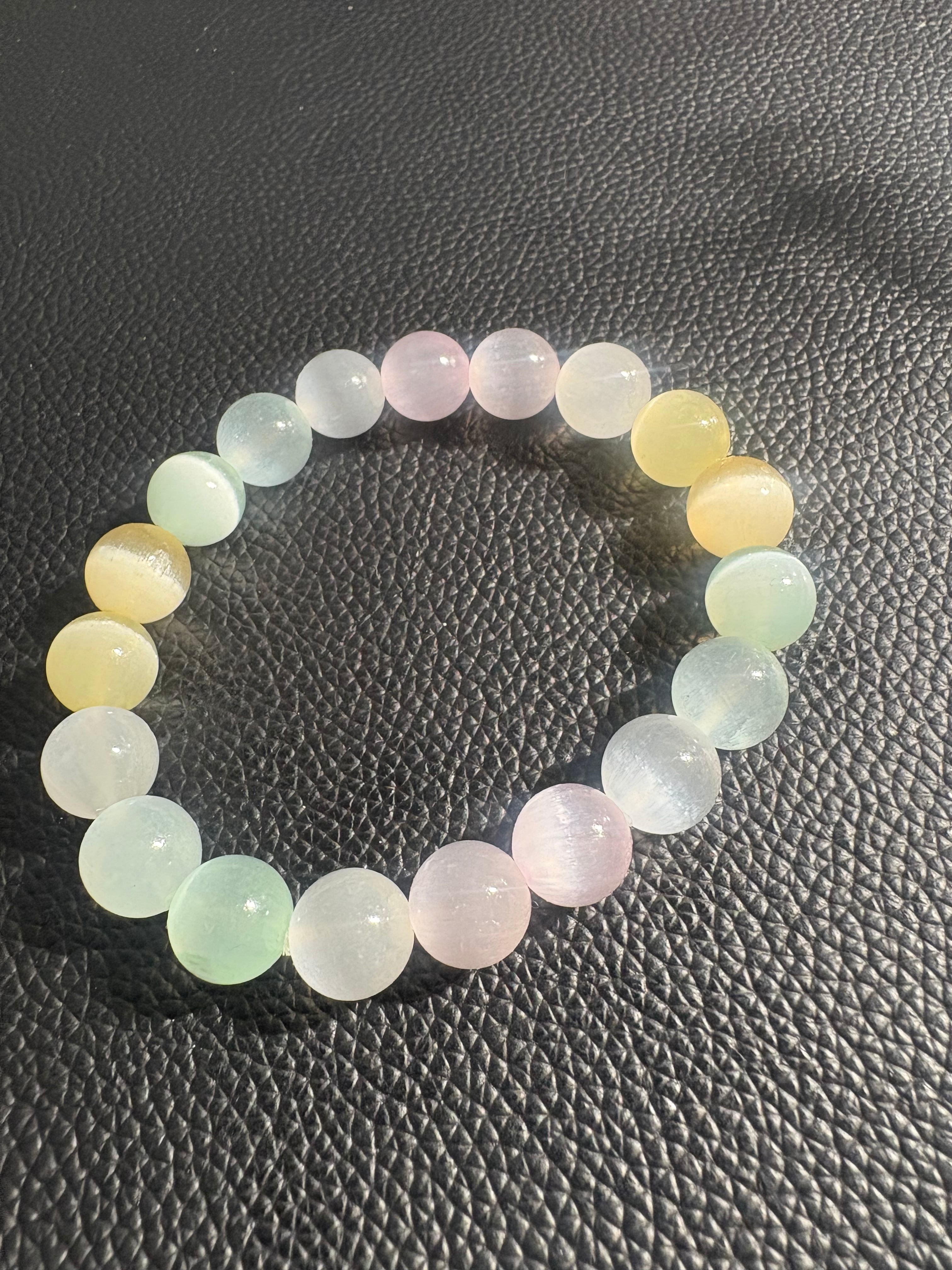 ✨カラフルセレナイト✨ サイズ10ミリ 内径16㎝ ※石は天然ですが、色は人工染めです☆