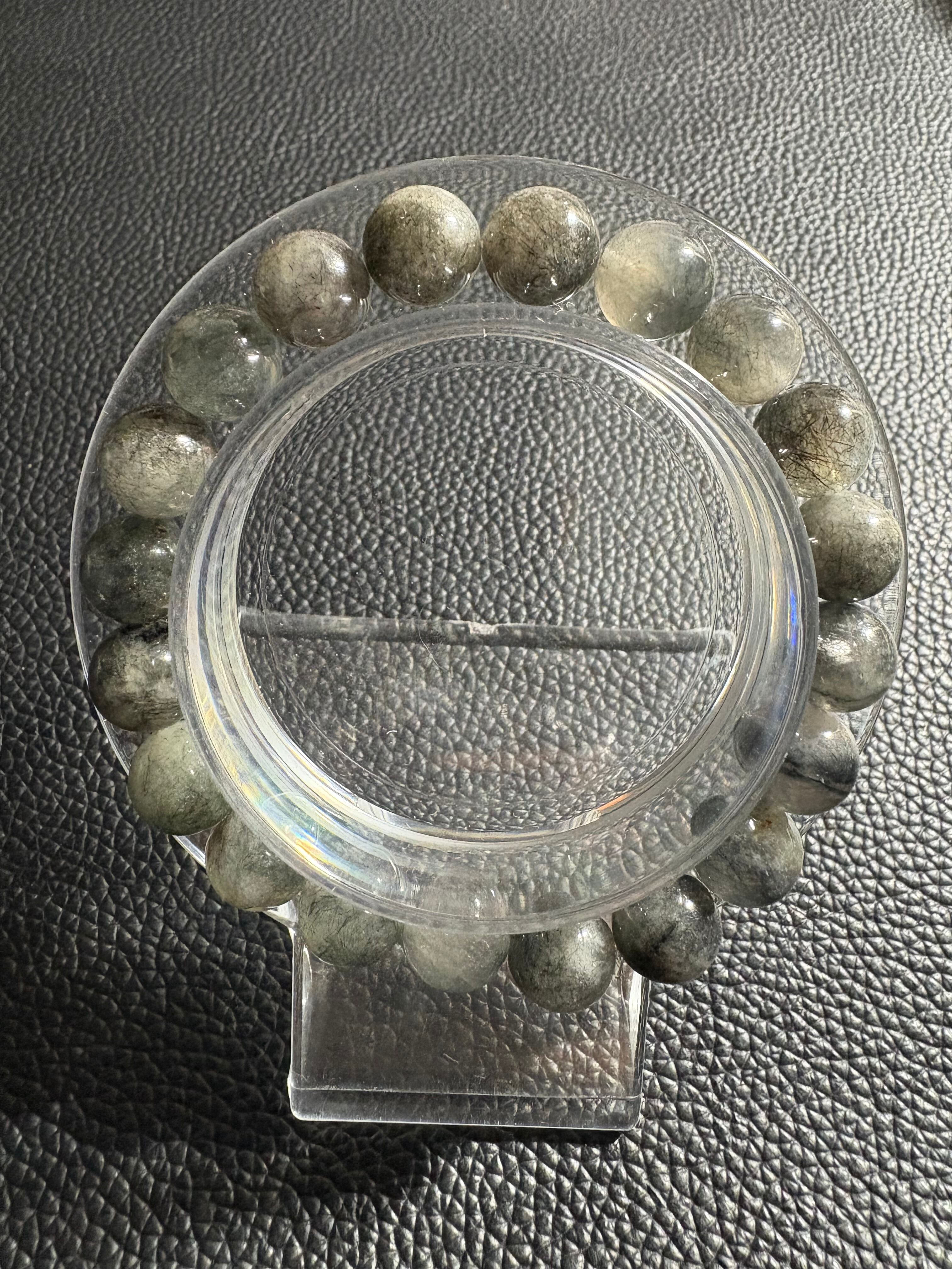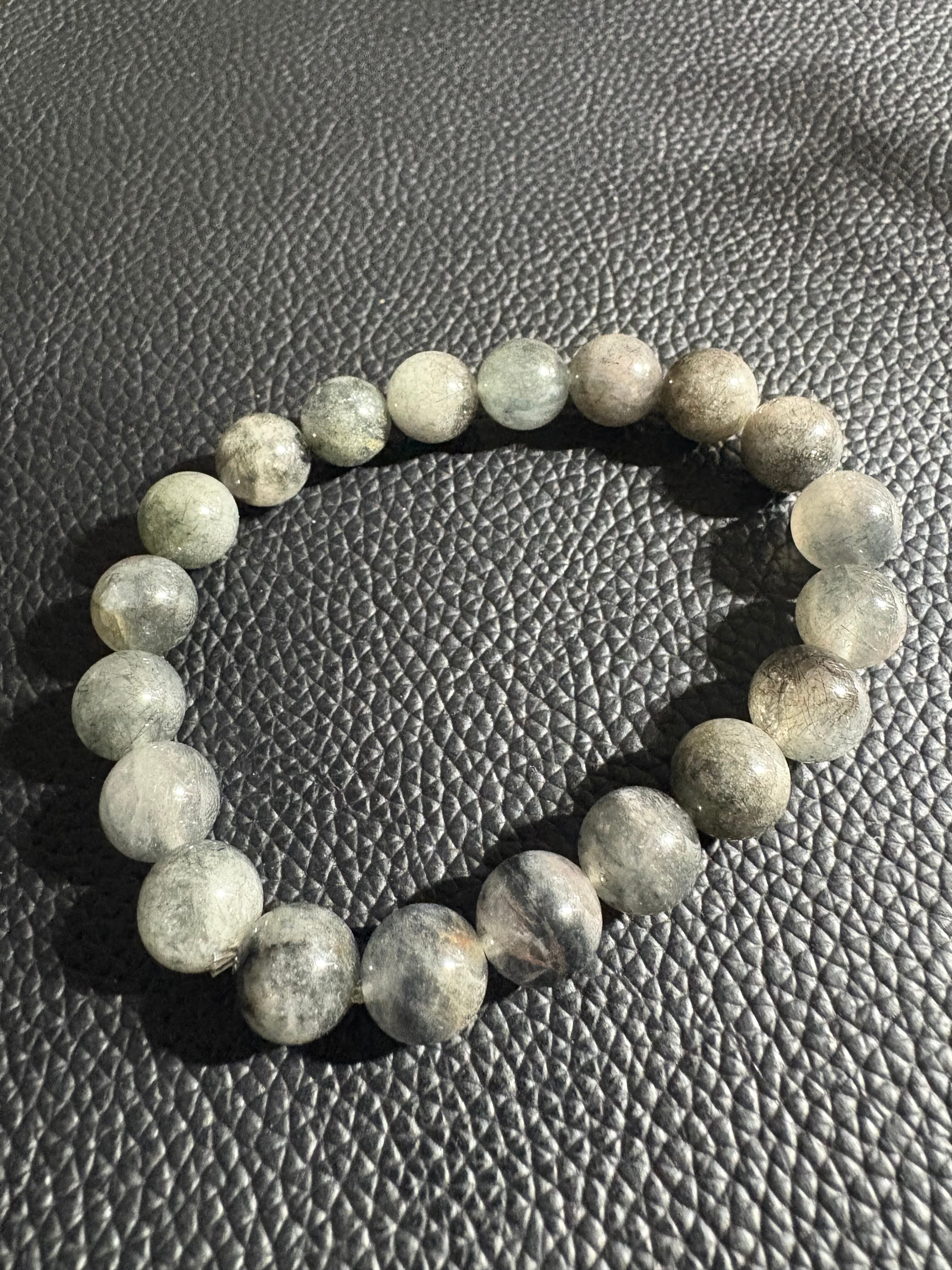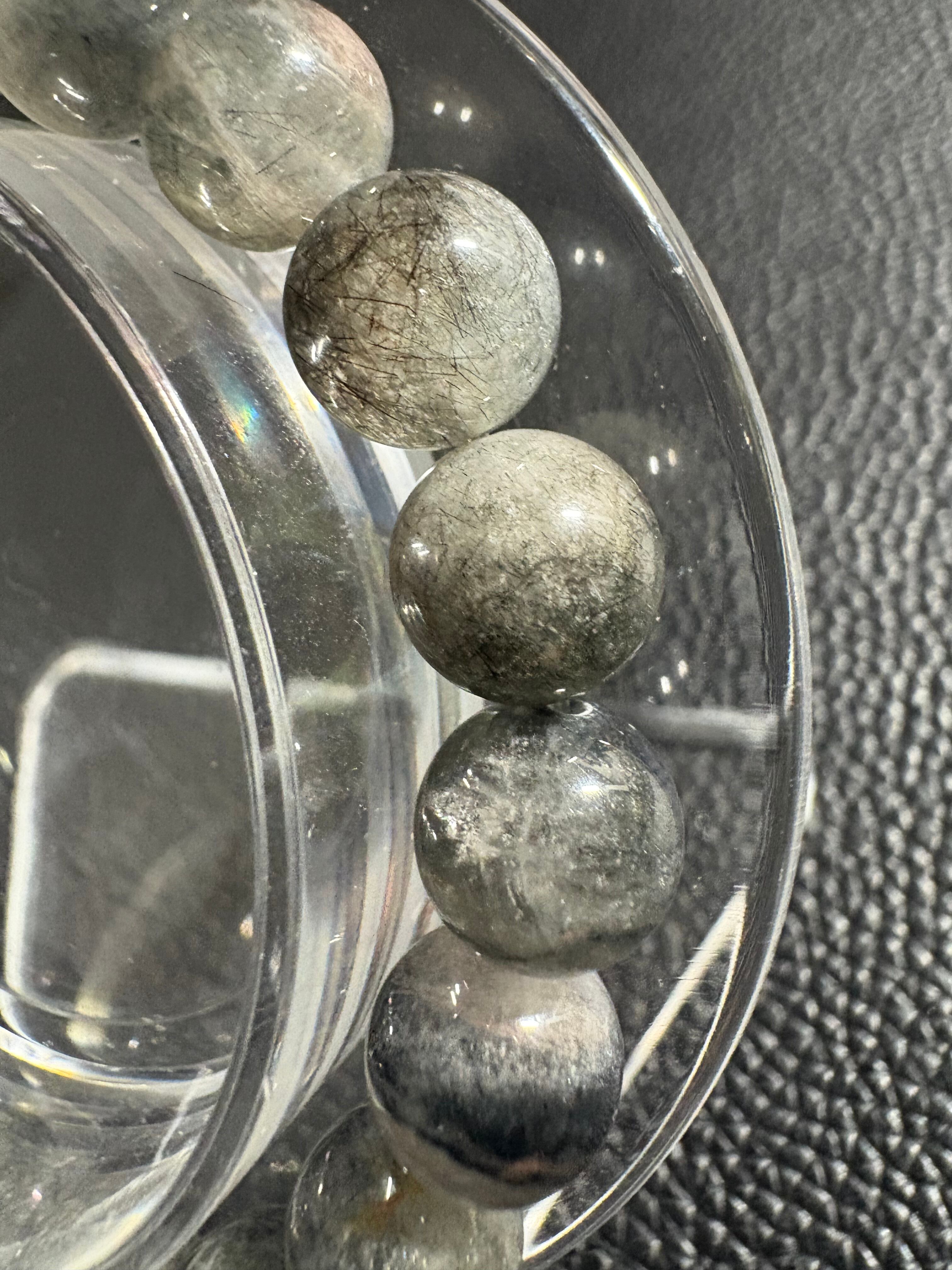 グレーラビットヘアブレスの主な効果は、癒しと安らぎです。通常のルチルクォーツよりも穏やかなエネルギーを持ち、不安やストレスを和らげ、心をリラックスさせる効果があると言われています。また、幸運をもたらし、精神を安定させたり、直感力を高めたりする効果も期待できます。