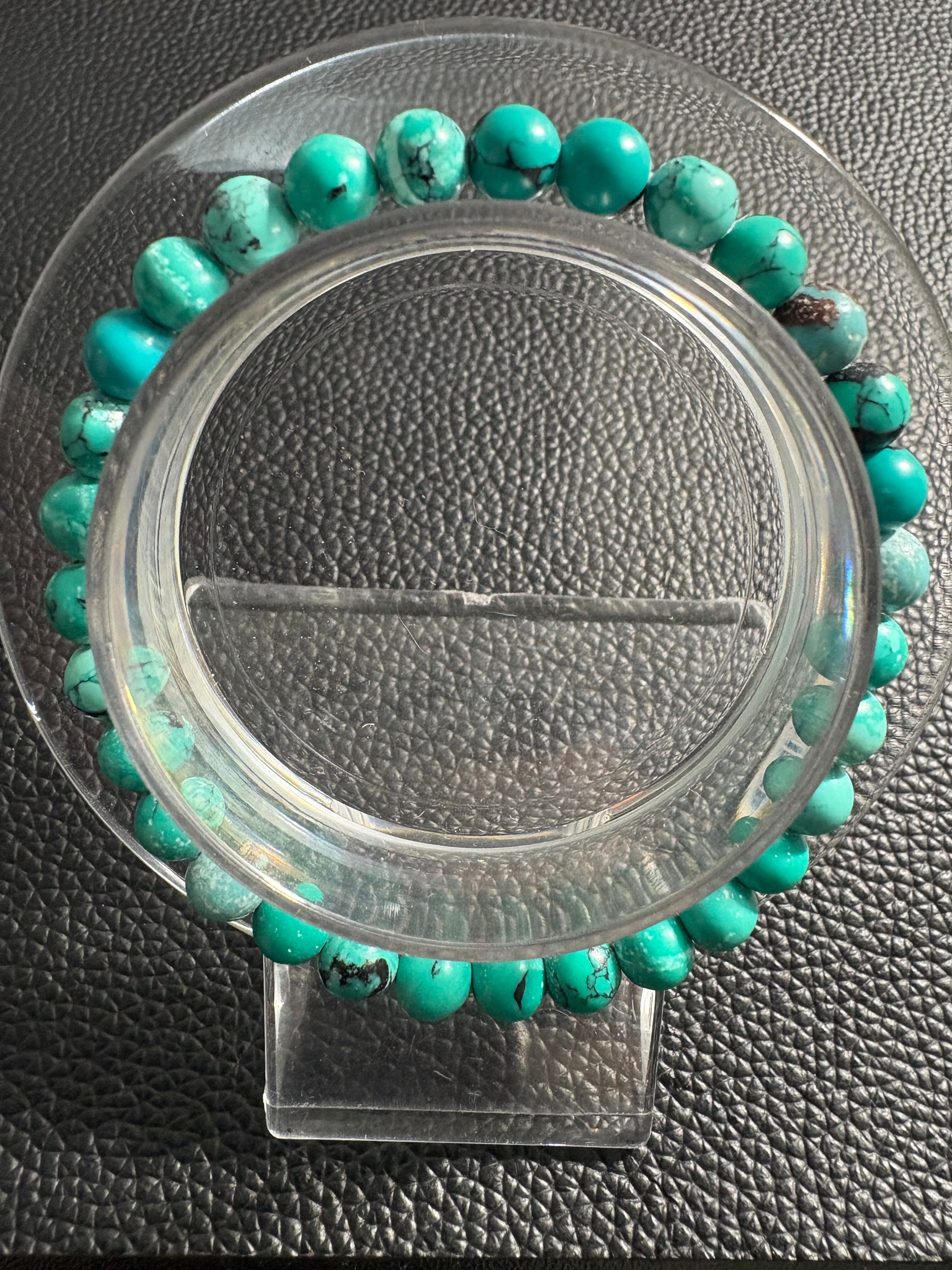 ターコイズブレスレットには、厄災から身を守る「守護」の効果と、心身の健康を癒す「ヒーリング」の効果があります。具体的には、困難を乗り越える勇気や積極性を与え、人間関係を良好に保ち、旅の安全を守るとされています。