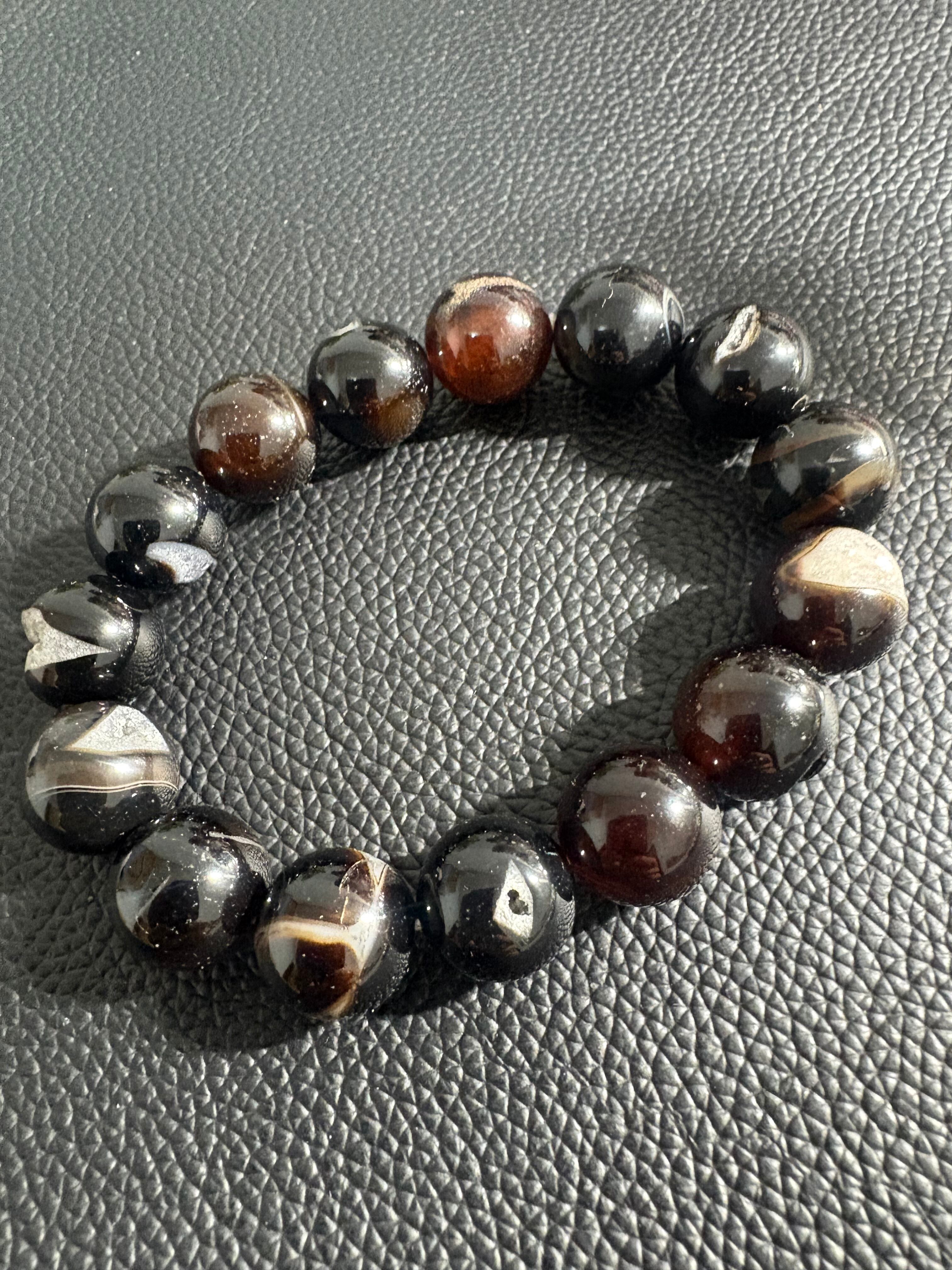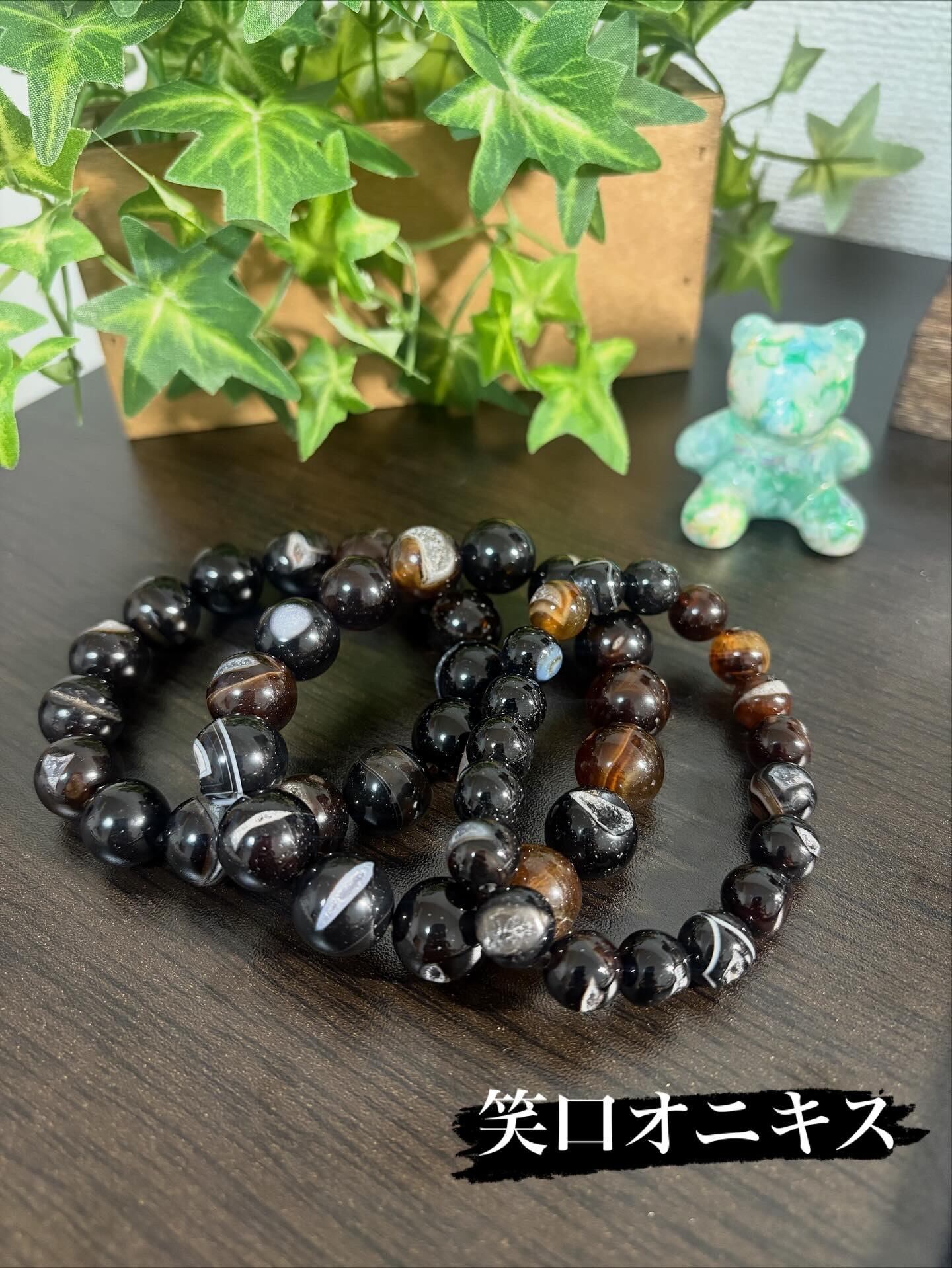 ✨笑口オニキス✨2-1 サイズ14ミリ 内径17㎝ ※フォローして頂き、10%OFFクーポンをご利用下さい☆
