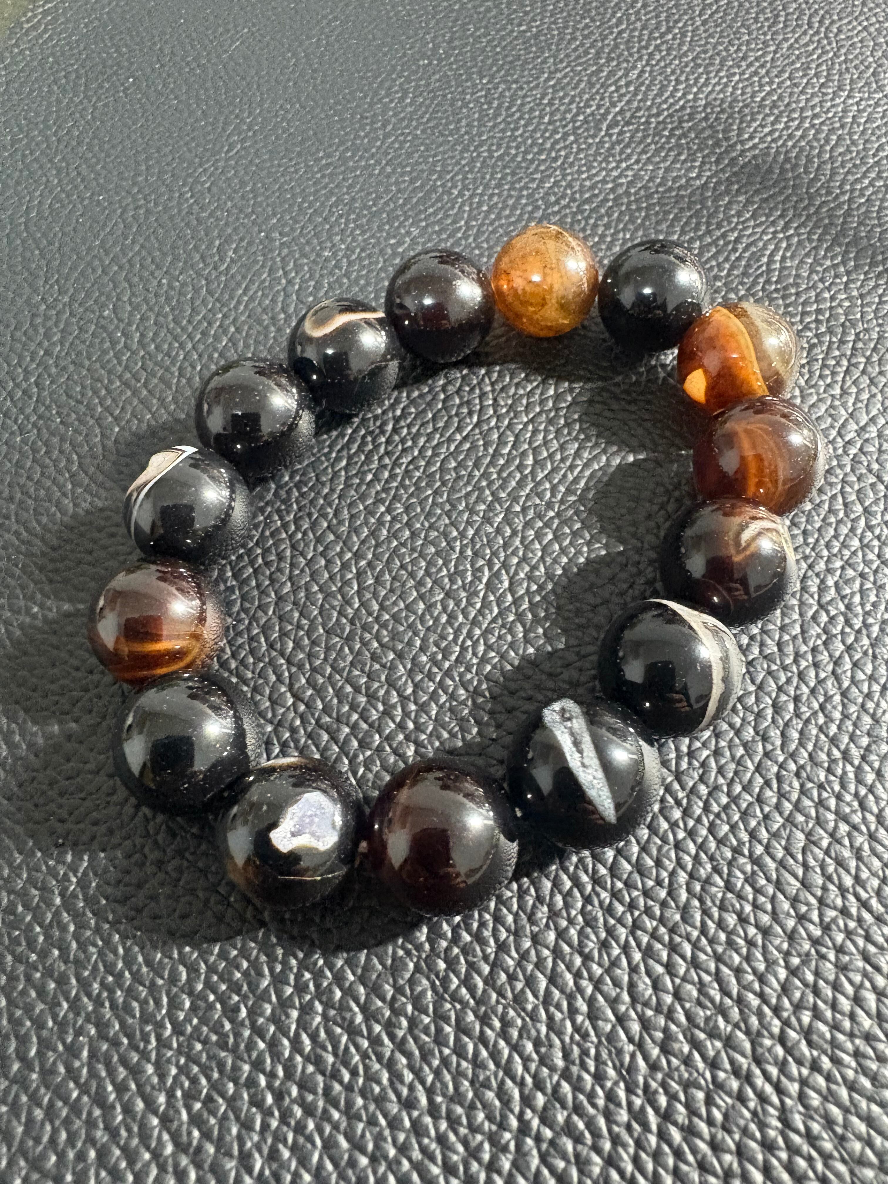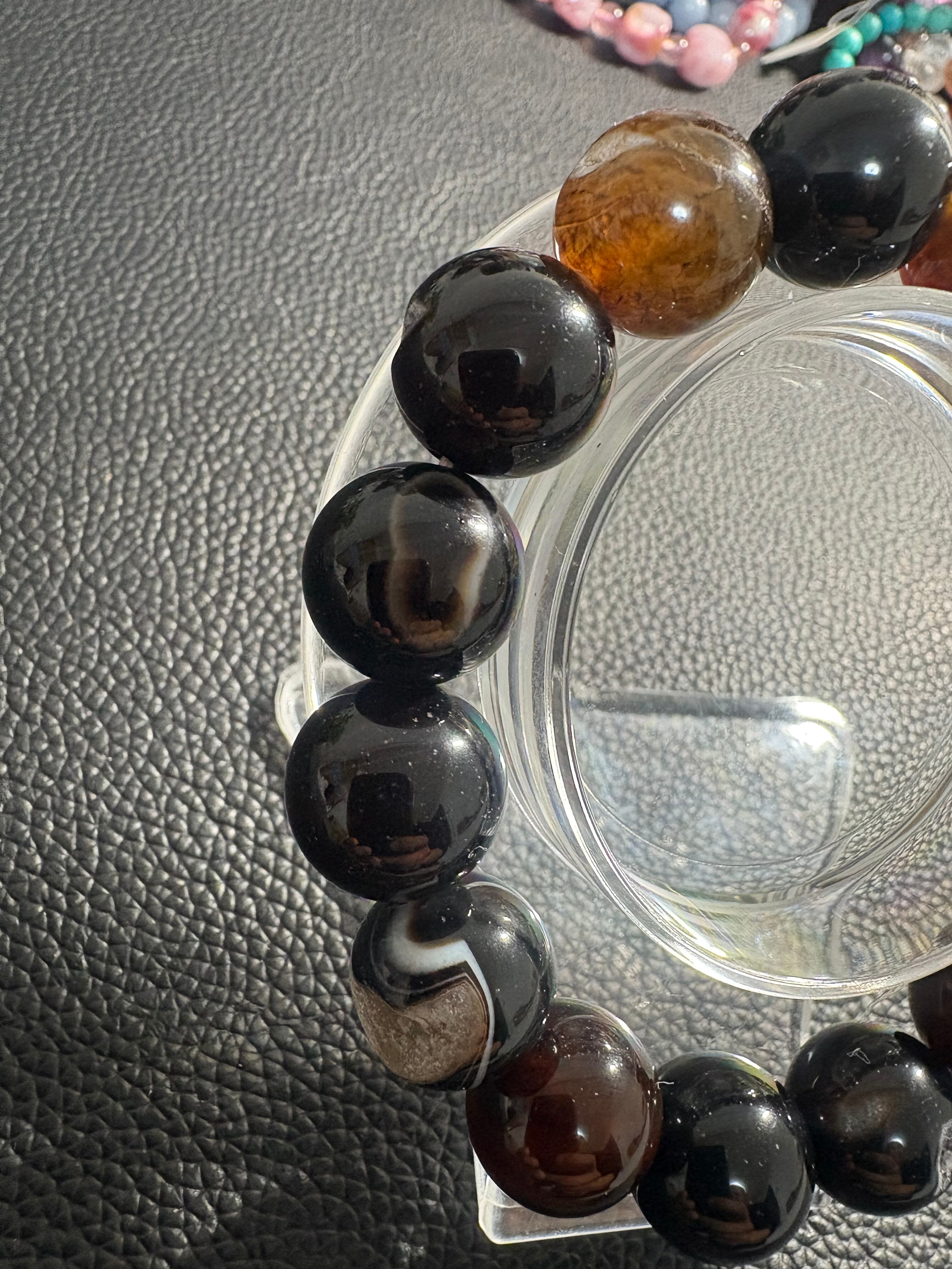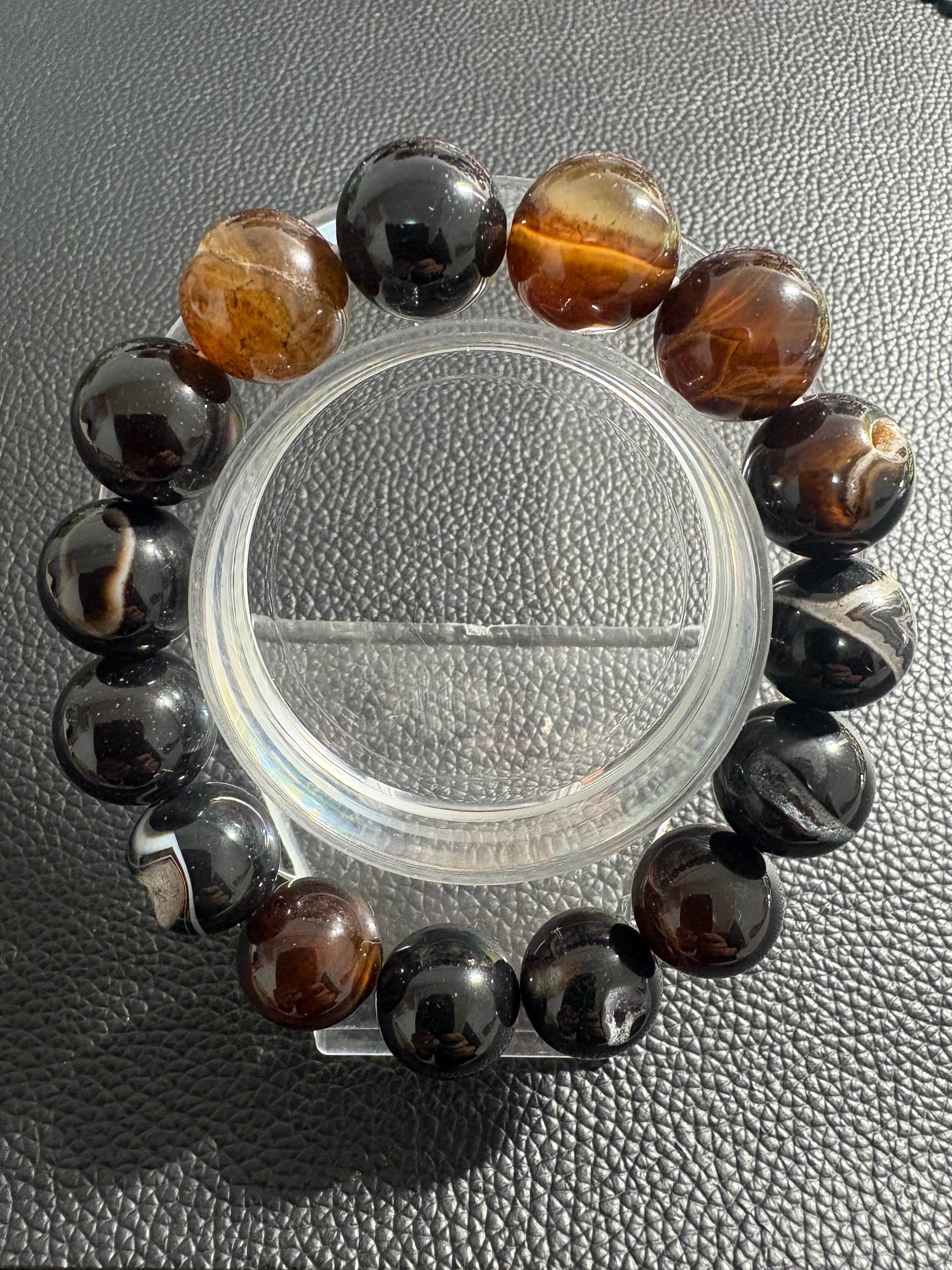 ✨笑口オニキス✨2-2 サイズ14ミリ 内径17㎝ ※フォローして頂き、10%OFFクーポンをご利用下さい☆