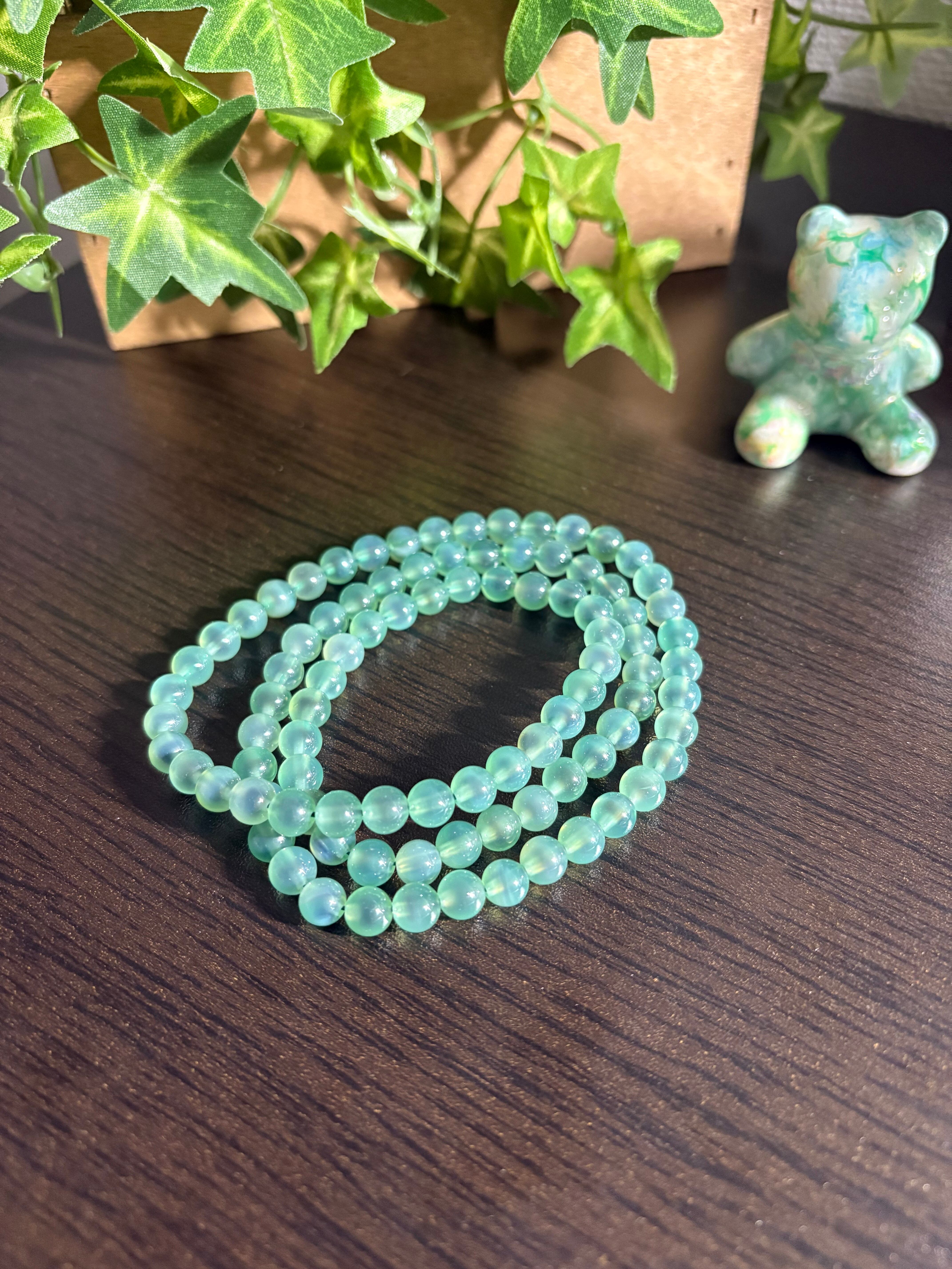 ✨グリーン糖心瑪瑙 3連ブレス✨ サイズ6.3ミリ 内径15㎝ ※石は天然ですが、色は人工染めになります☆