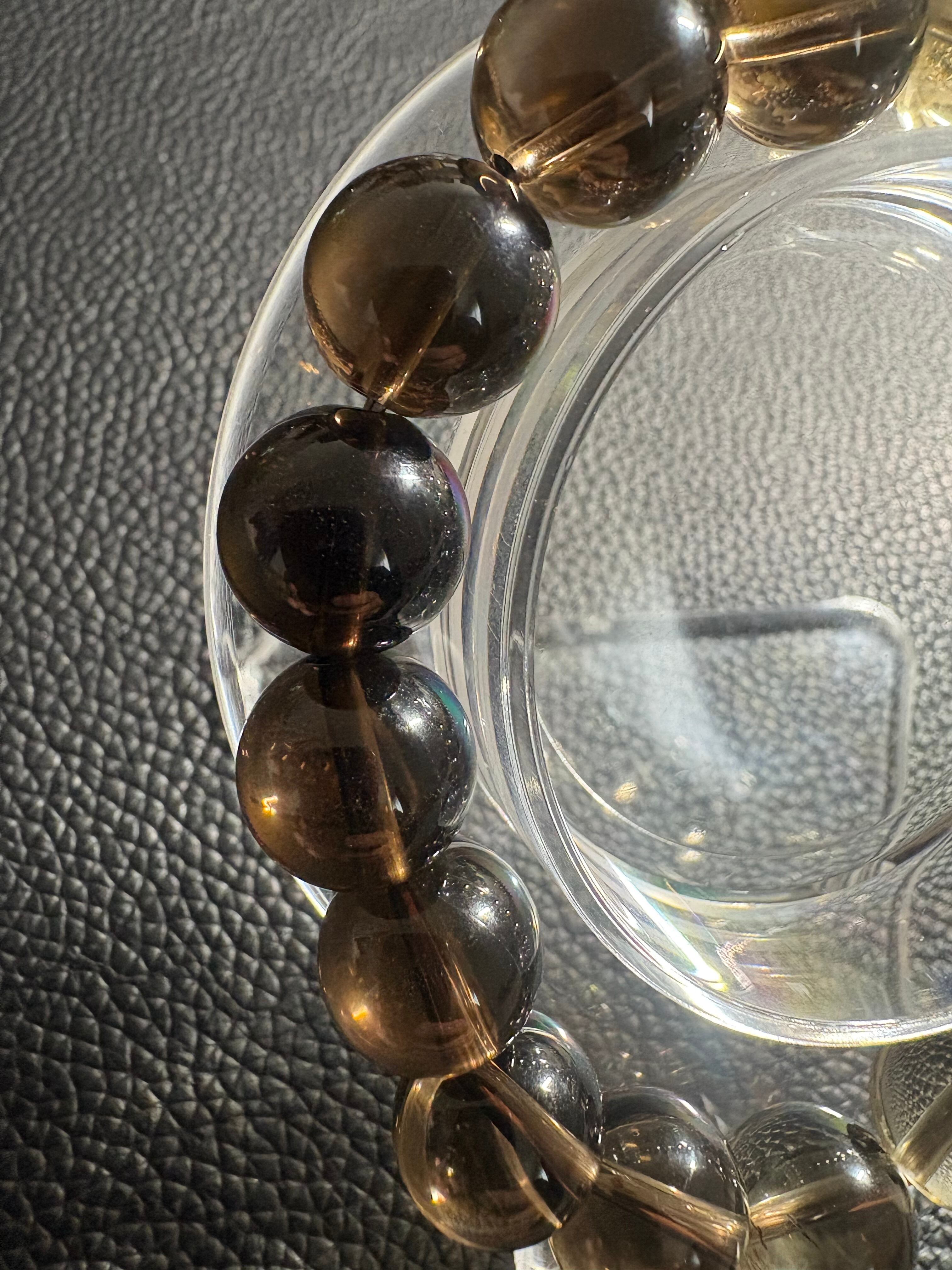 スモーキークォーツのブレスレットは、精神の安定、不安やストレスの軽減、そして厄除けの効果があるとされています。具体的には、心のグラウンディングを促して冷静な判断を助けたり、ネガティブなエネルギーを浄化して安心感をもたらしたりすると考えられています。