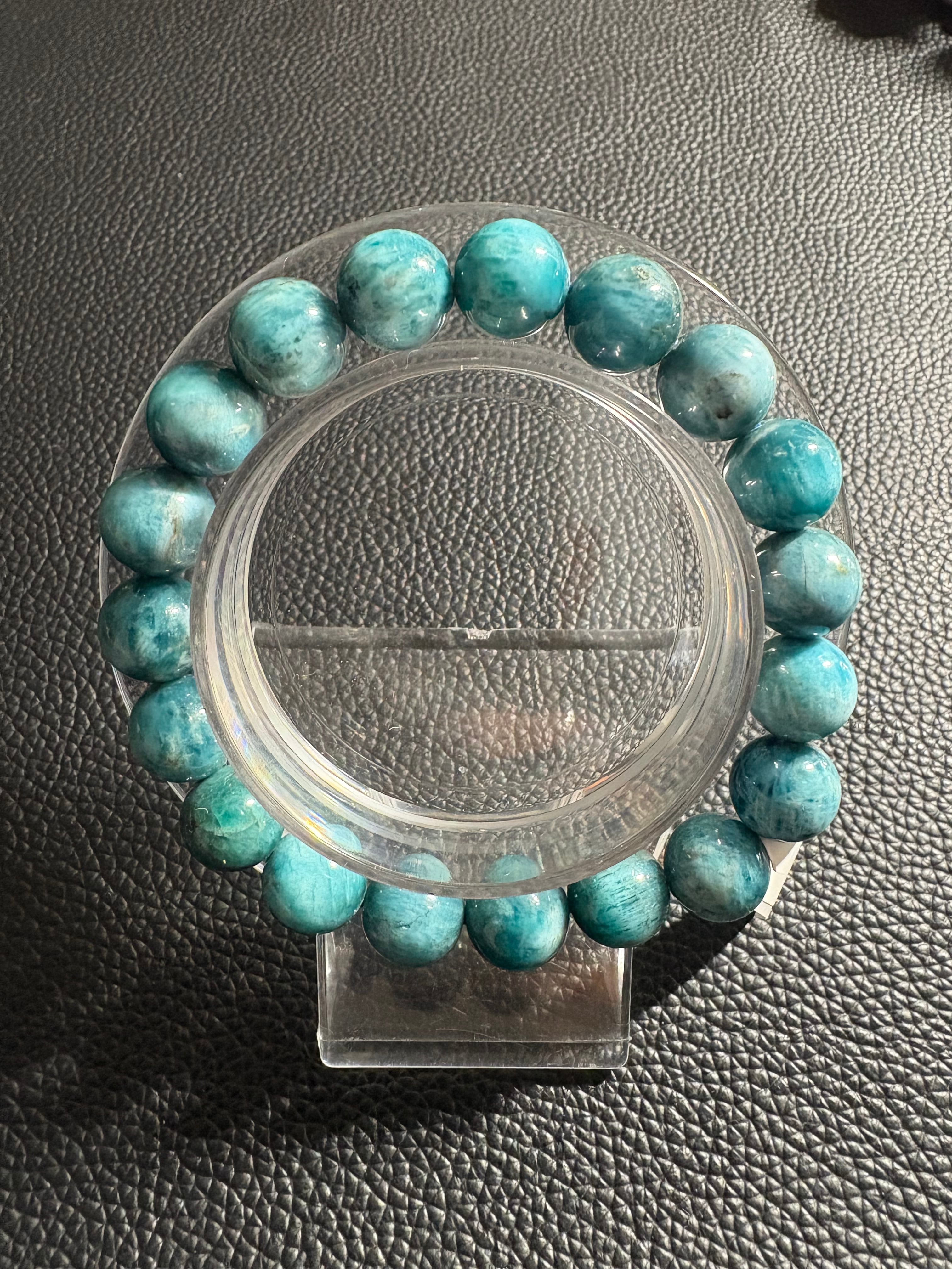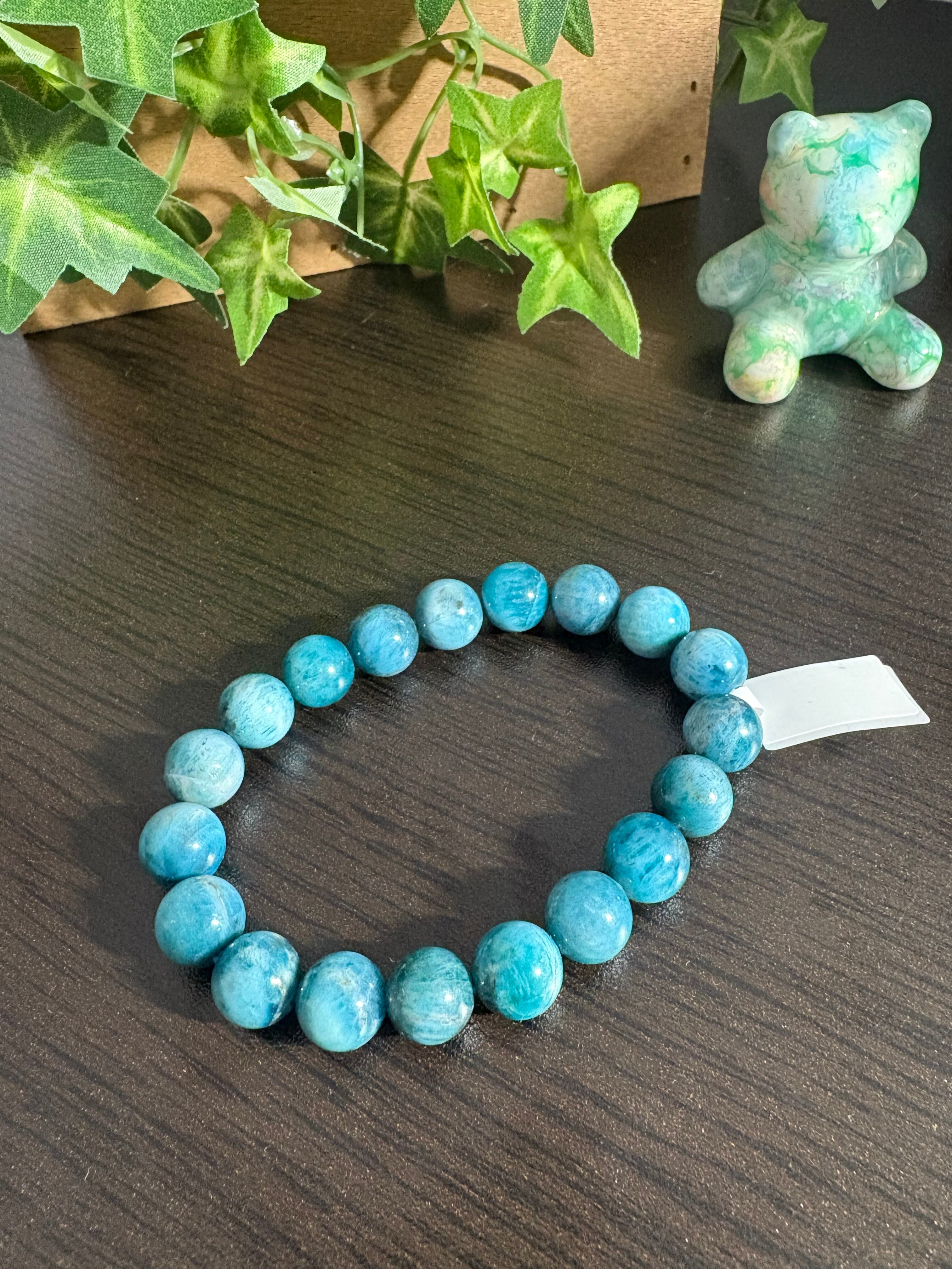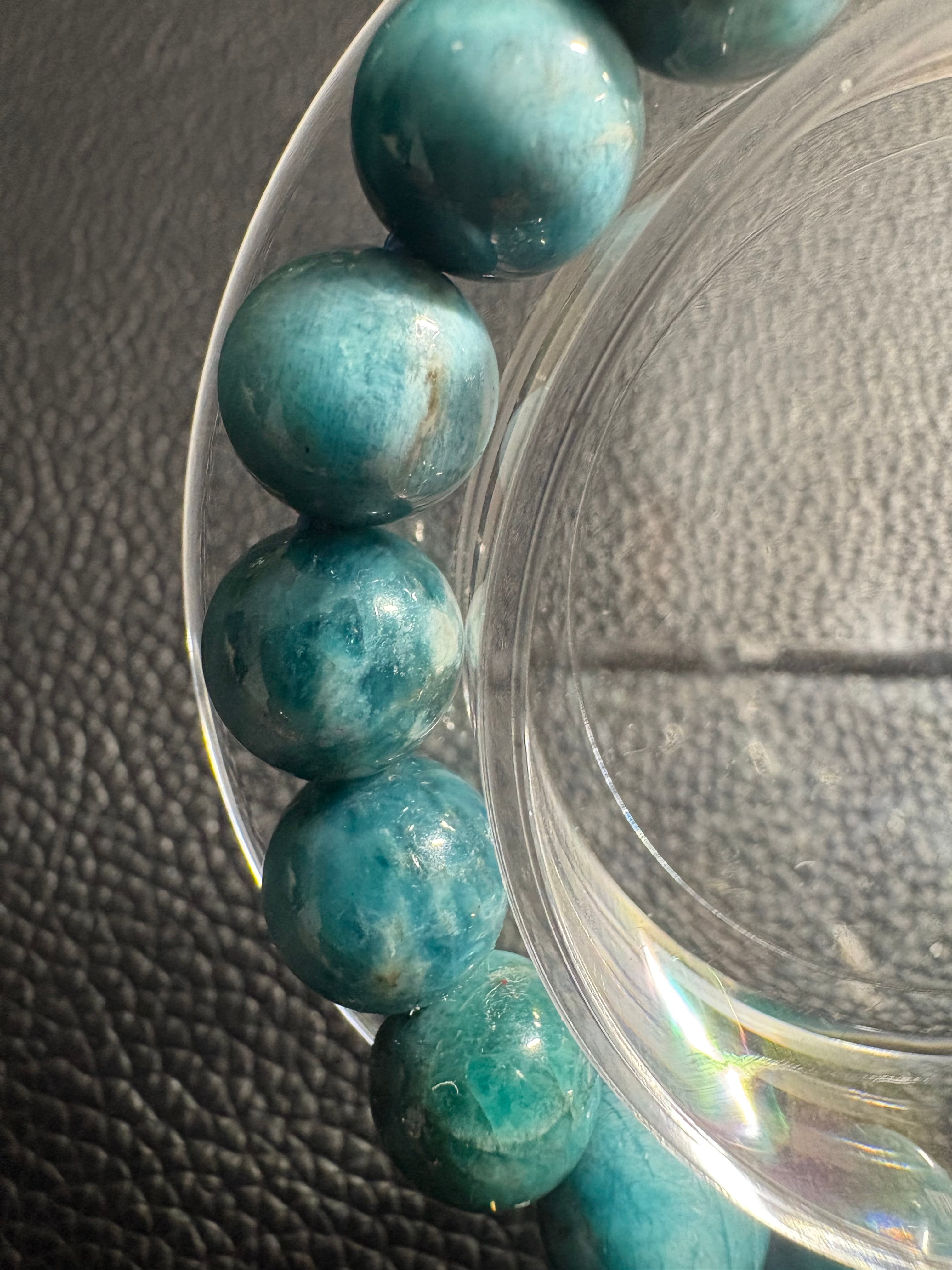 ブルーグリーンアパタイトのブレスレットは、心の浄化、精神の安定、自信の回復、そして人間関係の調和に効果があるとされています。怒りや悲しみといったネガティブな感情を排出し、心身のバランスを整え、物事を安定した視点で見られるよう調整すると考えられています。