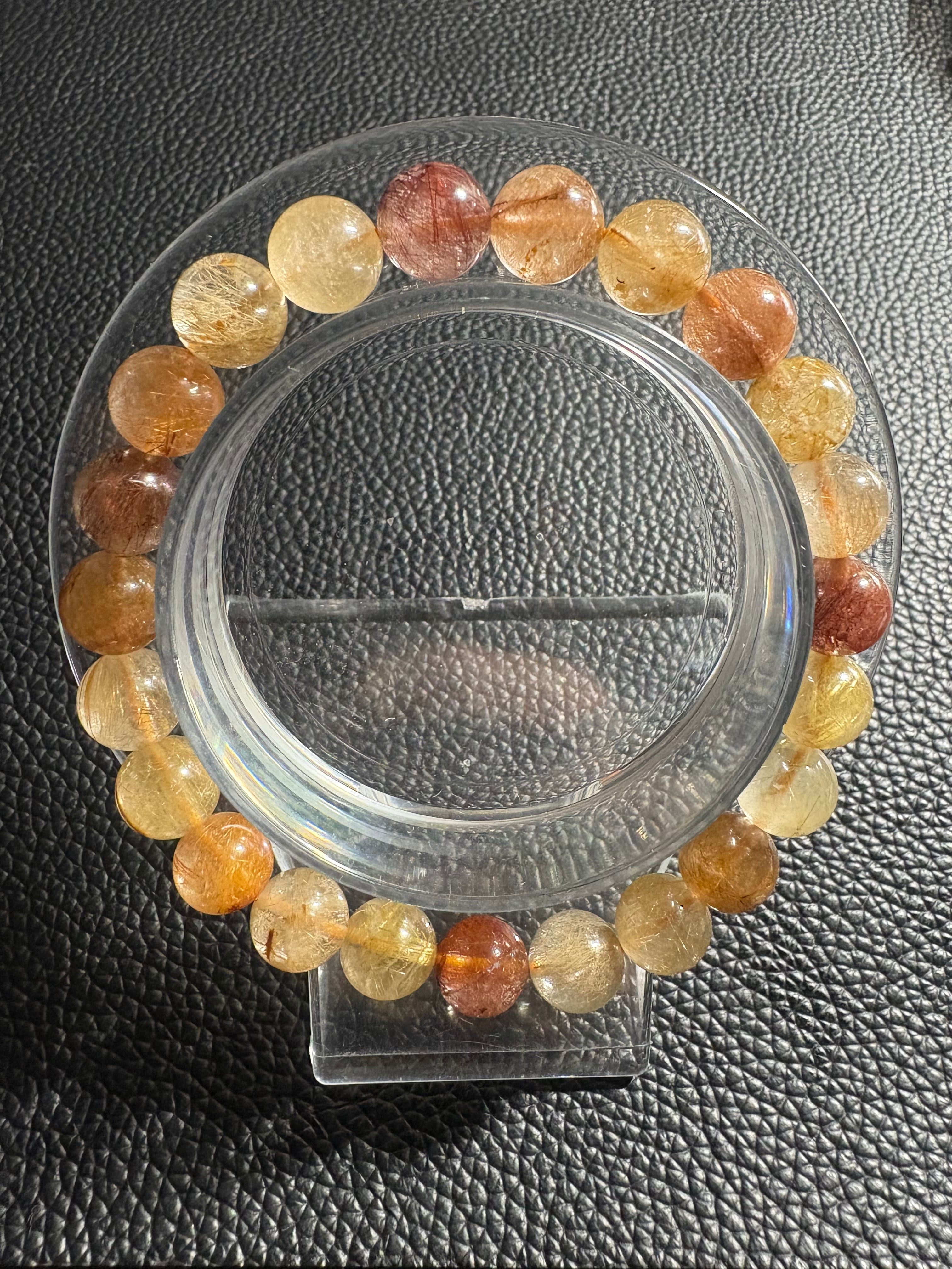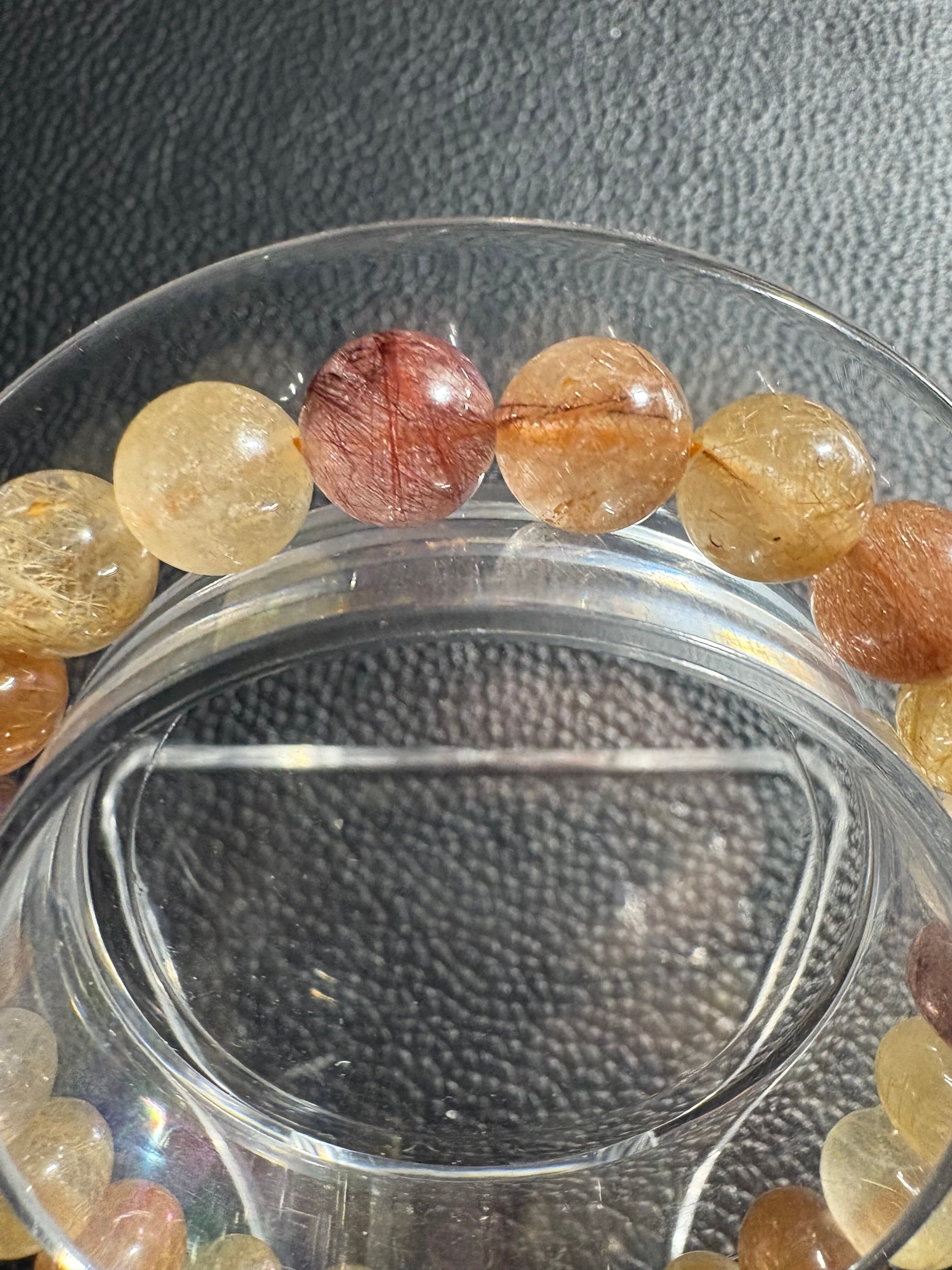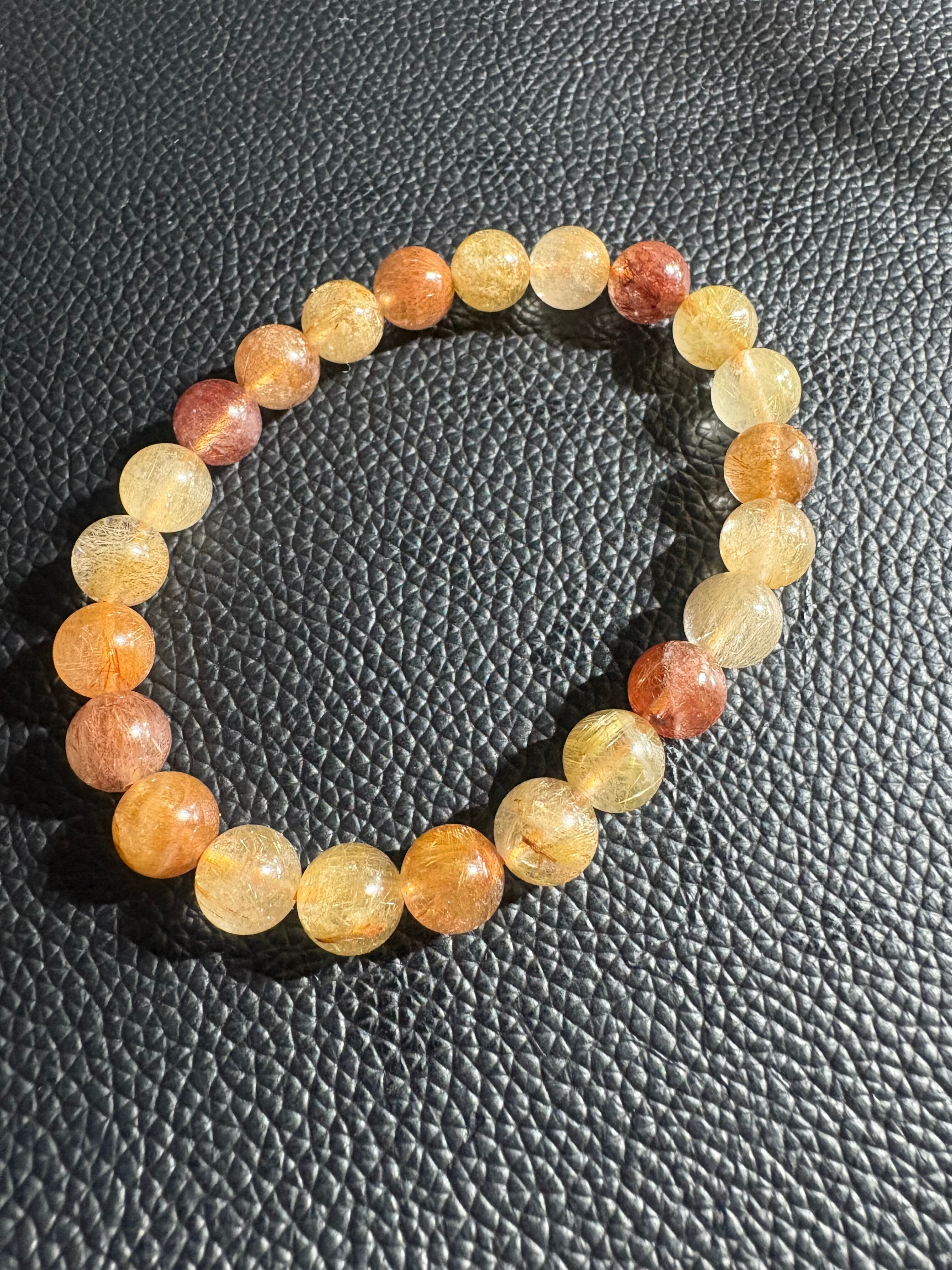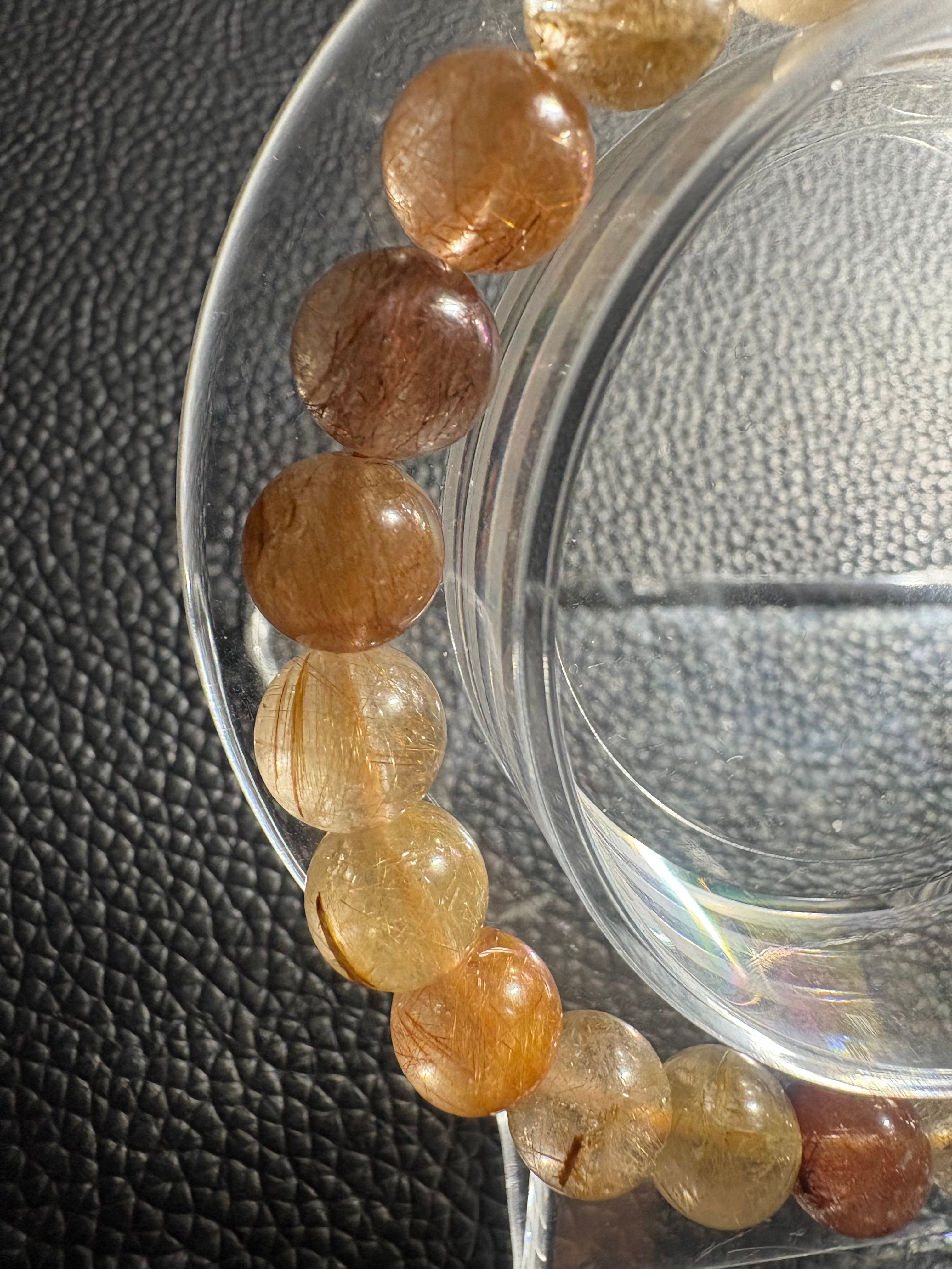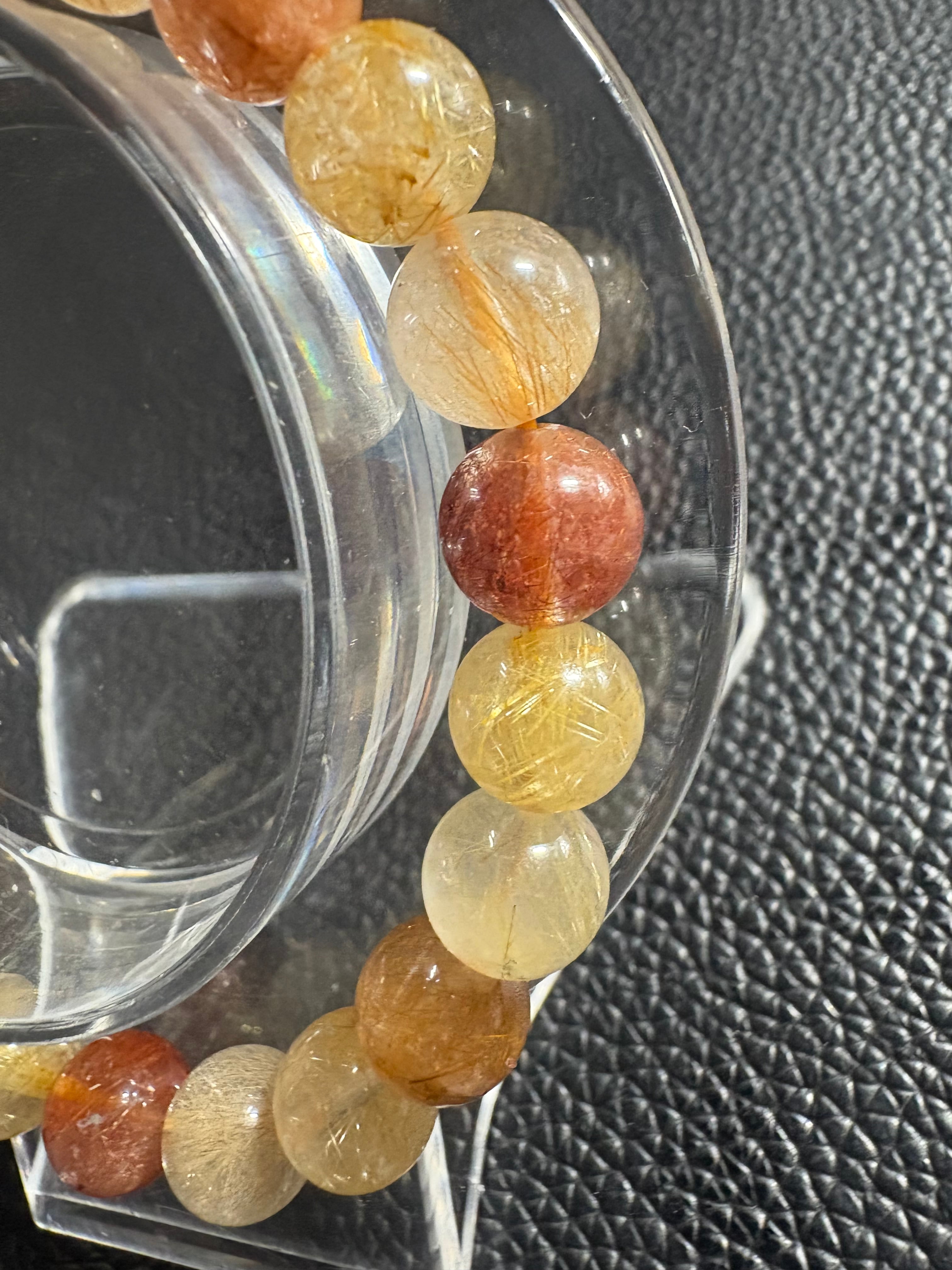 カラフルルチルブレスレットには、金運・財運の向上、直感力・洞察力の強化、目標達成のサポート、積極性・行動力の向上、そして心身の浄化・守護といった効果があるとされています。複数のルチルの色を持つことで、それぞれの石が持つポジティブなエネルギーを増幅し、持ち主の願望やエネルギーを強くサポートすると考えられています。