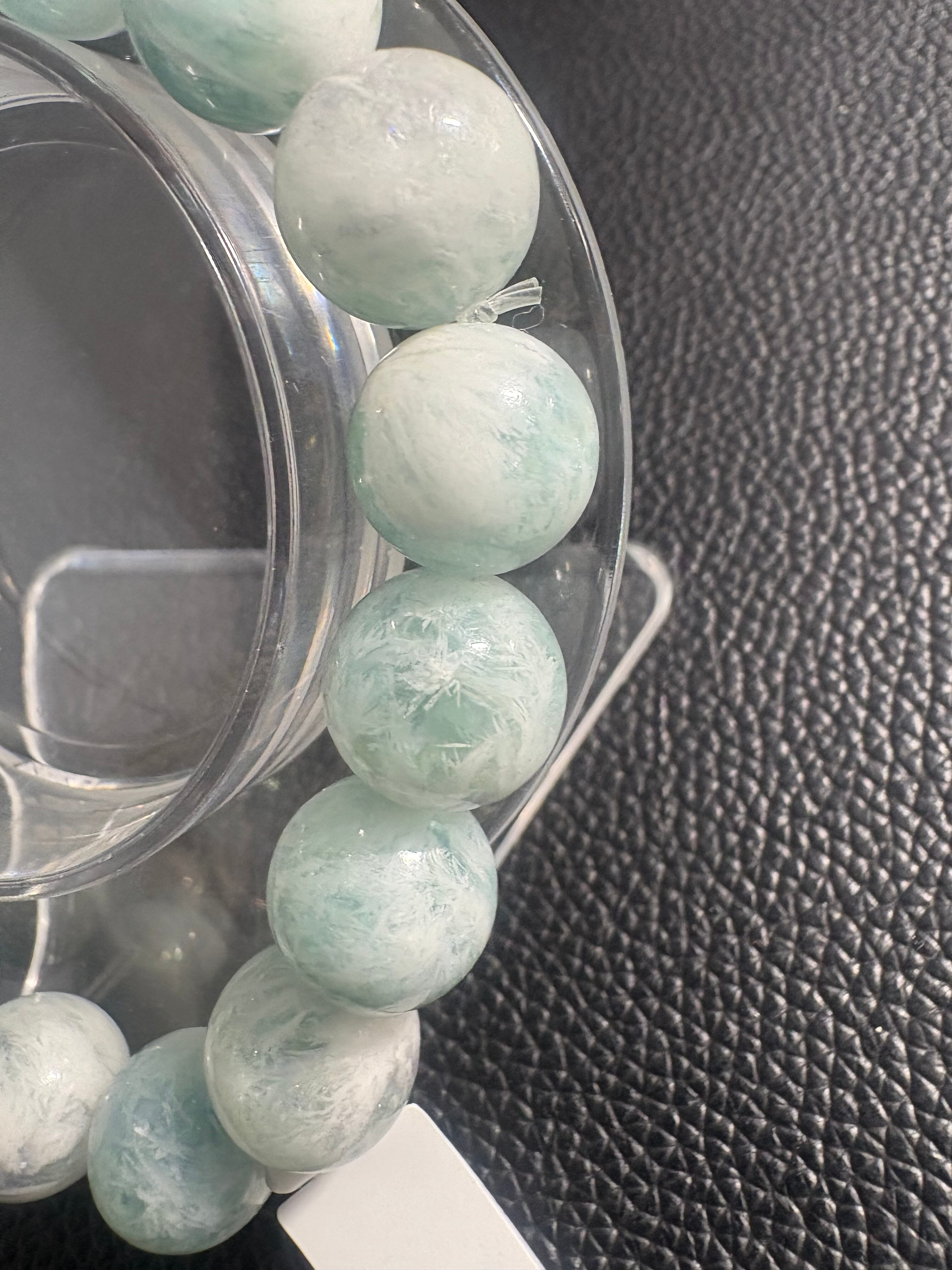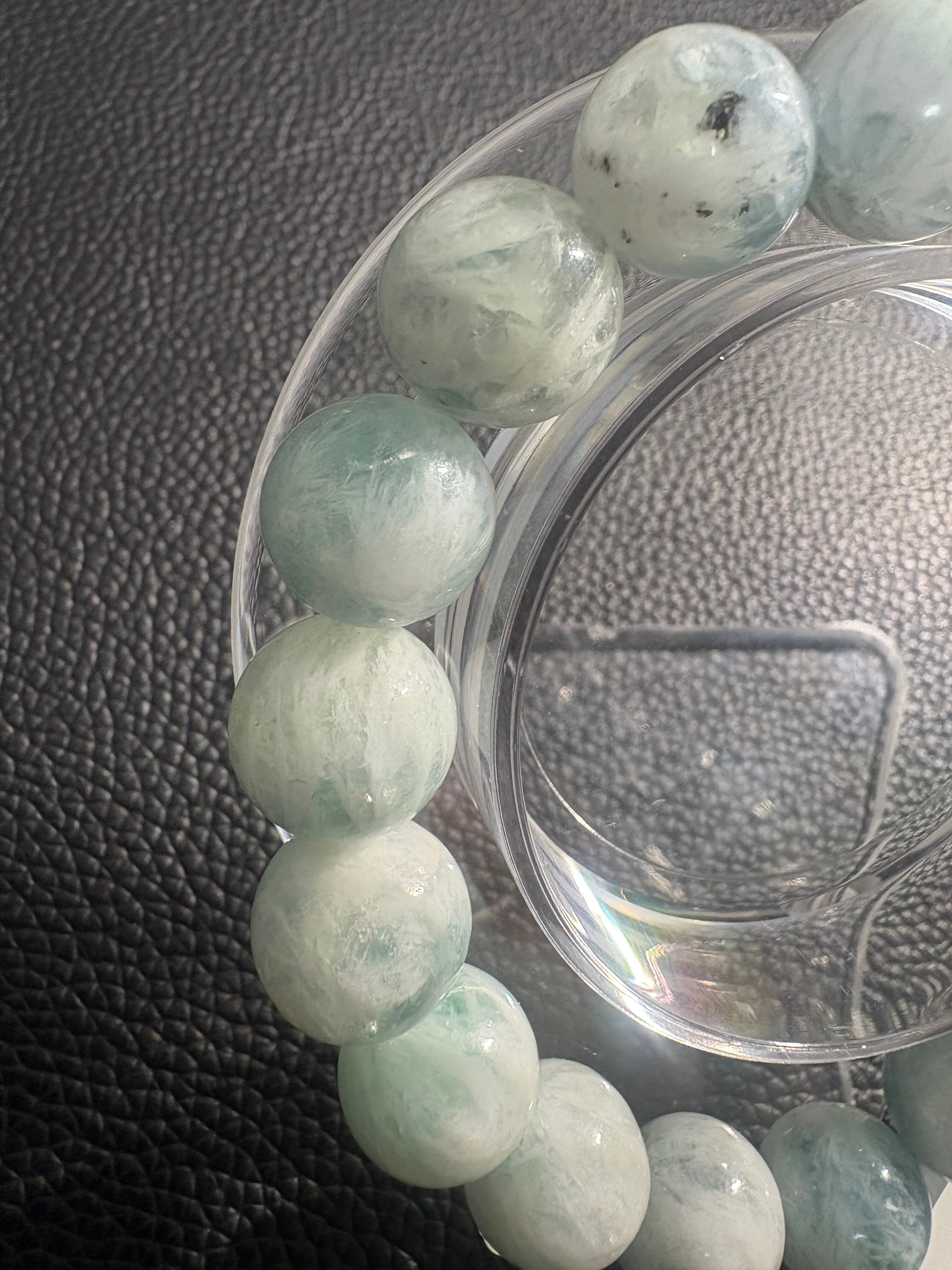 フェザーフローライトブレスレットは、癒しと精神的な安定に特化したブレスレットです。特に、「天使の羽」のような内包物が特徴で、ストレスや疲労を和らげ、心を軽やかに保つ効果があるとされています。また、直感力を高め、自由な発想や創造力をサポートする働きも期待できます。