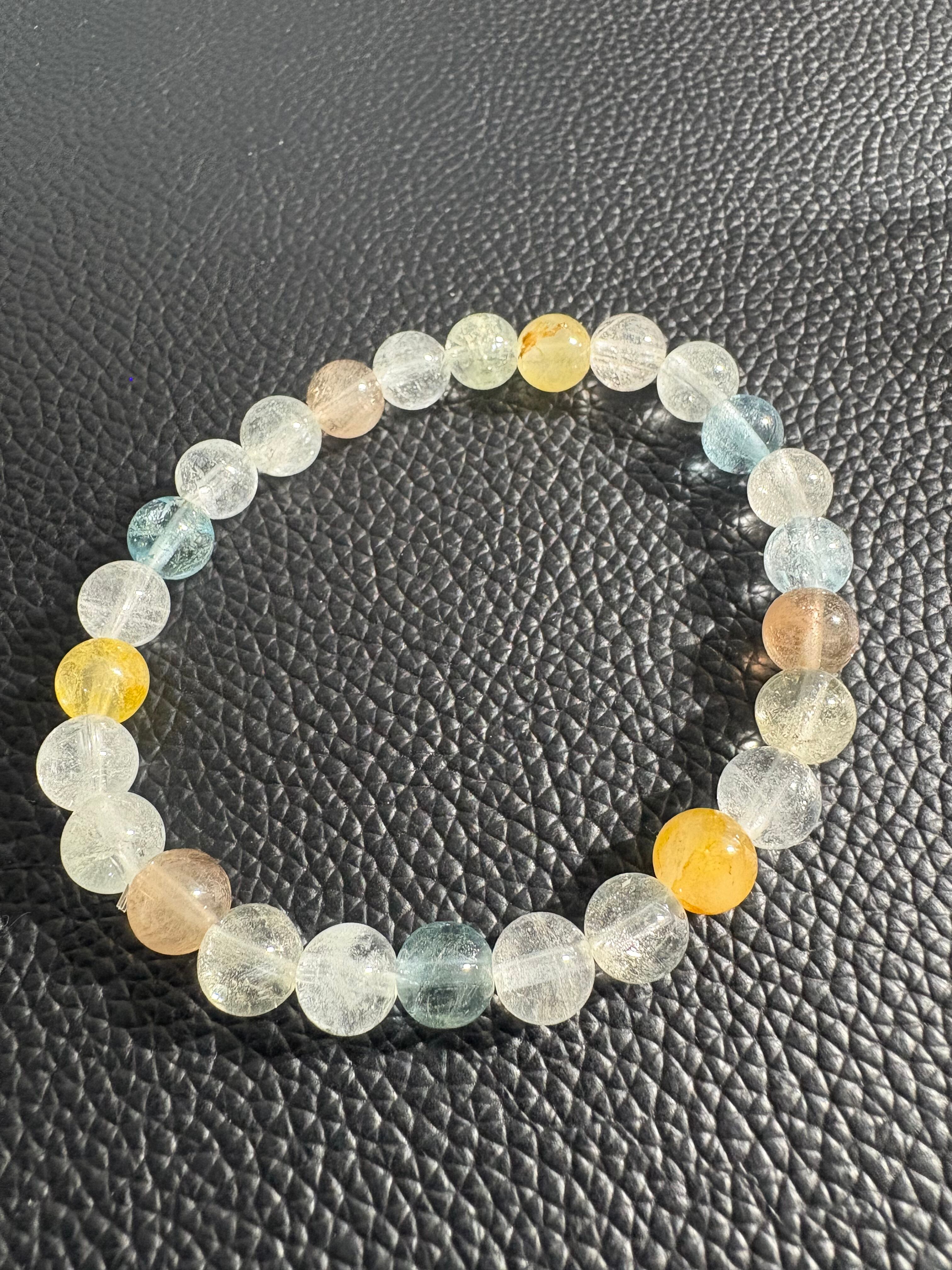 カラフルトパーズブレスレットには、精神の安定、癒し、コミュニケーション能力の向上、そして「必要なものを引き寄せる」力があるとされます。具体的には、冷静さや集中力を高めたり、ネガティブな感情を癒したり、才能や良縁を引き寄せたりする効果が期待できます。