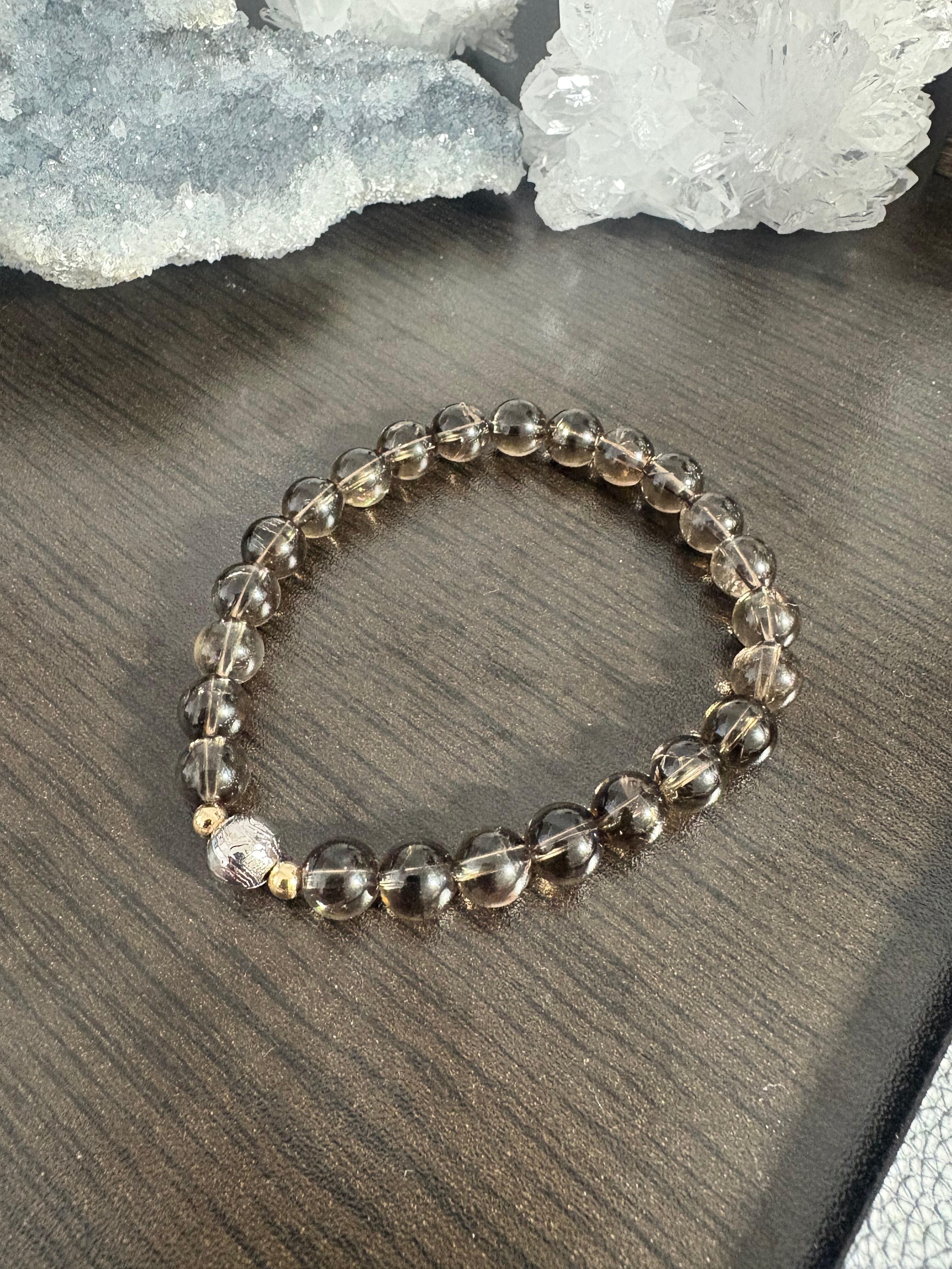 スモーキークォーツは、精神安定、魔除け、グラウンディング(地に足をつけた感覚)に効果があるとされています。ストレスや不安を和らげ、冷静な判断力や集中力を高め、ネガティブなエネルギーから持ち主を守る力があると言われています。