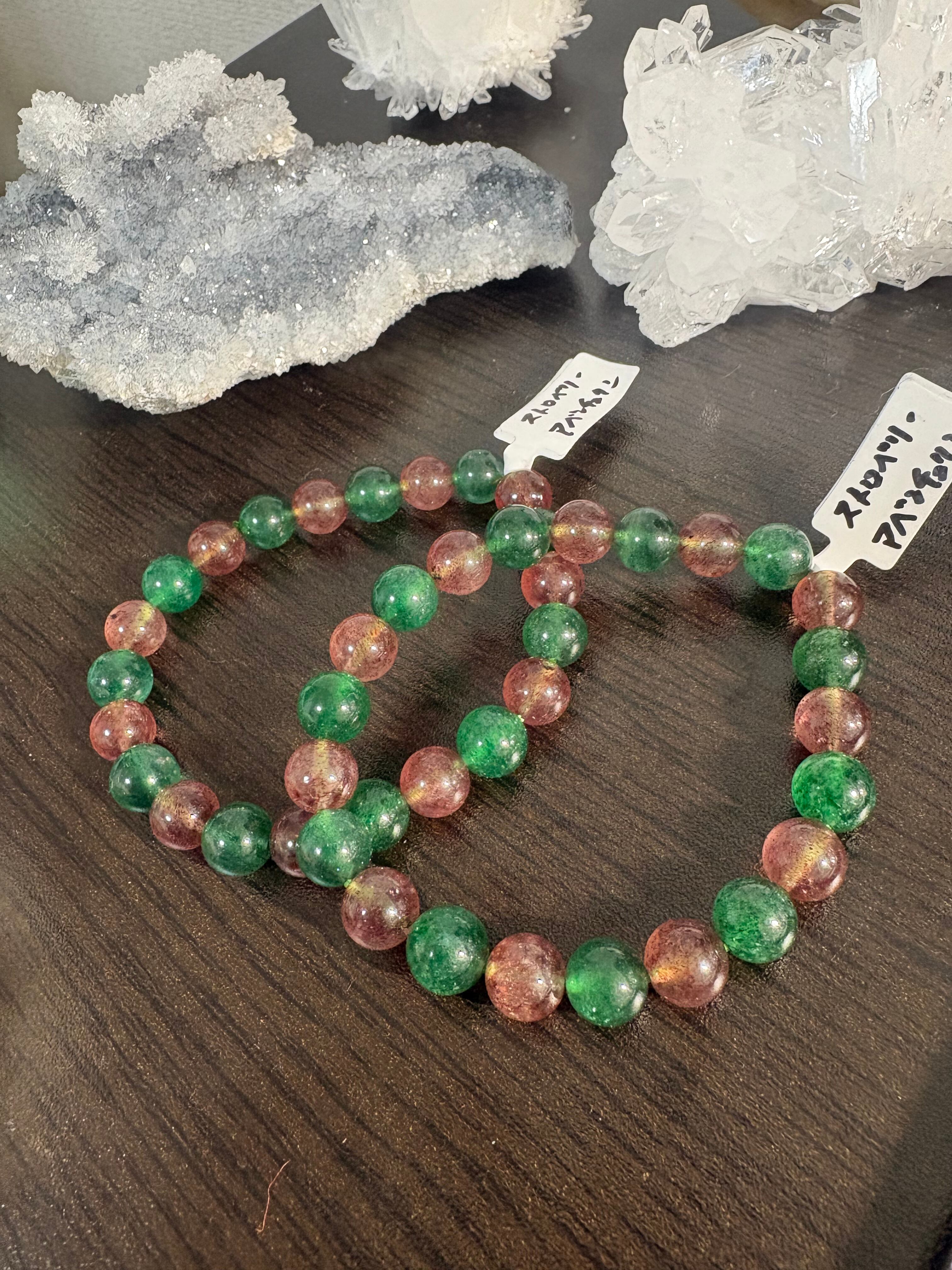 ✨ストロベリークォーツ&アベンチュリン✨ サイズ8.7ミリ 内径16㎝ ※フォローして頂き、10%OFFクーポンをご利用下さい☆