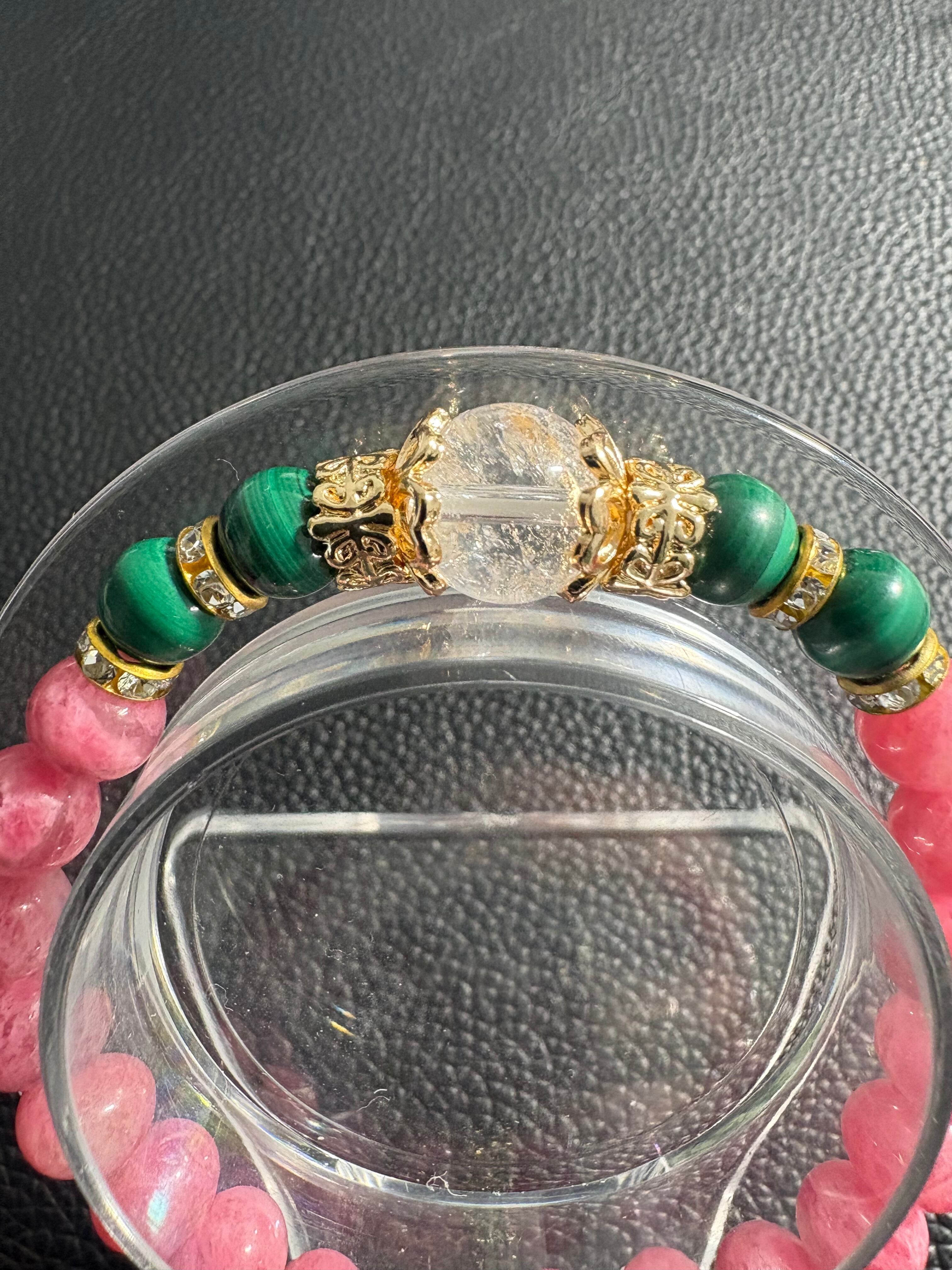 ✨クリスタル&ロードナイト&マラカイト✨ サイズ7.7ミリ 内径16㎝ ※フォローして頂き、10%OFFクーポンをご利用下さい☆