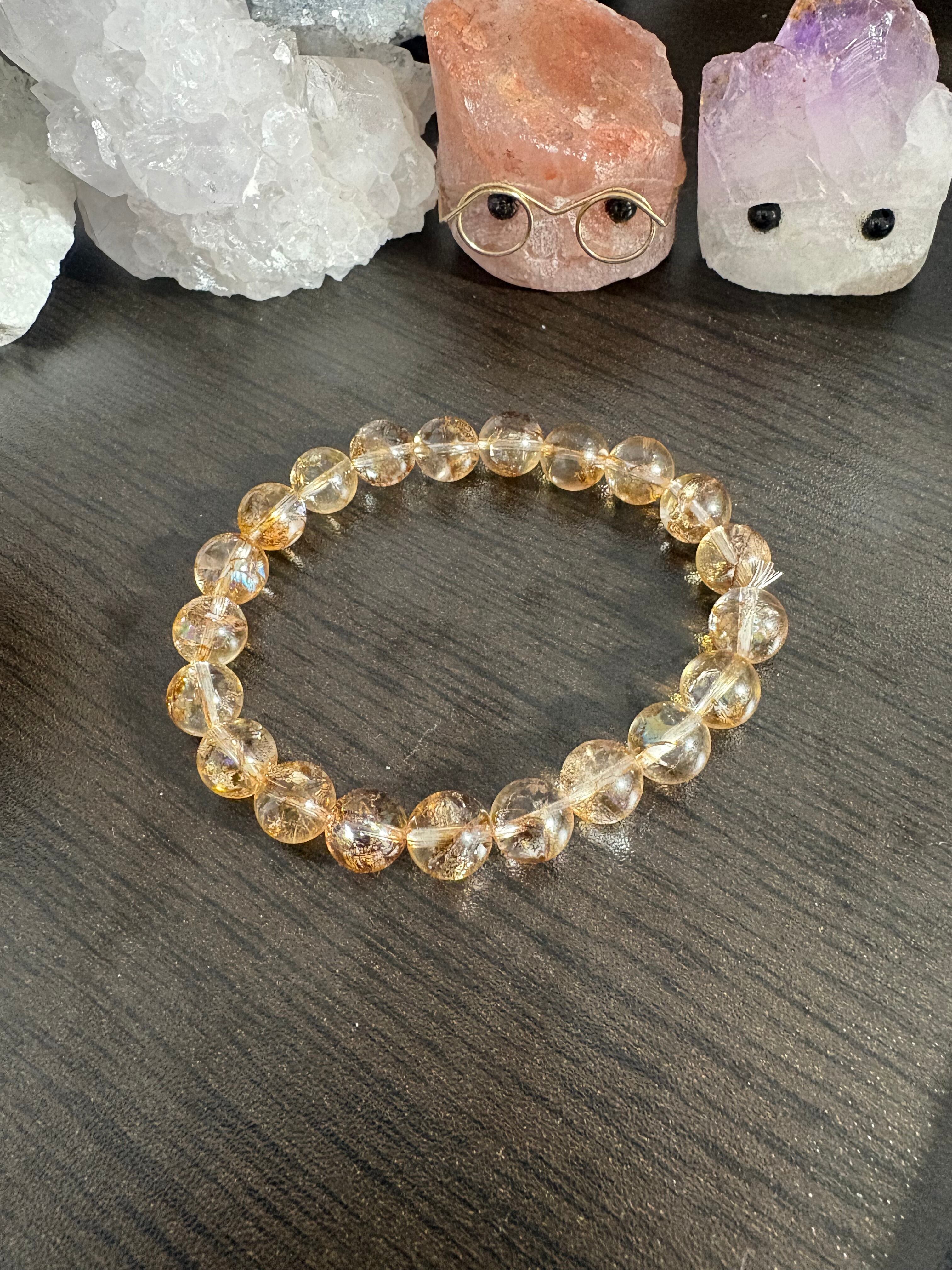 ✨ゴールデンヘマトイドクォーツ✨ サイズ9.7ミリ 内径16.5㎝ ※石は天然ですが、人工的に作られたブレスレットです☆ ※フォローして頂き、10%OFFクーポンをご利用下さい☆