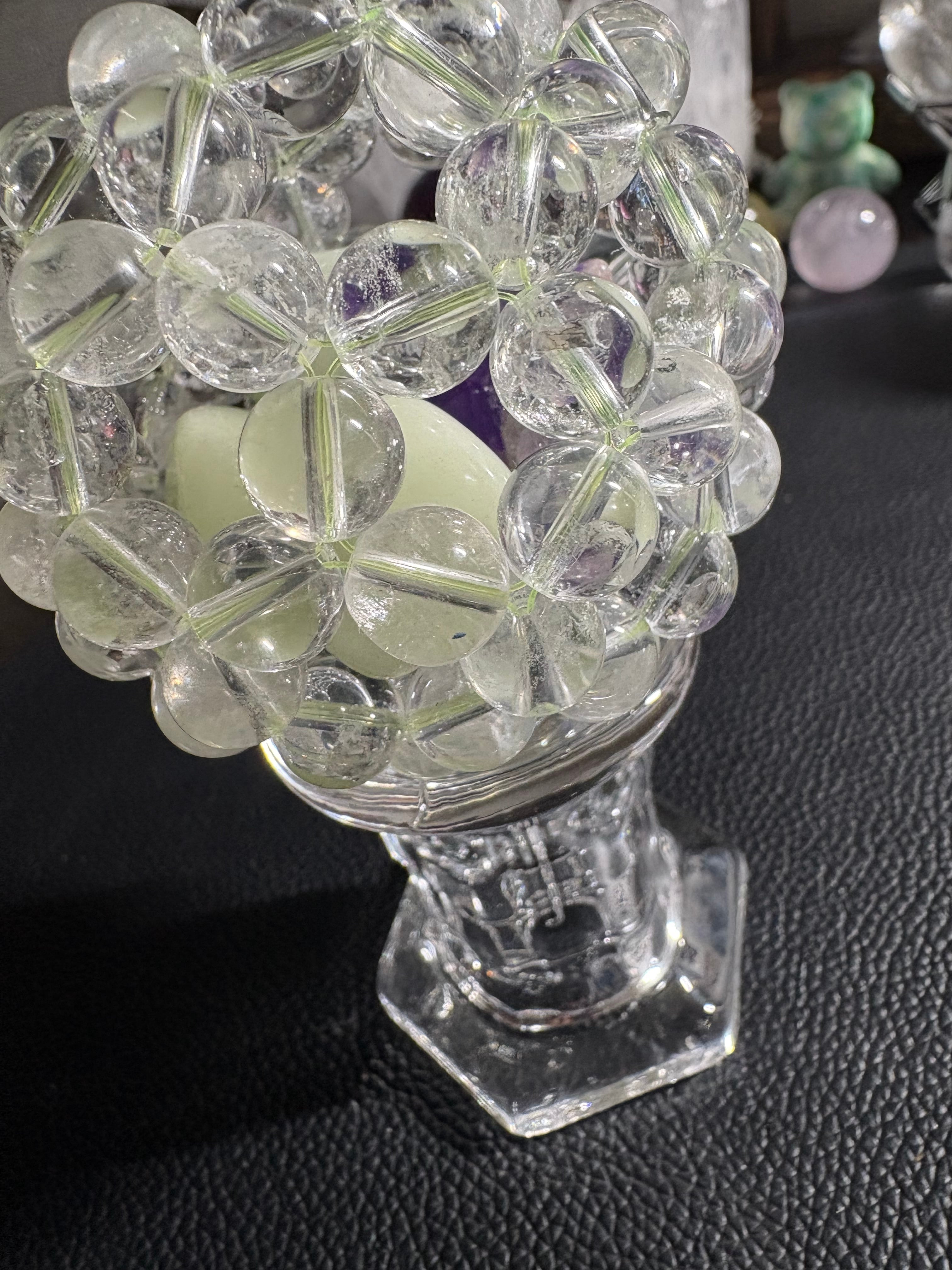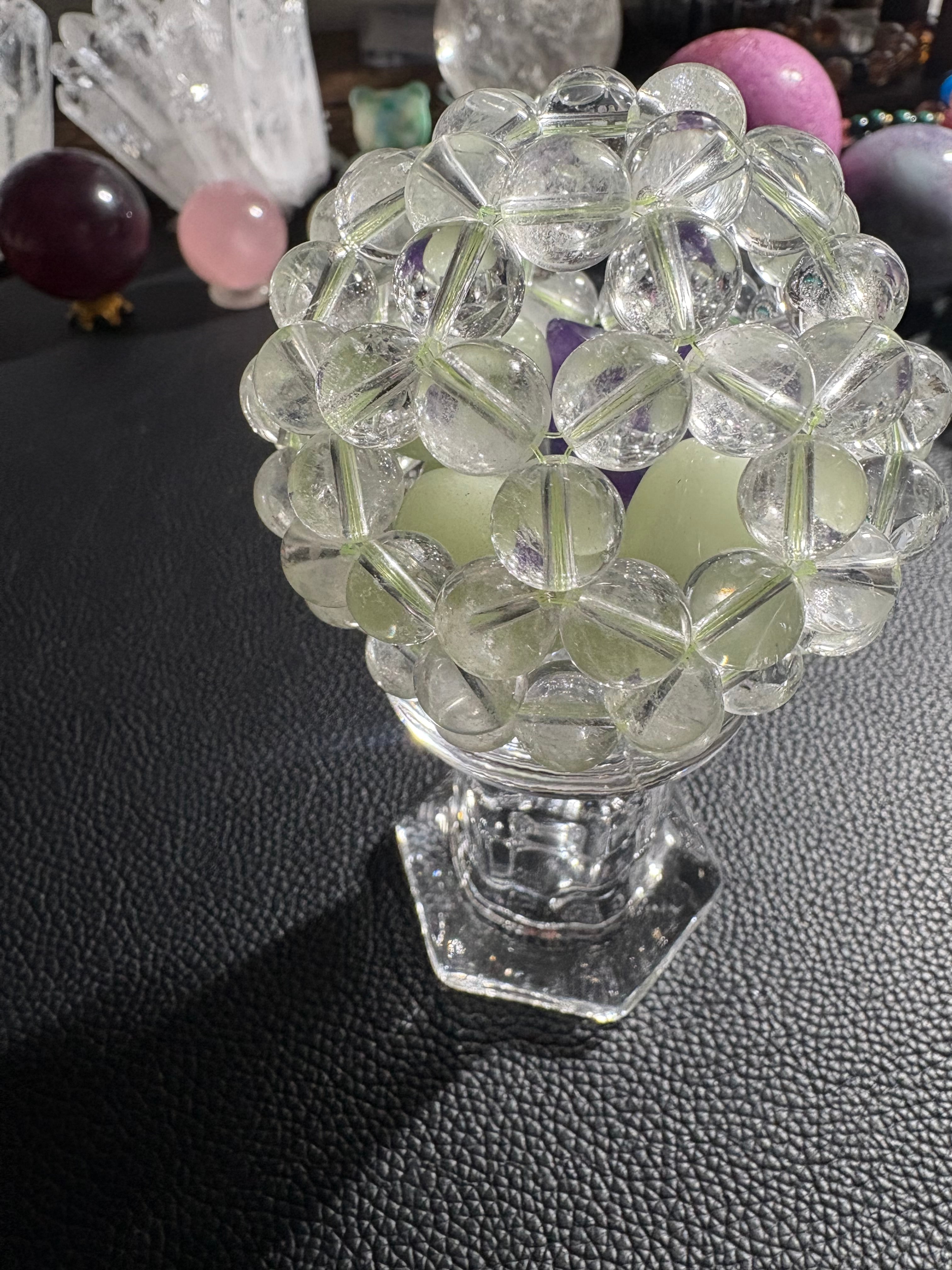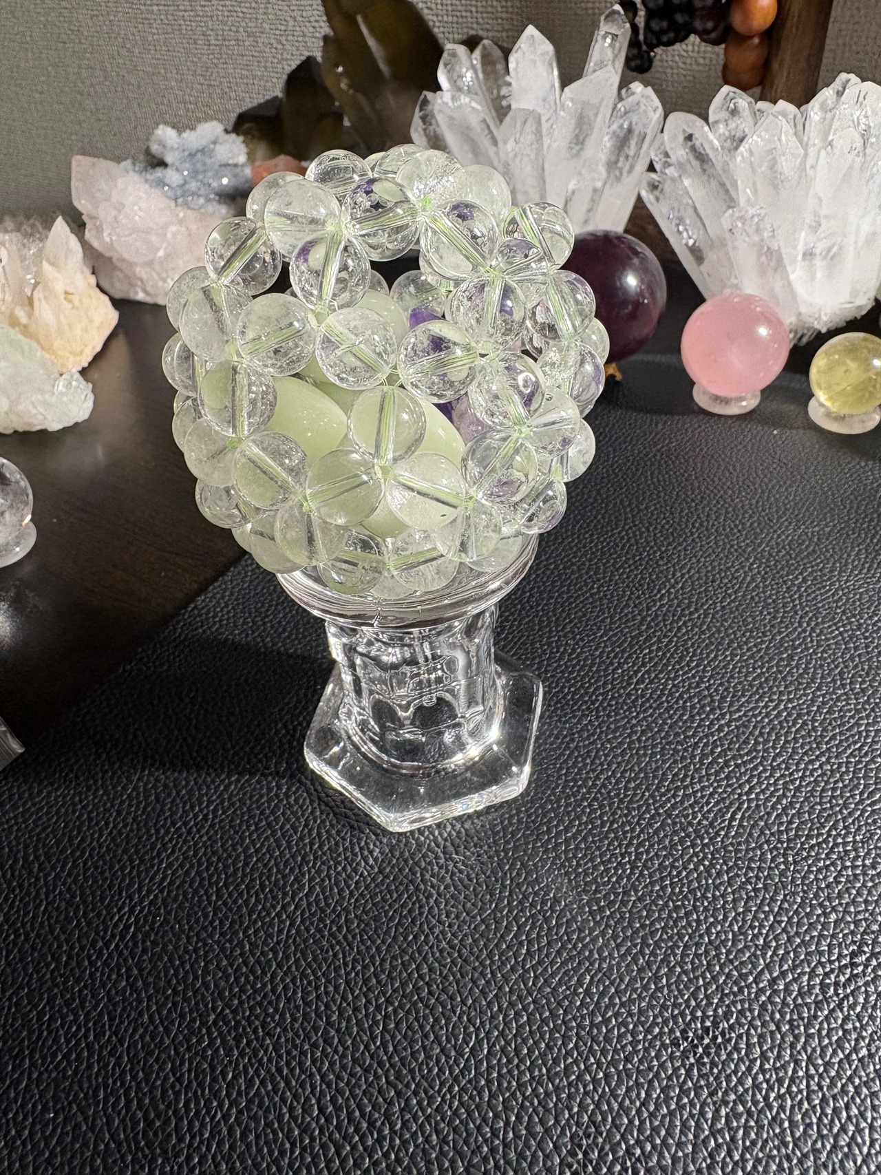天然水晶ビーズを使用し、神聖幾何学「フラーレン」の形に丁寧に仕上げたハンドメイド作品です。透明感のある水晶が美しく、インテリアやお守りとして飾っていただけます。