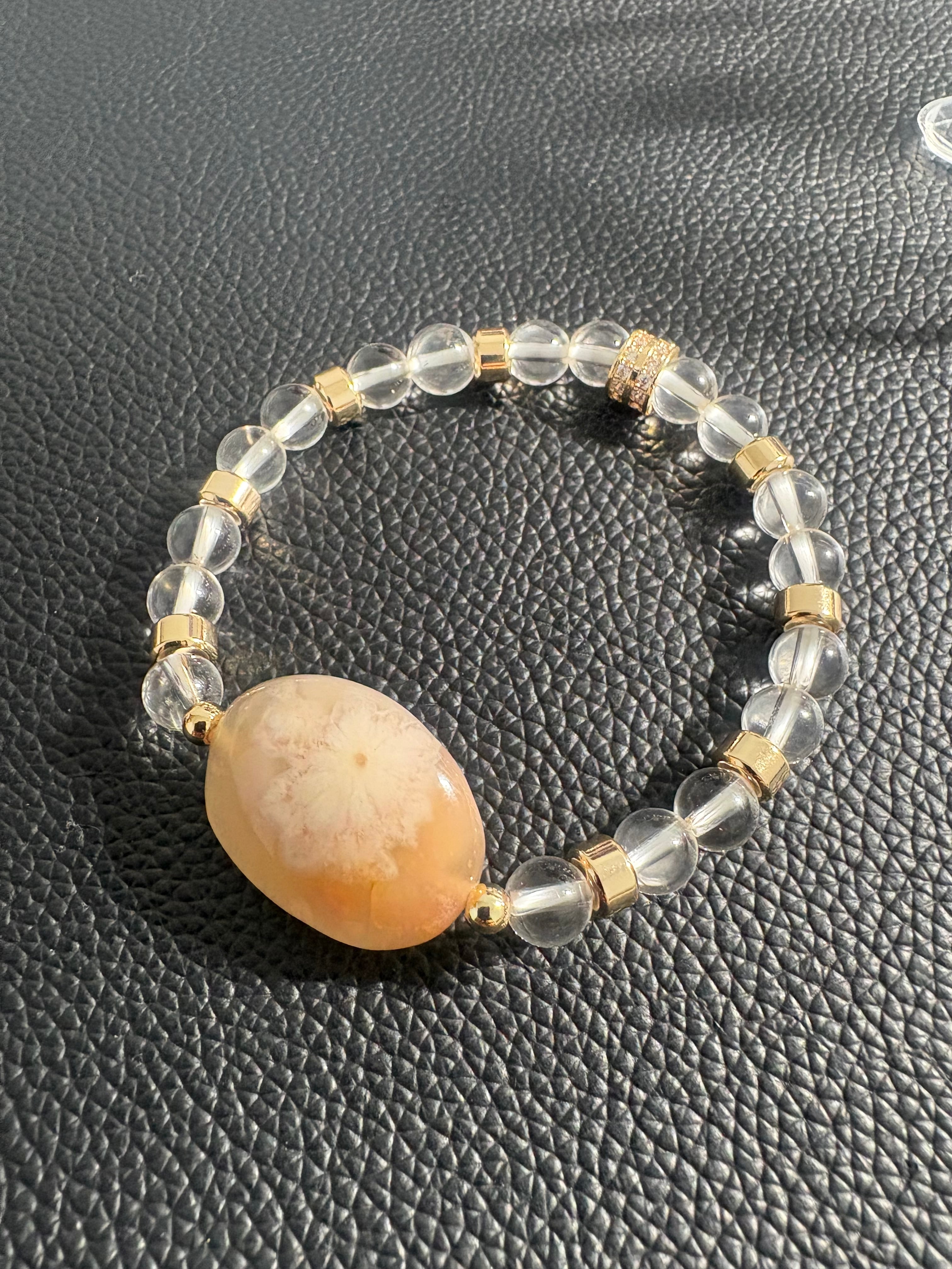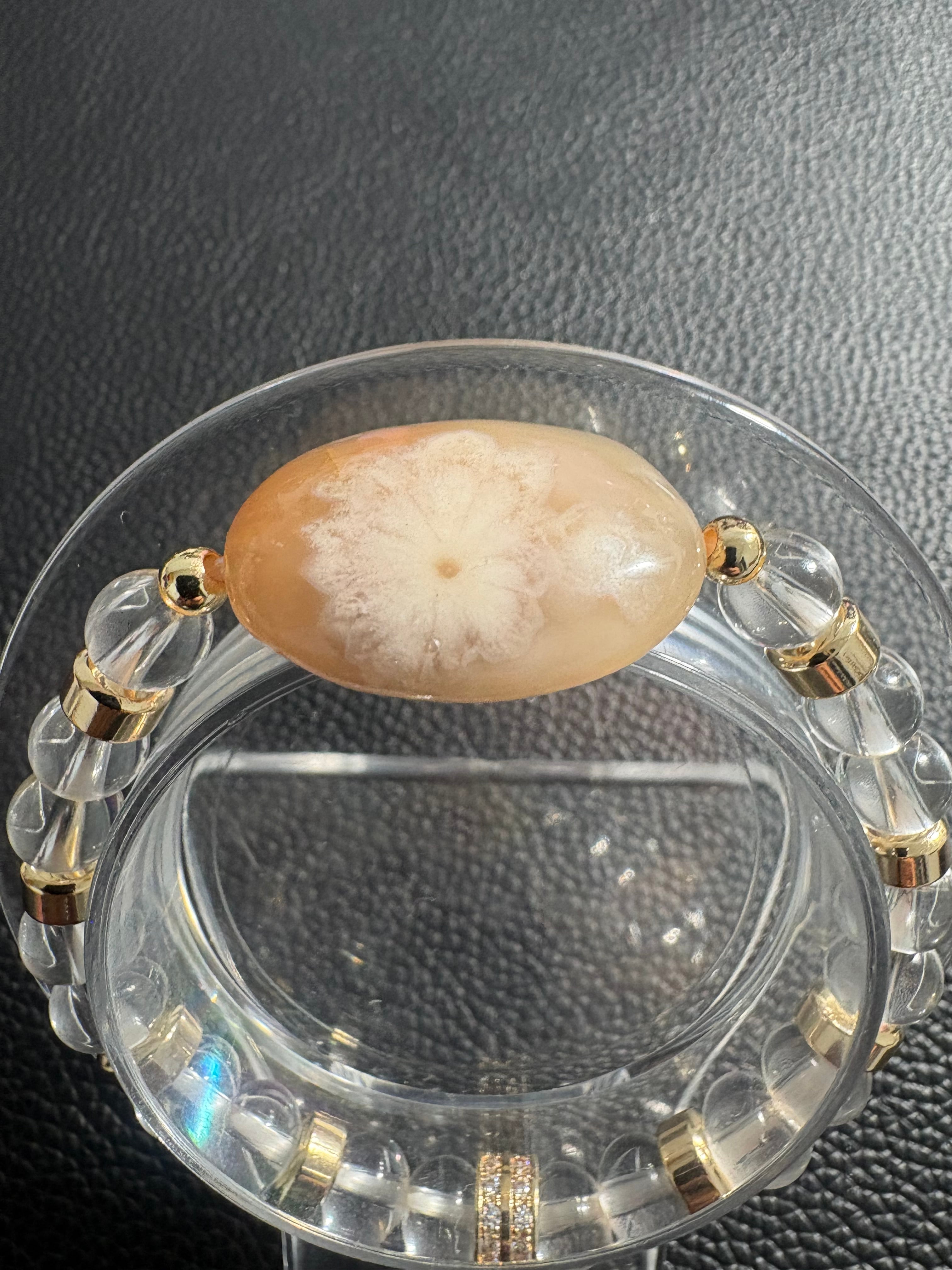 ✨桜瑪瑙&クリスタル✨ サイズ7ミリ 内径15.5㎝ ※フォローして頂き、10%OFFクーポンをご利用下さい☆