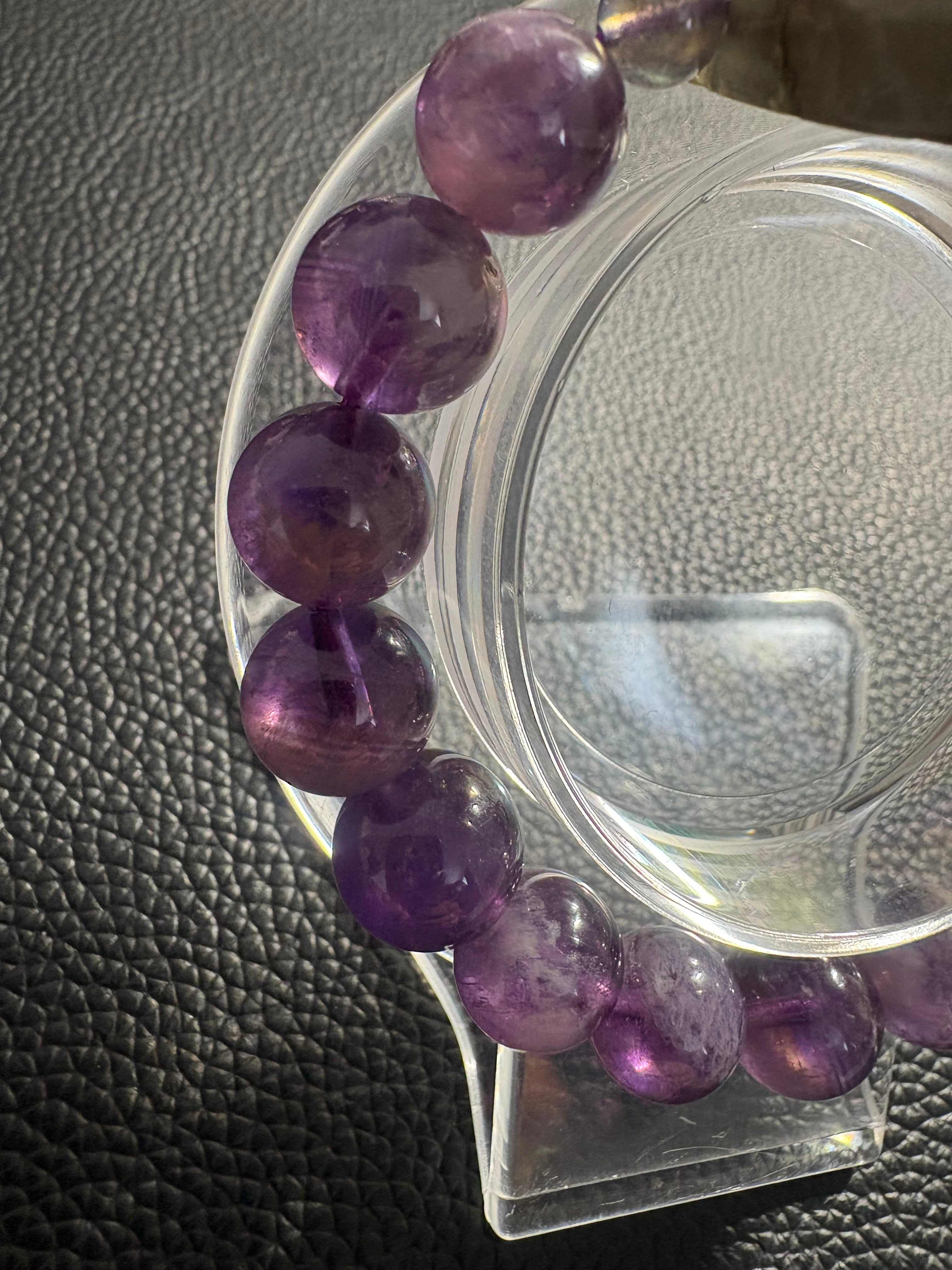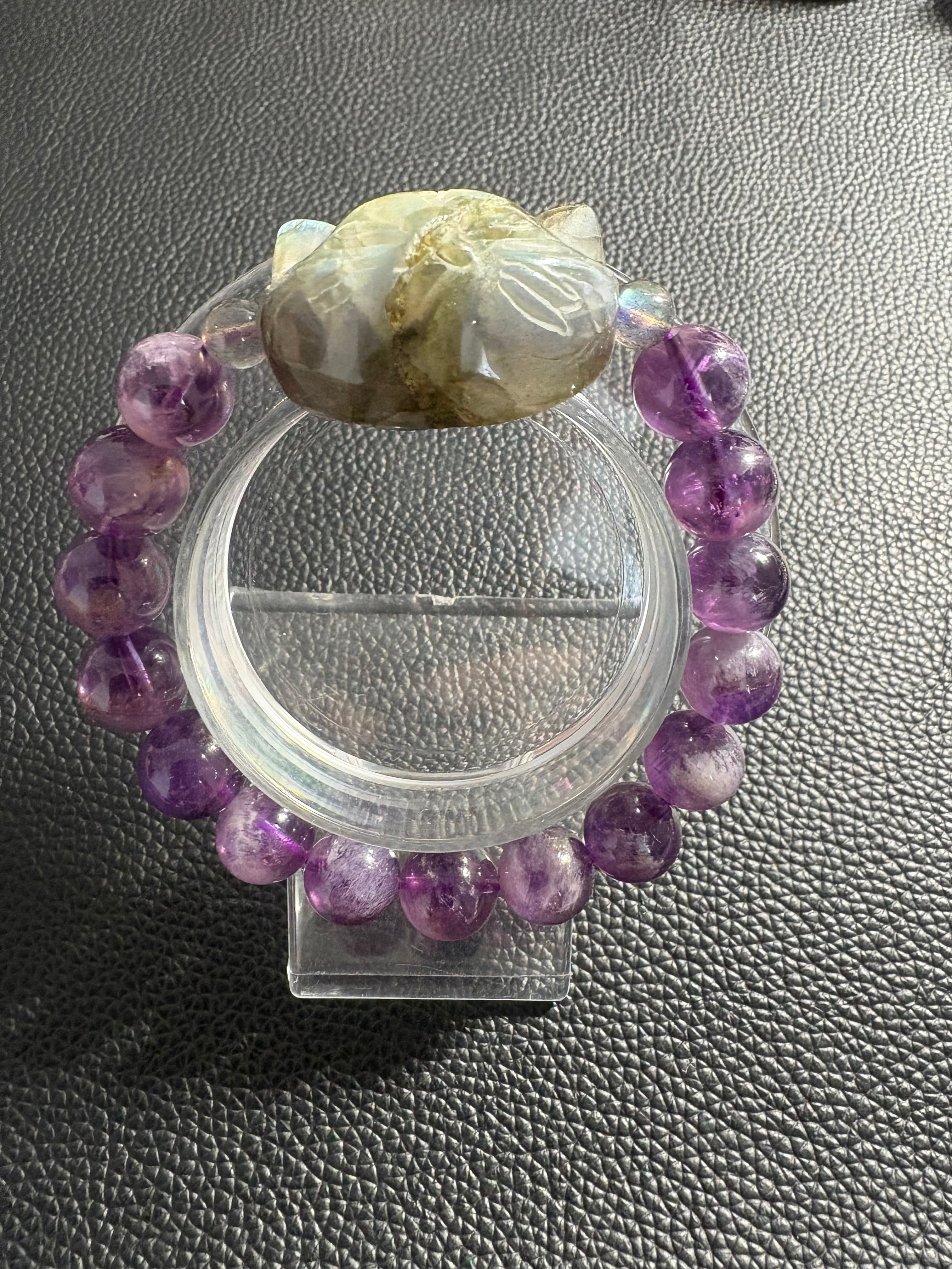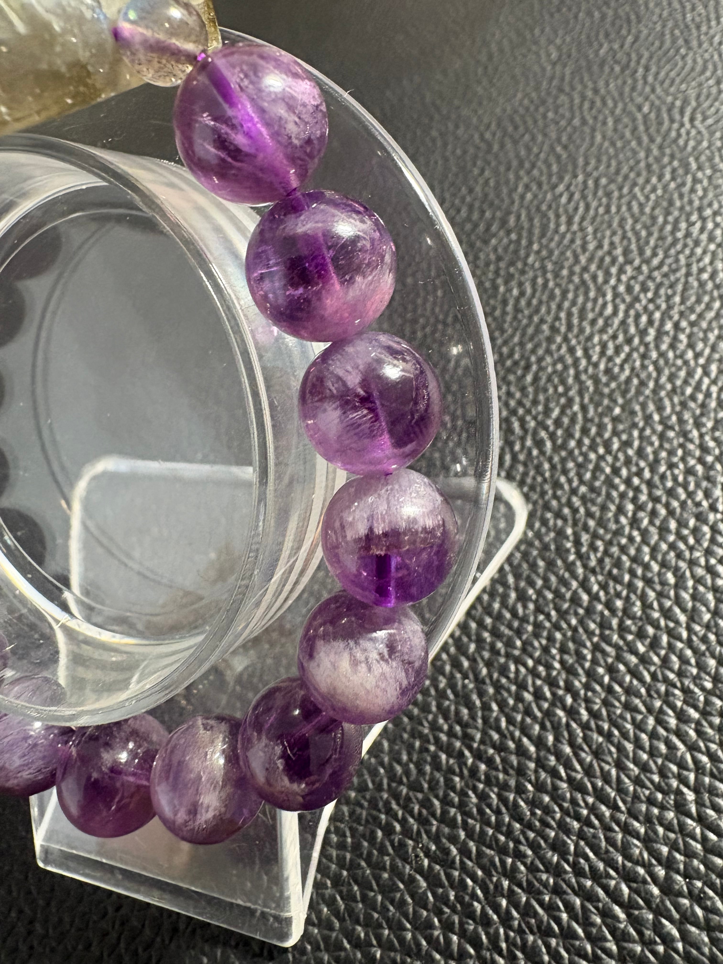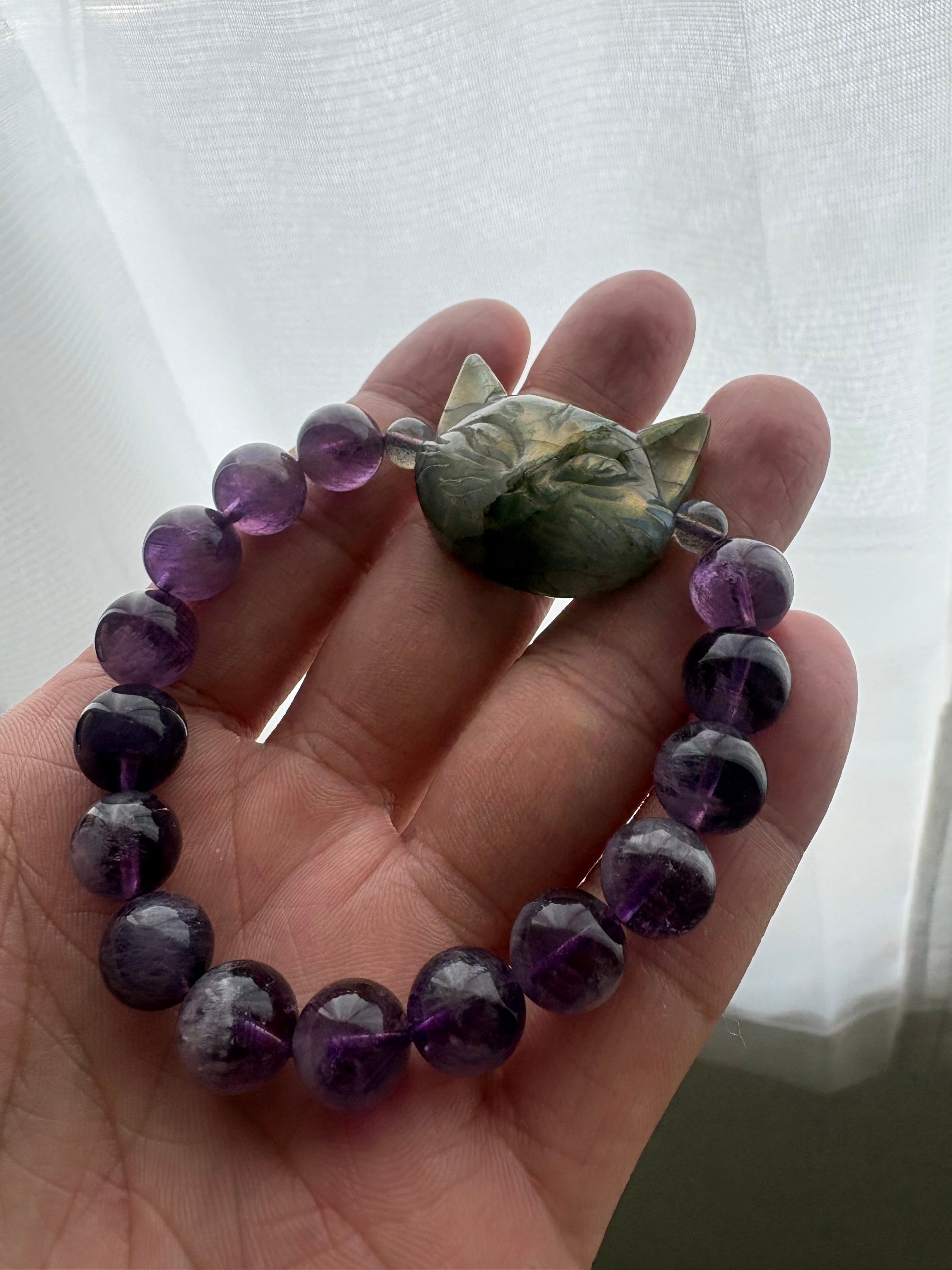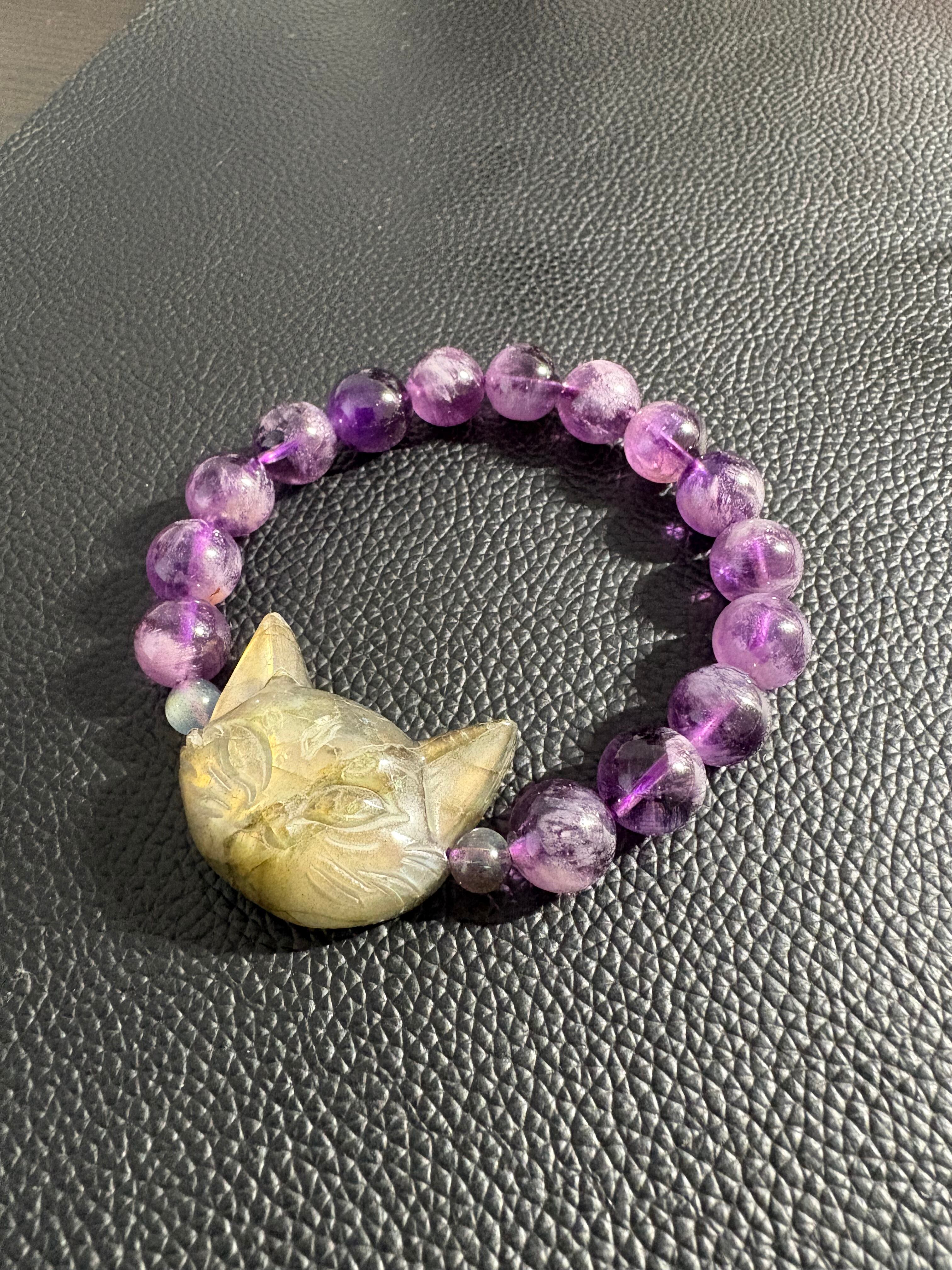✨ラブラドライト猫&フェザーアメジスト✨ サイズ10.5ミリ 内径16㎝ ※フォローして頂き、10%OFFクーポンをご利用下さい☆