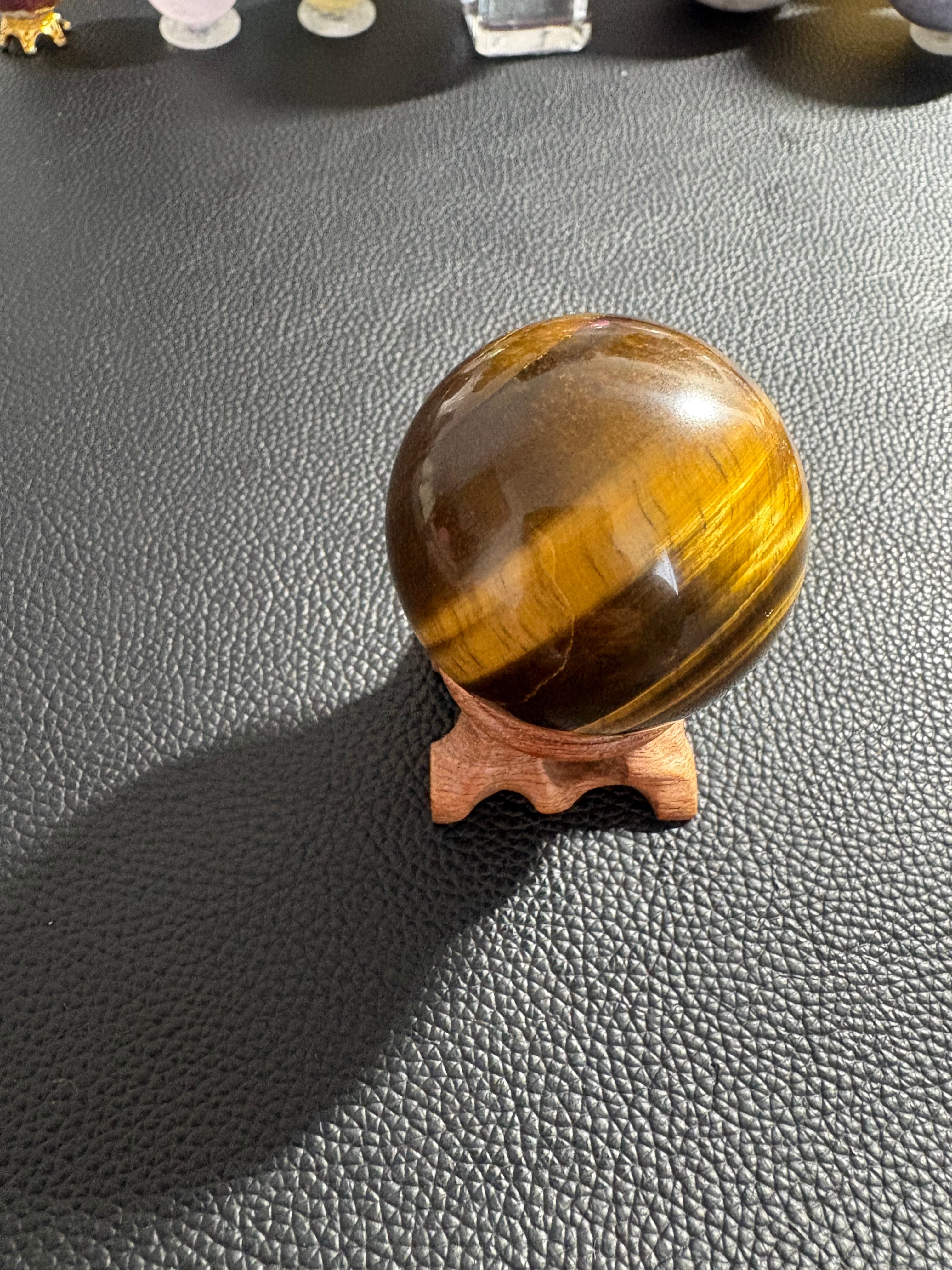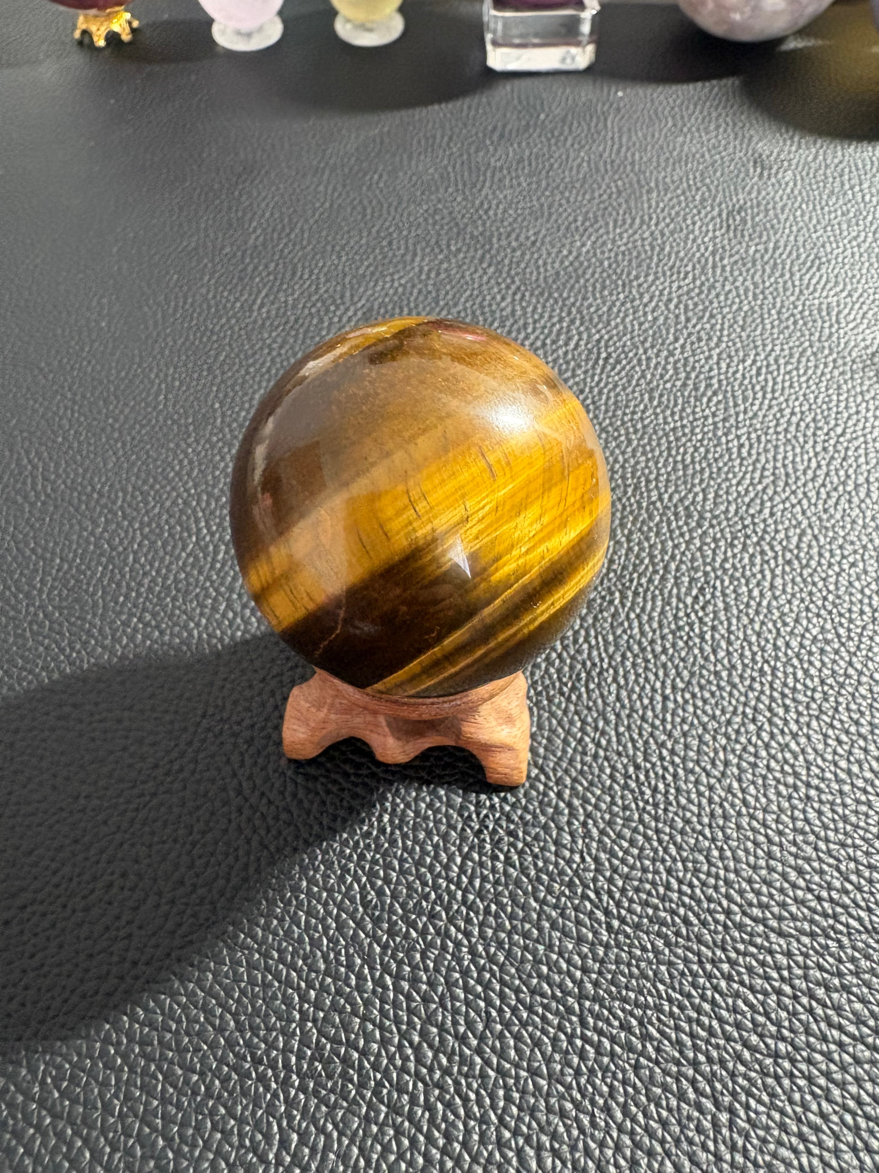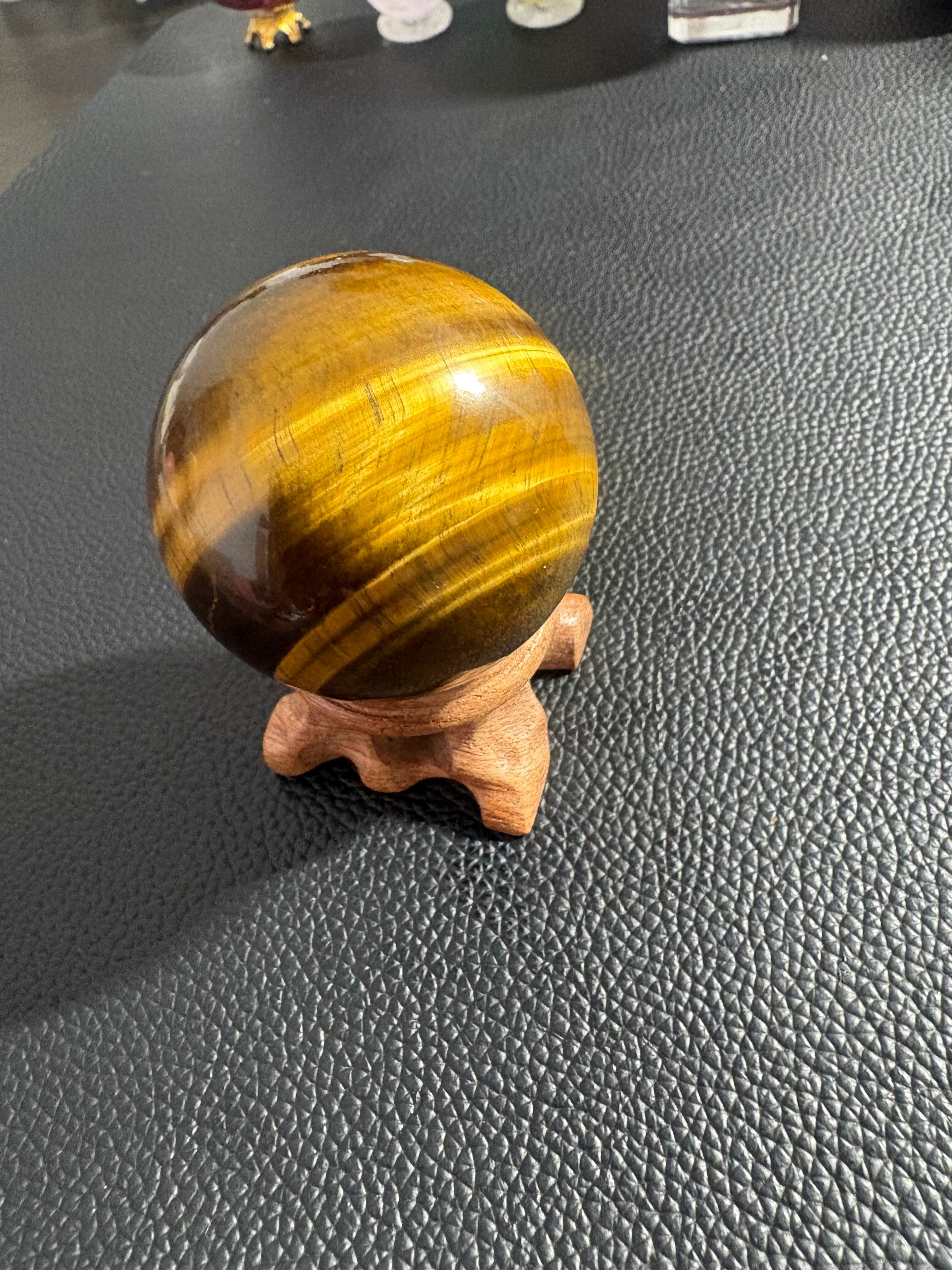 ✨イエロータイガーアイスフィア✨ サイズ45.5ミリ 台座付き✨ ※フォローして頂き、10%OFFクーポンをご利用下さい☆