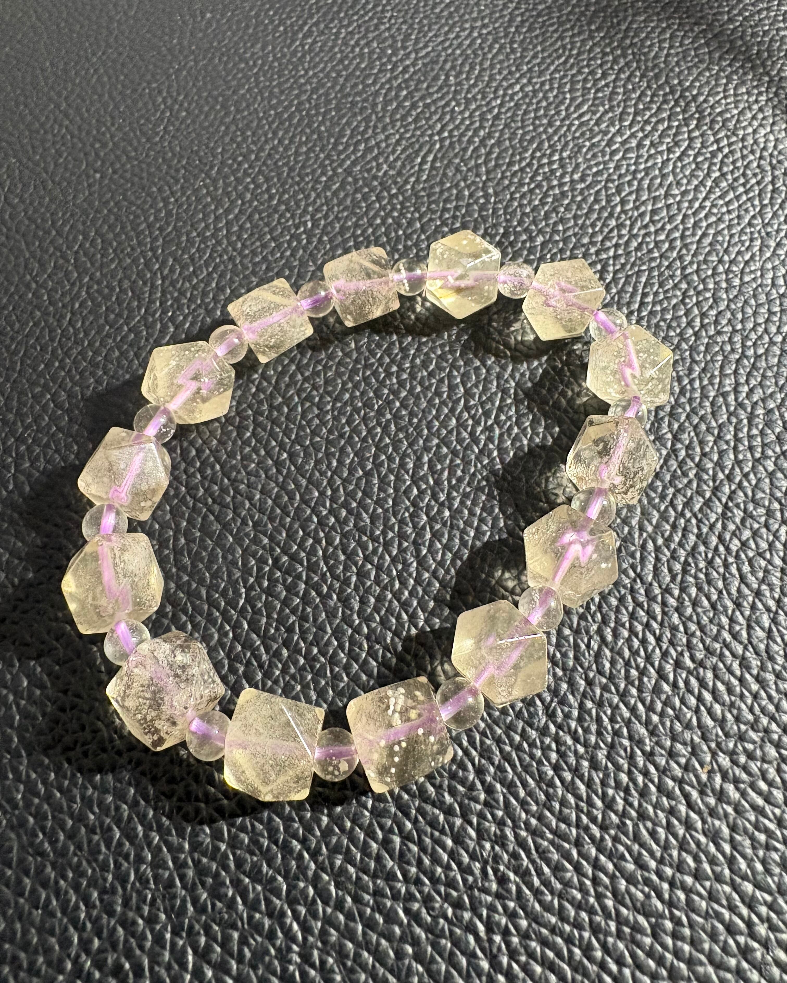 パープルリビアングラスは、通常のリビアングラス(隕石が起源のガラス質)に紫色が加わったもので、強力なカルマ浄化、魂の目的の明確化、直感力・インスピレーション向上、ポジティブな変化の促進、高次の宇宙エネルギーとの繋がりが期待される、非常にヒーリング効果が高いパワーストーンです。特に前世からのネガティブな影響を断ち切り、現世での自己成長や奇跡的な引き寄せをサポートすると言われています。