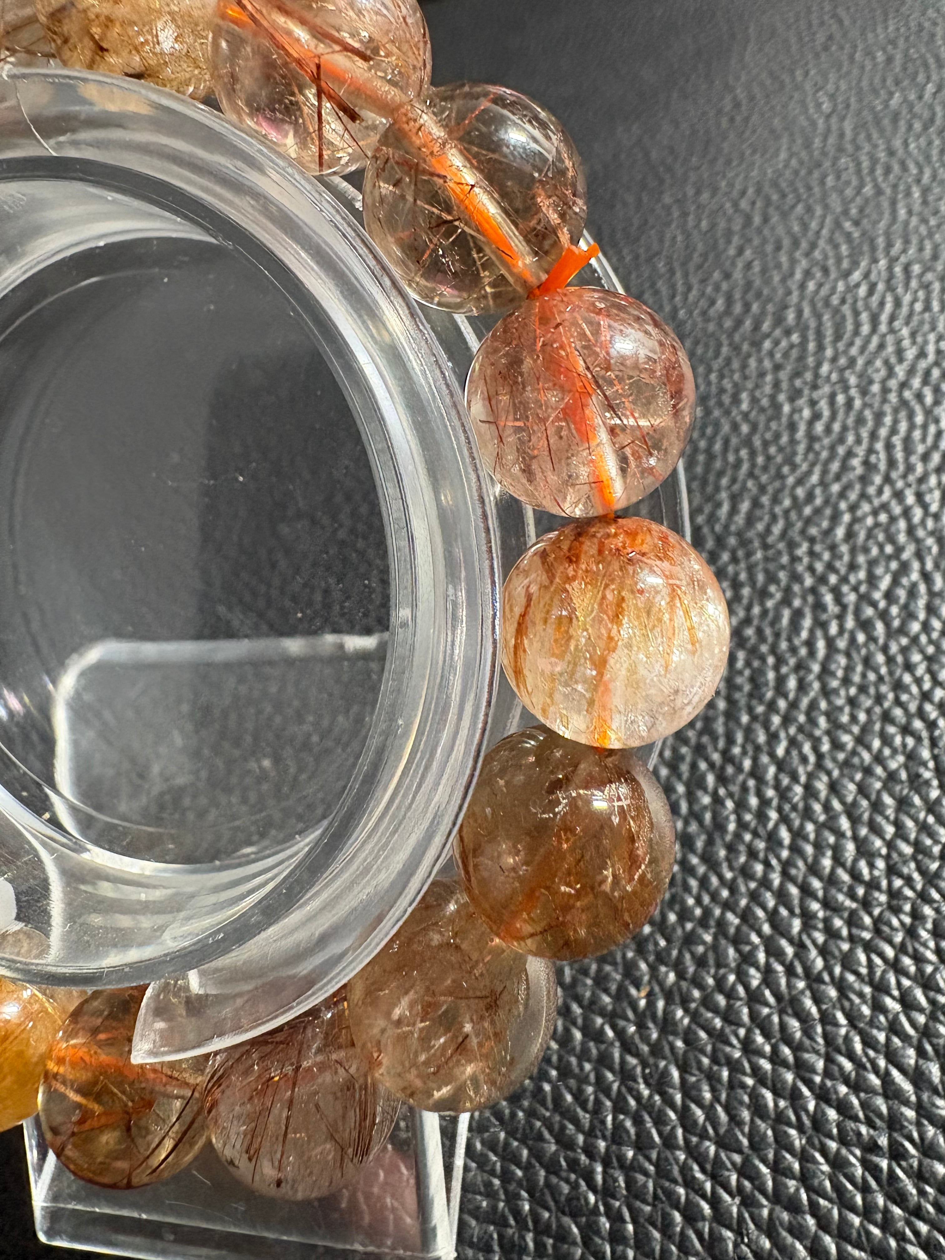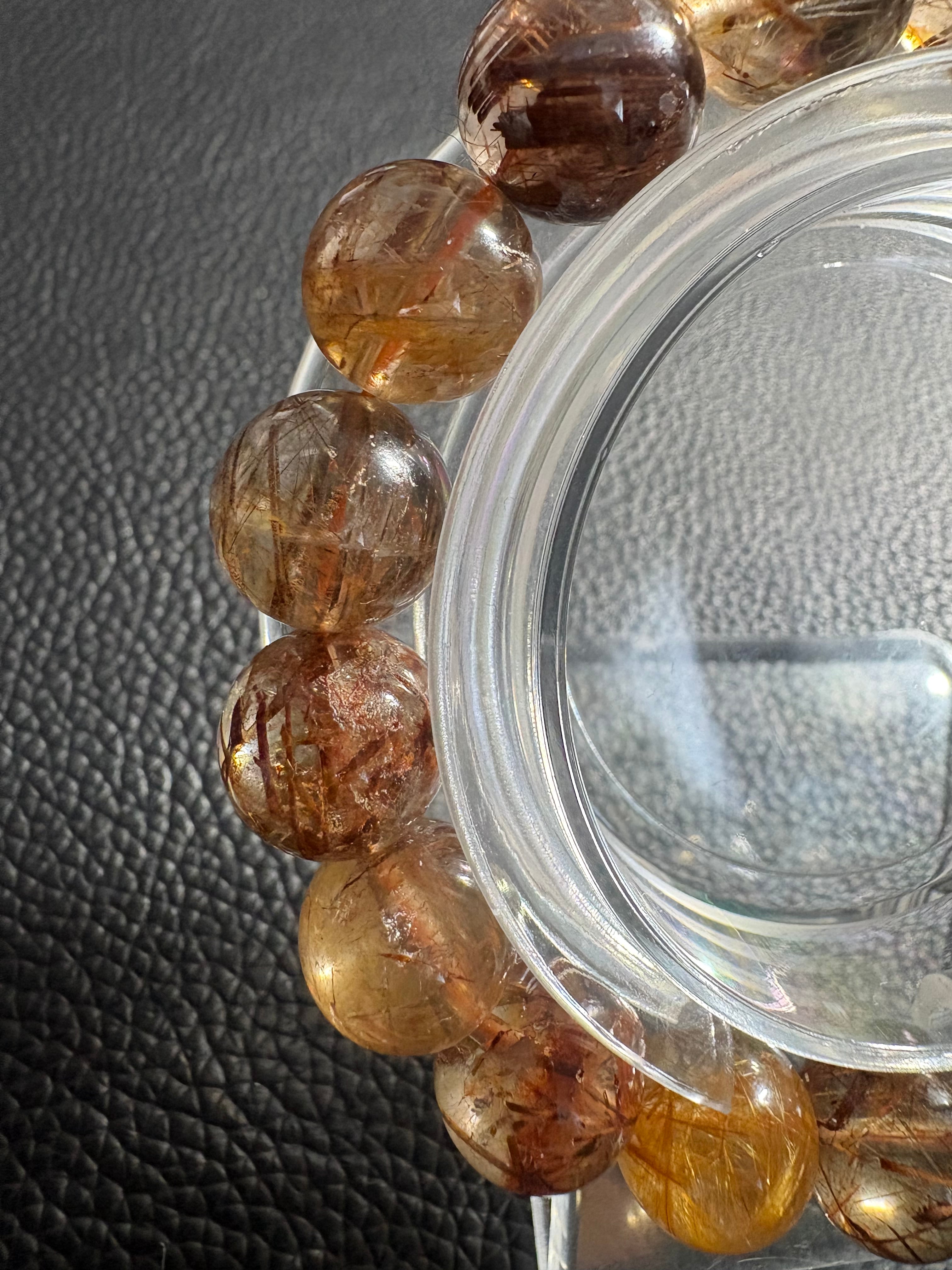 こちらは、スモーキークォーツ(茶色の水晶)にルチル(金紅石)が内包された天然石で、
