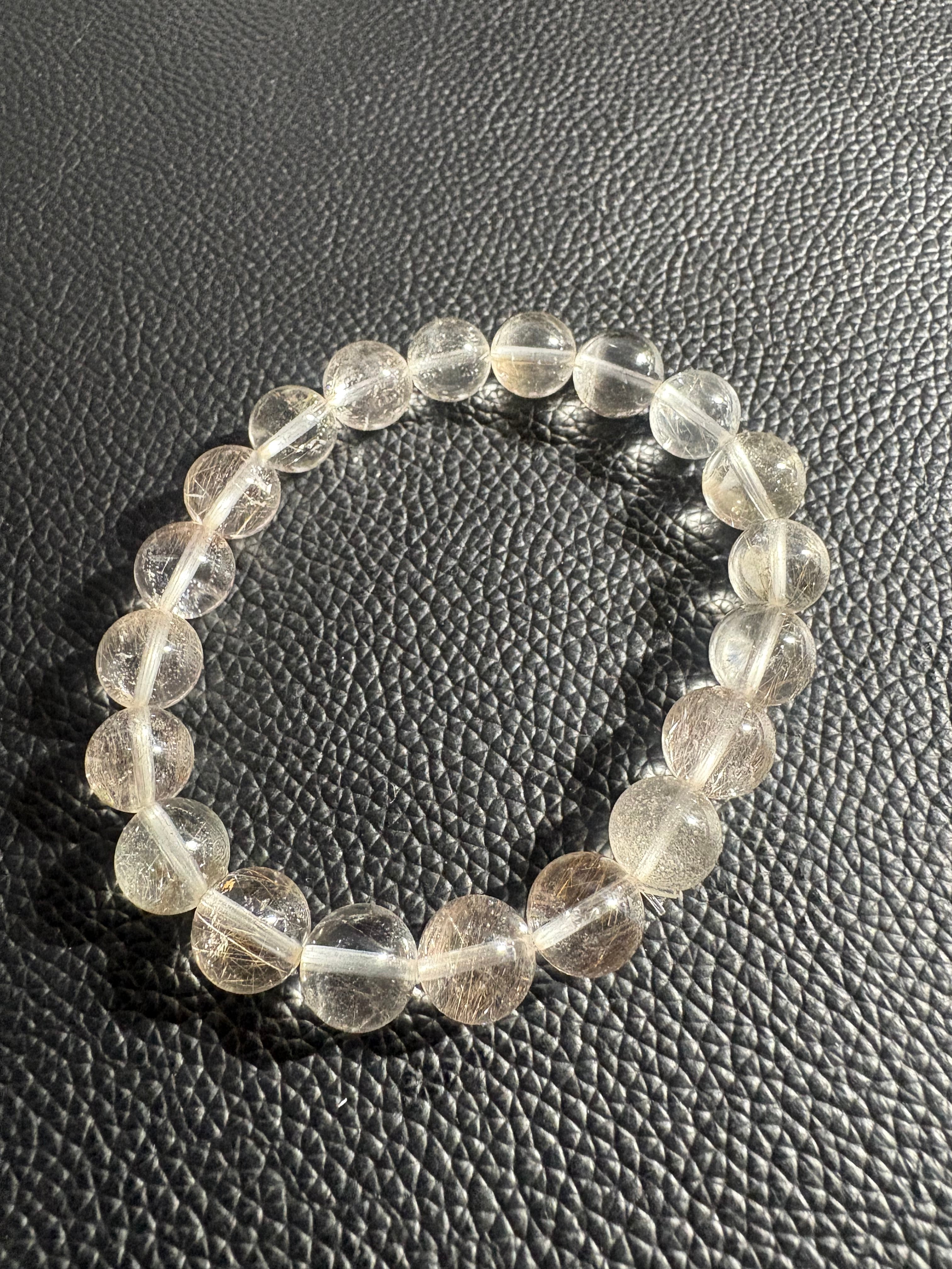 うさぎの毛のように、ふんわりとした繊維状の内包物が特徴のラビットヘアクォーツを使用したブレスレットです。