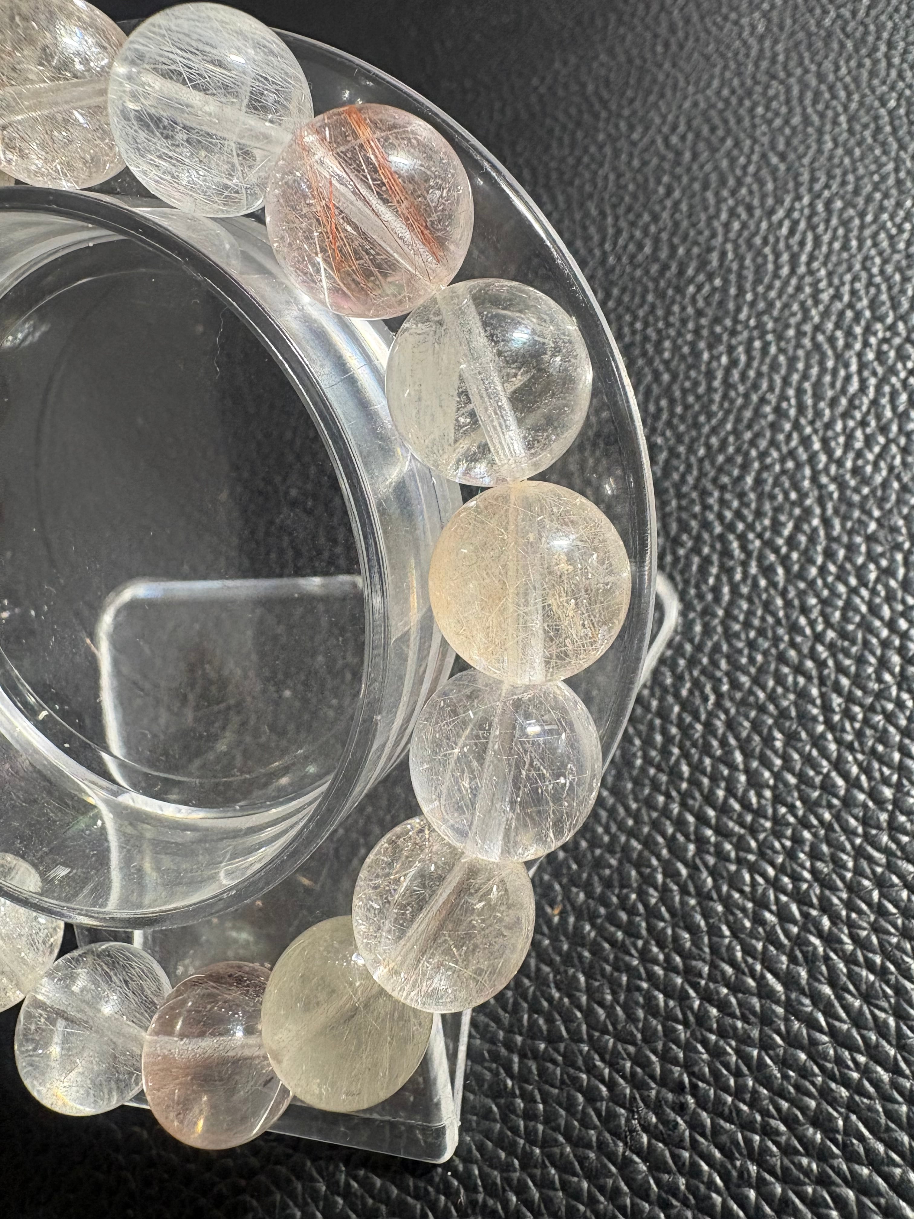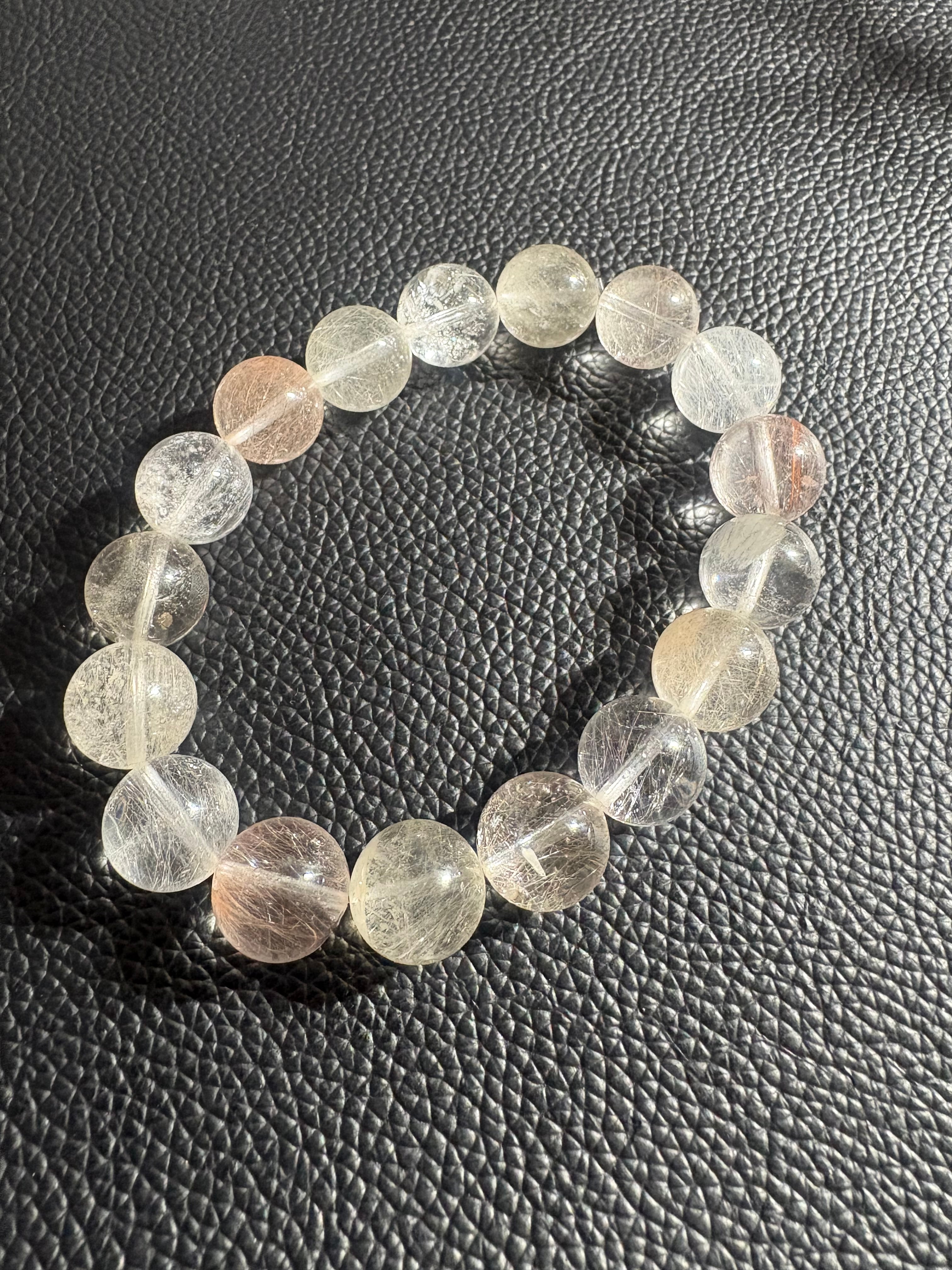 うさぎの毛のように、ふんわりとした繊維状の内包物が特徴のラビットヘアクォーツを使用したブレスレットです。