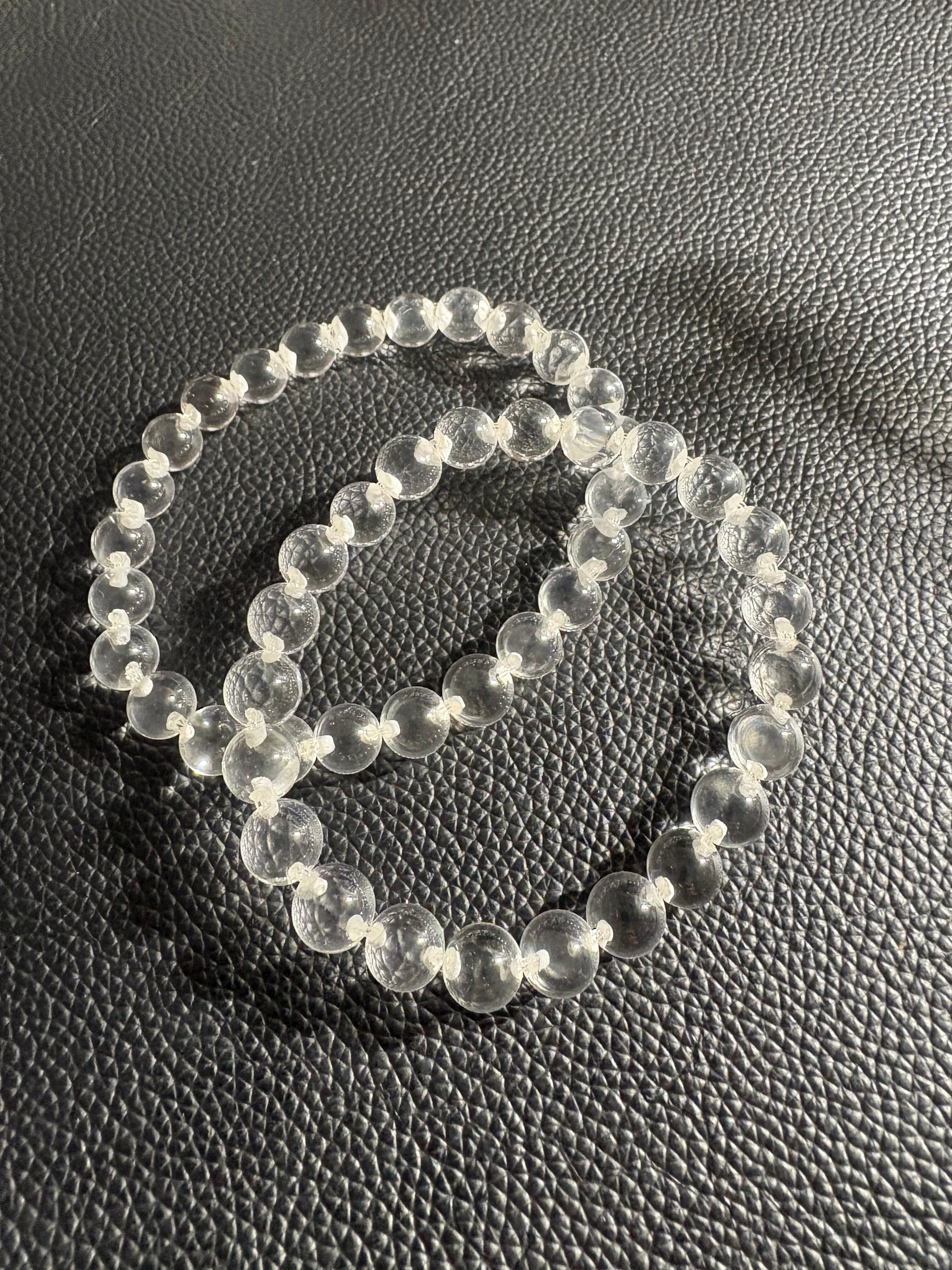 透明感あふれる水晶を使用した、貫通穴のないタイプのブレスレットです。
