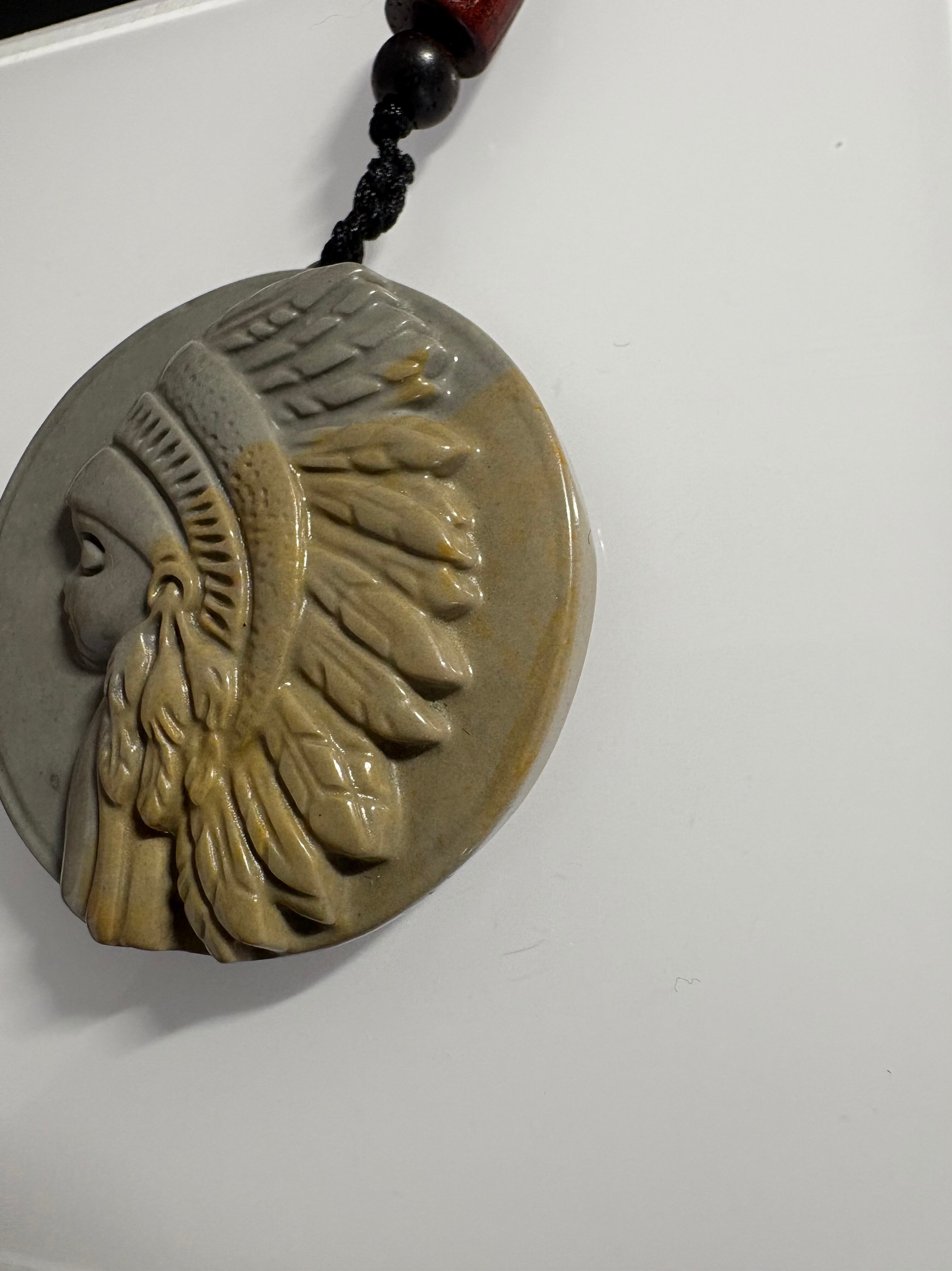アラシャン天然石を使用した、存在感のあるカービングペンダント。落ち着いたグレージュ〜サンドカラーのグラデーションが特徴です☆