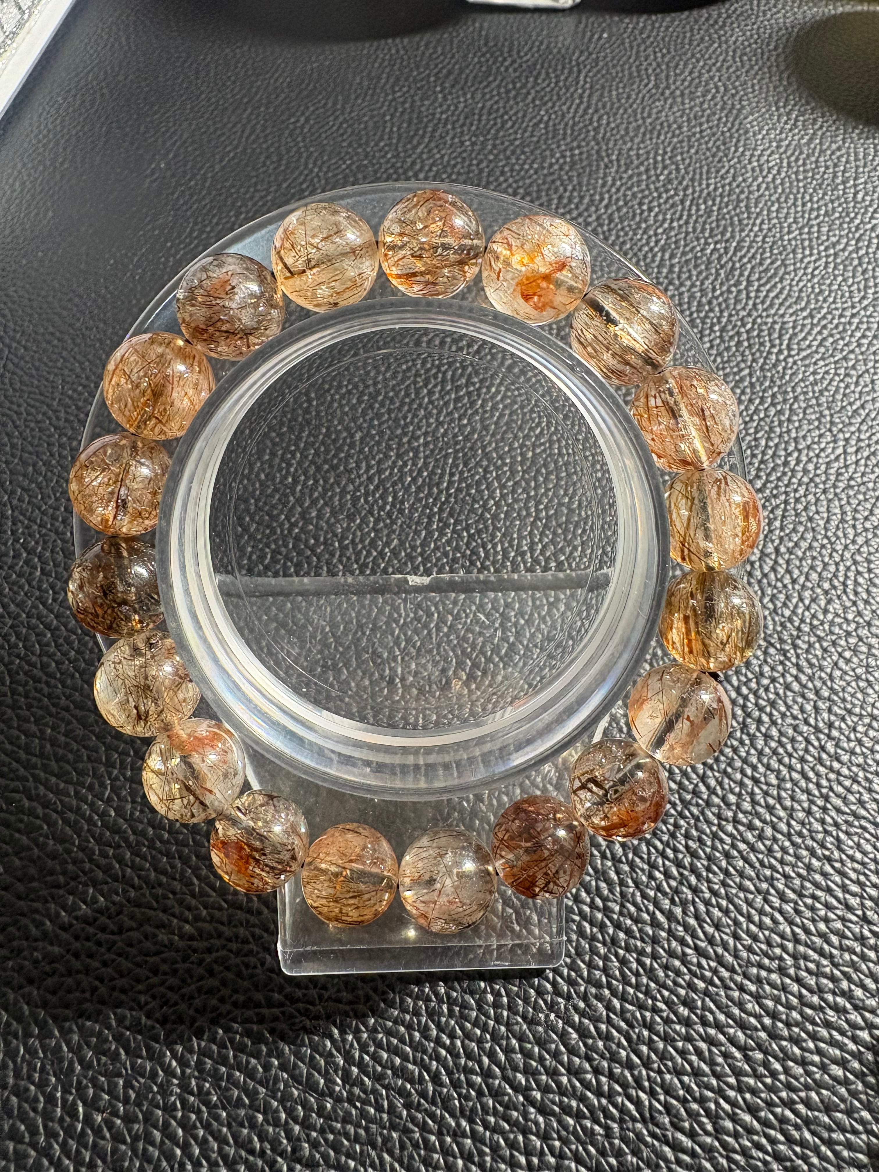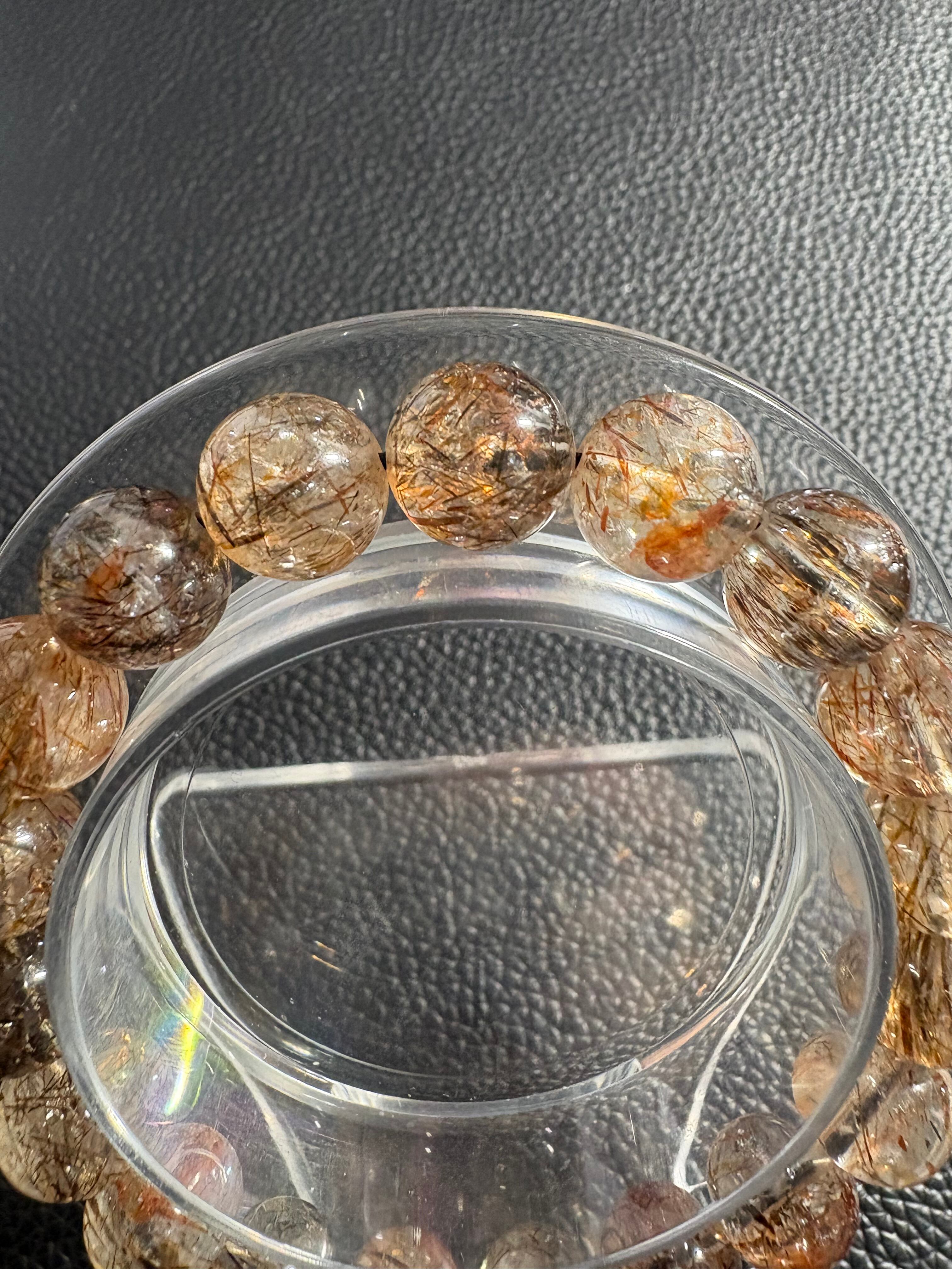 ブラック系の内包物と、ゴールド〜ブロンズカラーの繊細な針状インクルージョンが美しく共存するブラックゴールドスーパーセブン。