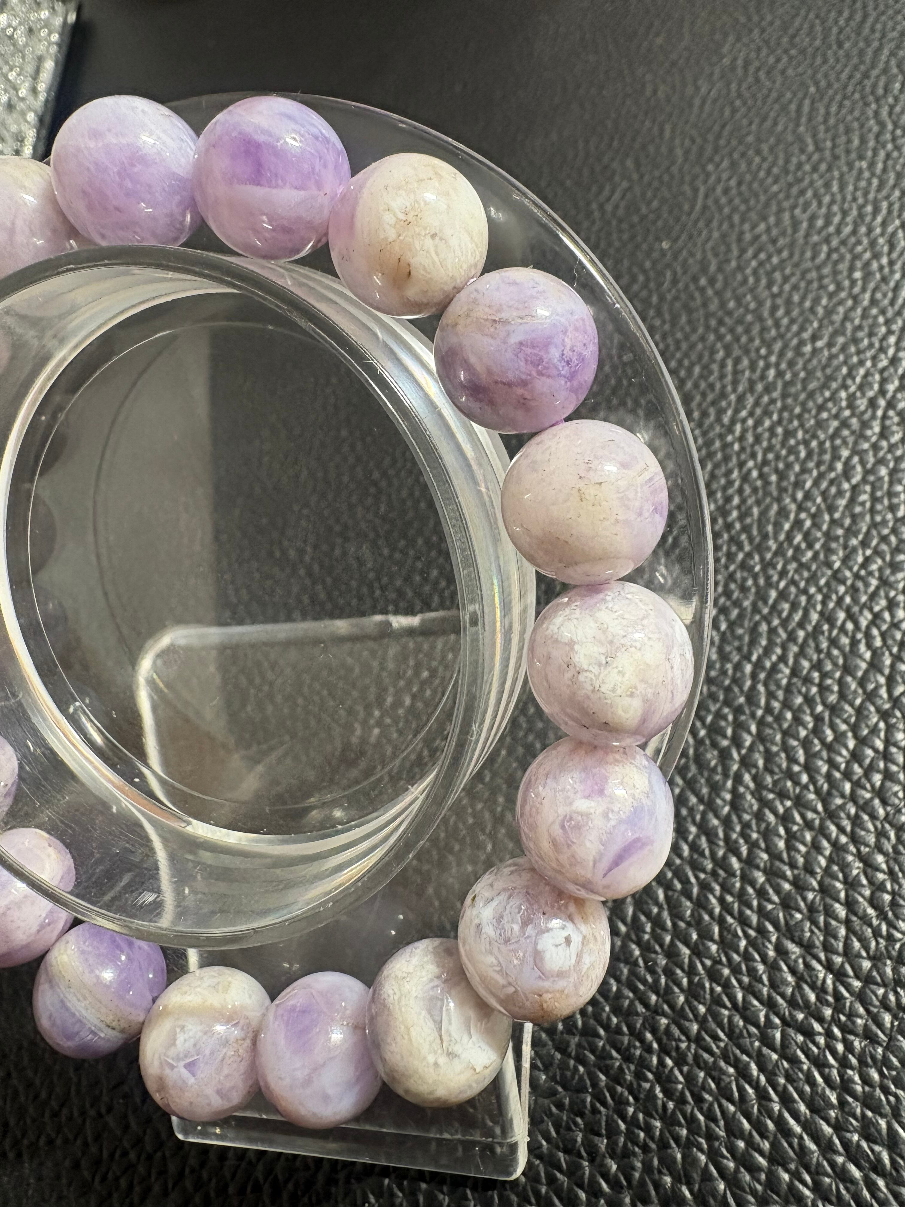 やさしいラベンダー色に、ミルクのようなクリームカラーが溶け合う幻想的なマーブル模様のティファニーストーン✨一粒一粒に個性があり、まるで絵画のような自然のアートを楽しめるブレスレットです。