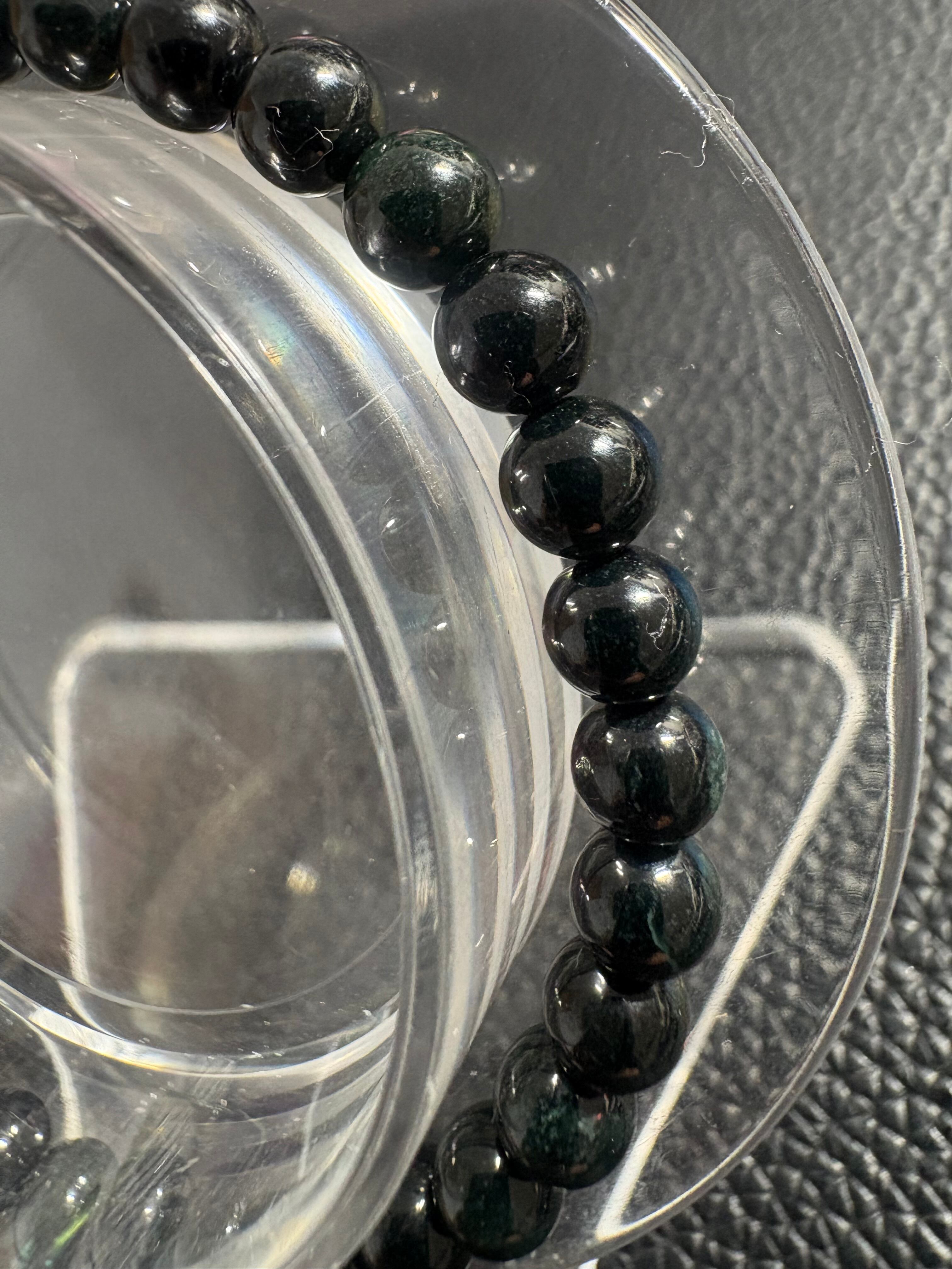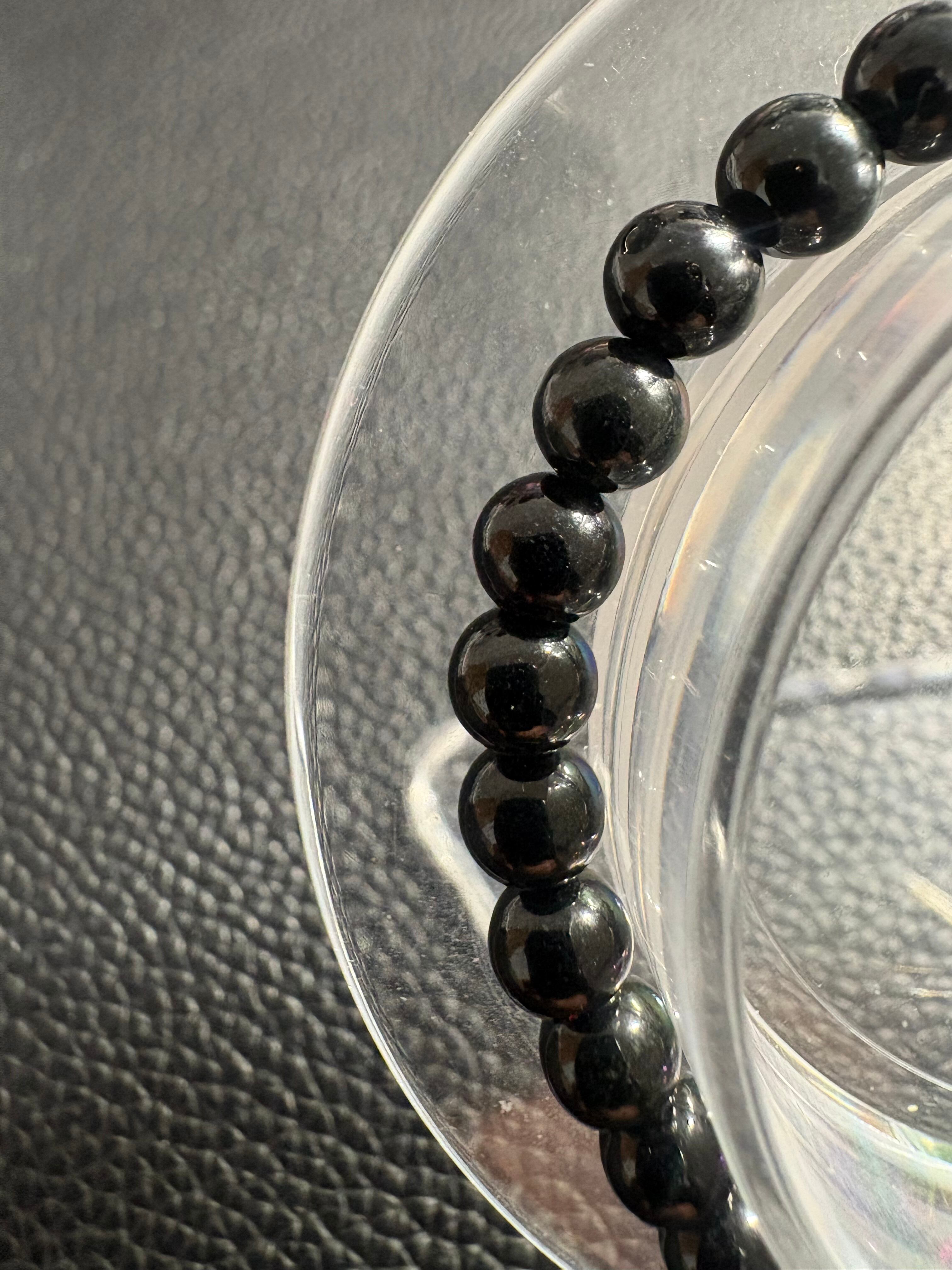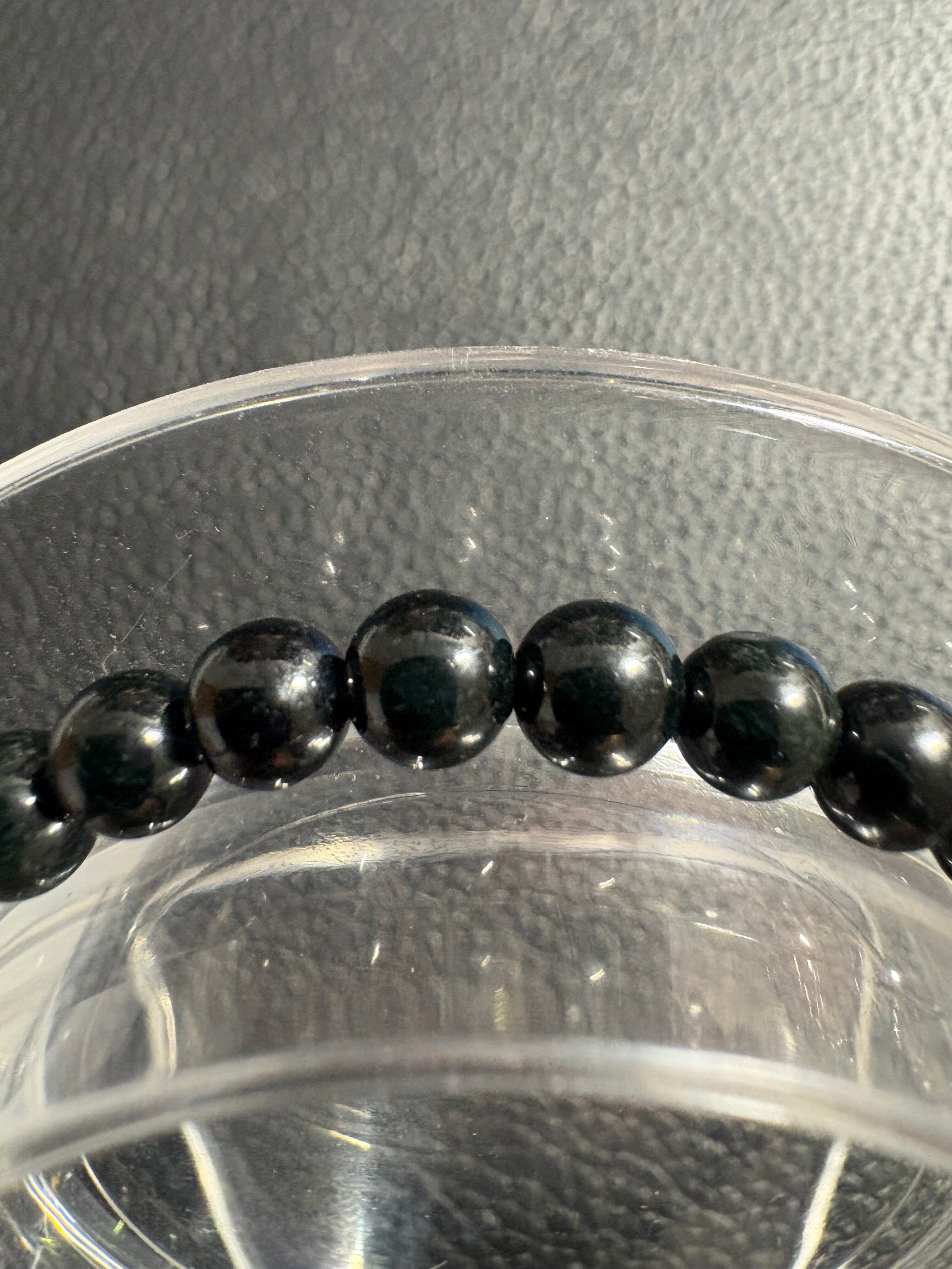 深みのある艶やかな黒が美しい、ミャンマー産ブラック翡翠のブレスレット。
