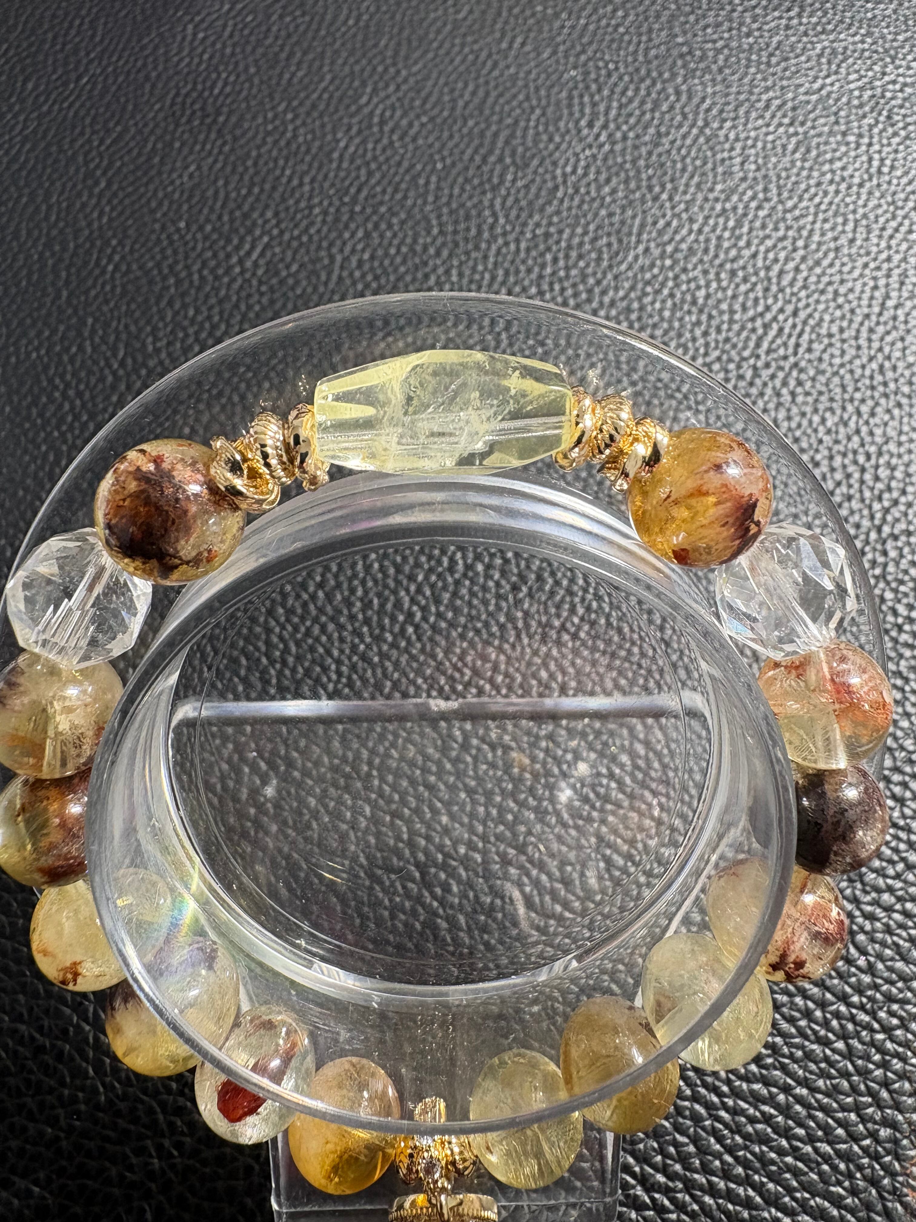 ✨セリサイトインシトリン&ピアス✨ サイズ9.5ミリ 内径15.5㎝ ※フォローして頂き、10%OFFクーポンをご利用下さい☆