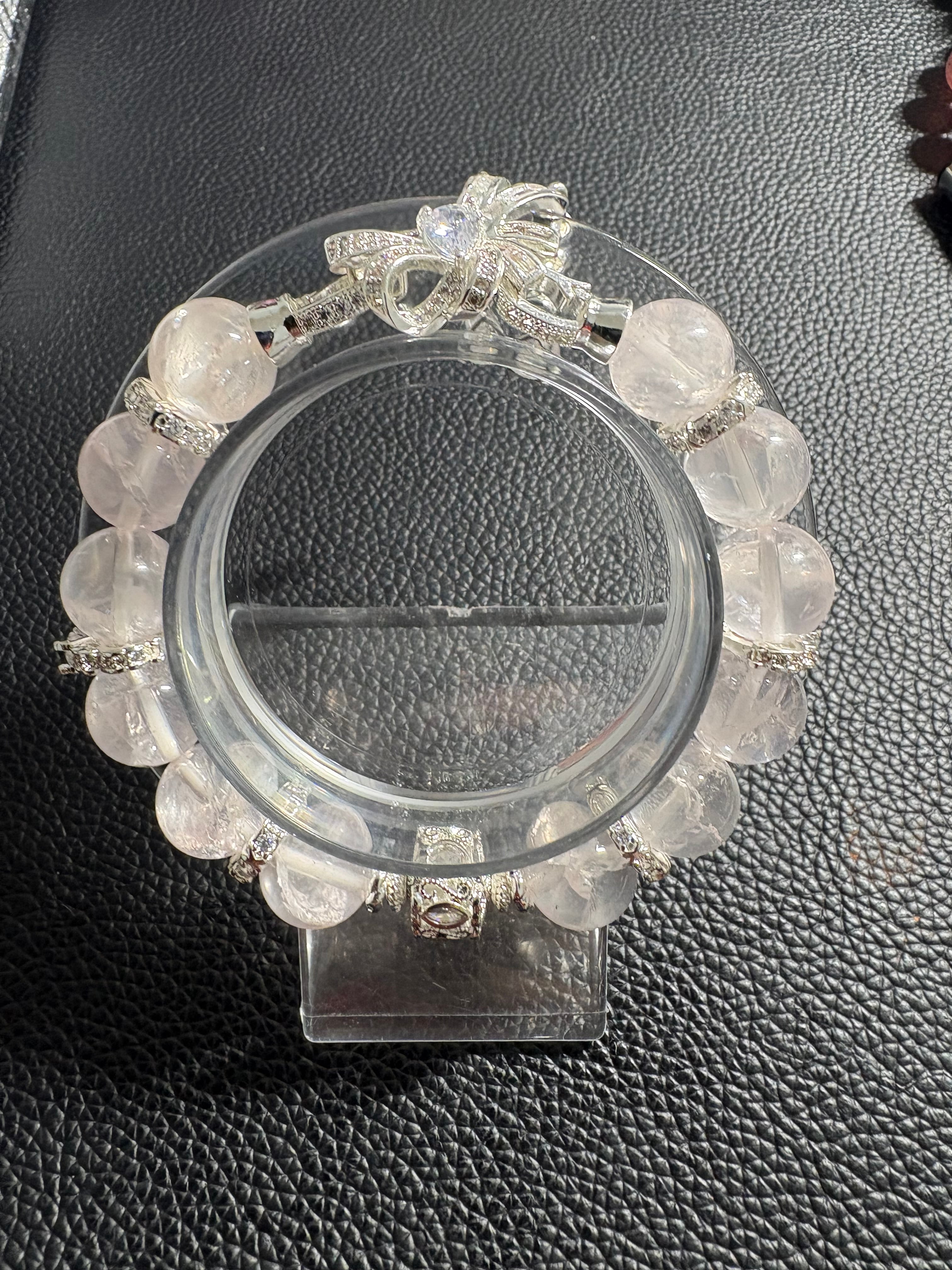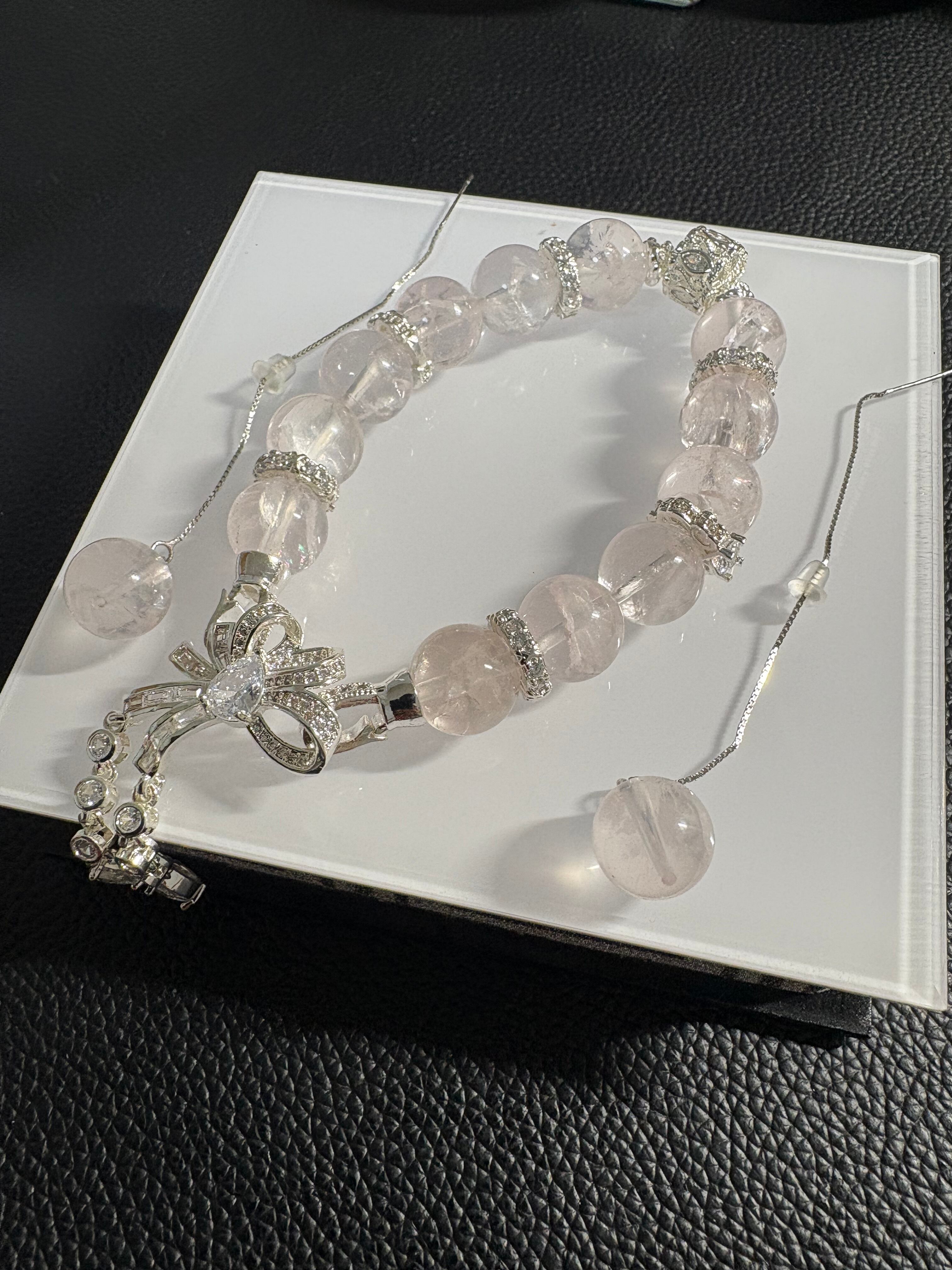 ✨ローズクォーツデザインブレスレット&ピアス✨ サイズ11ミリ 内径15㎝ ※フォローして頂き、10%OFFクーポンをご利用下さい☆