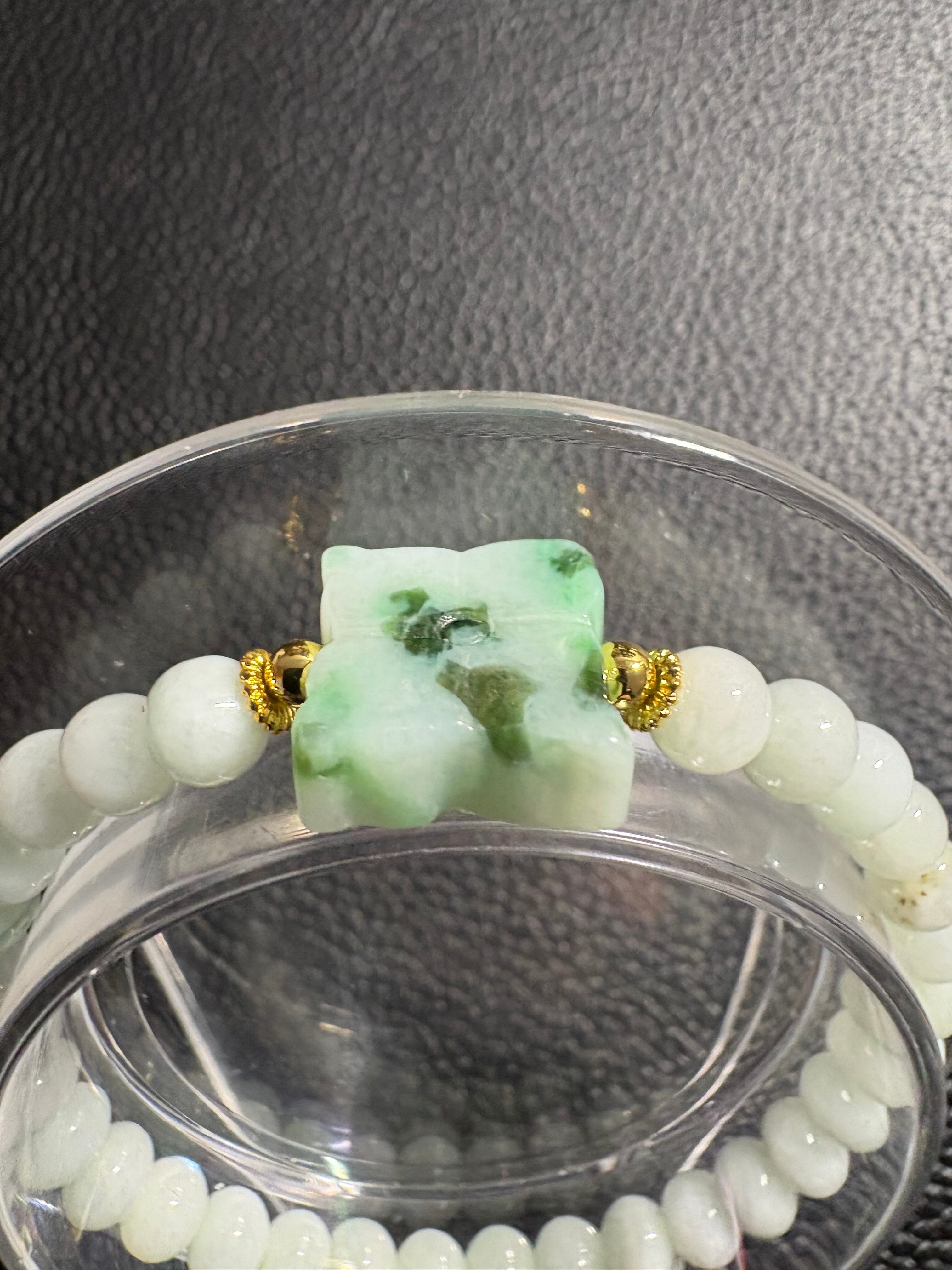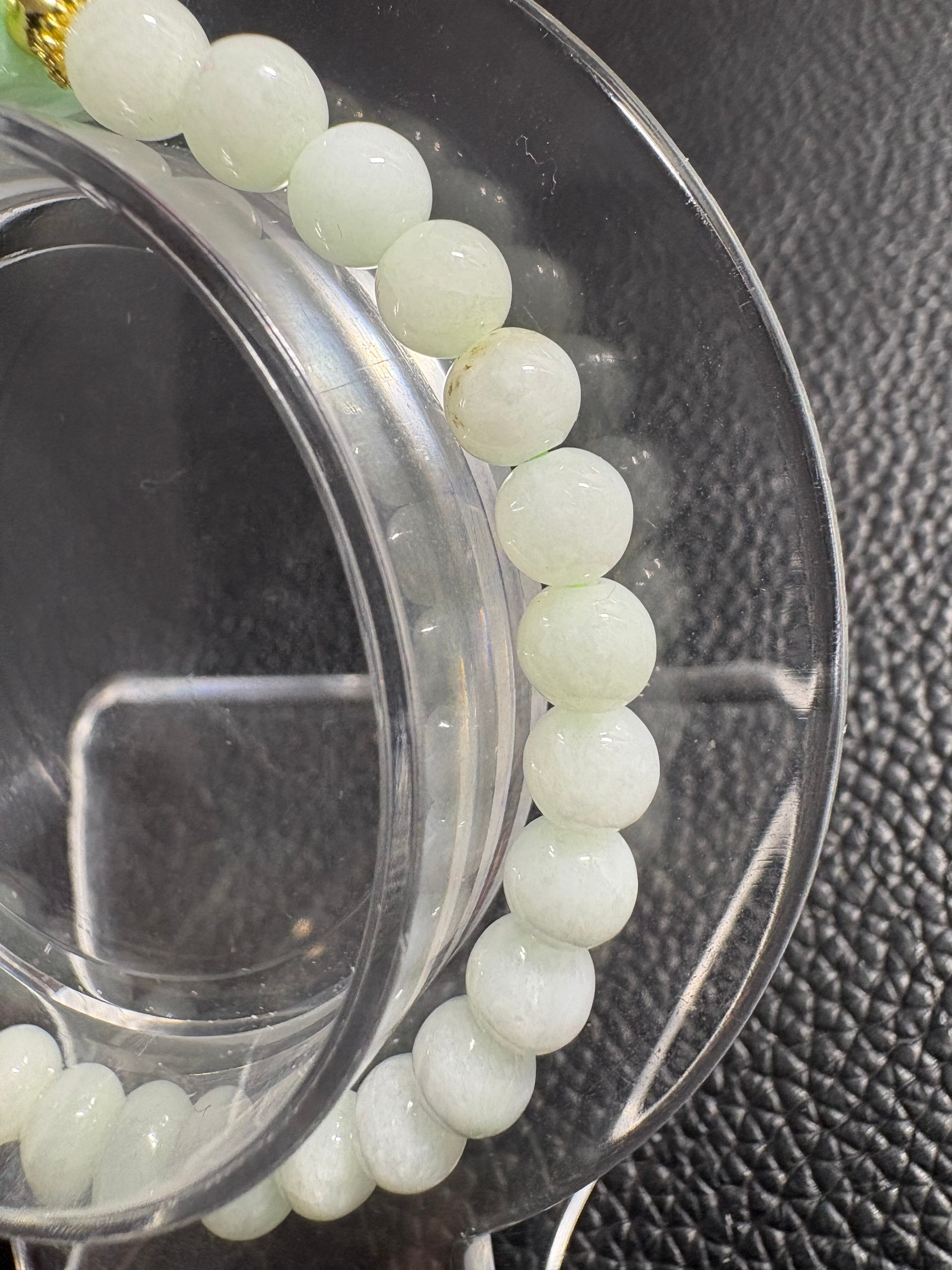 やさしいグリーンカラーが美しいミャンマー産翡翠を使用したデザインブレスレットです✨