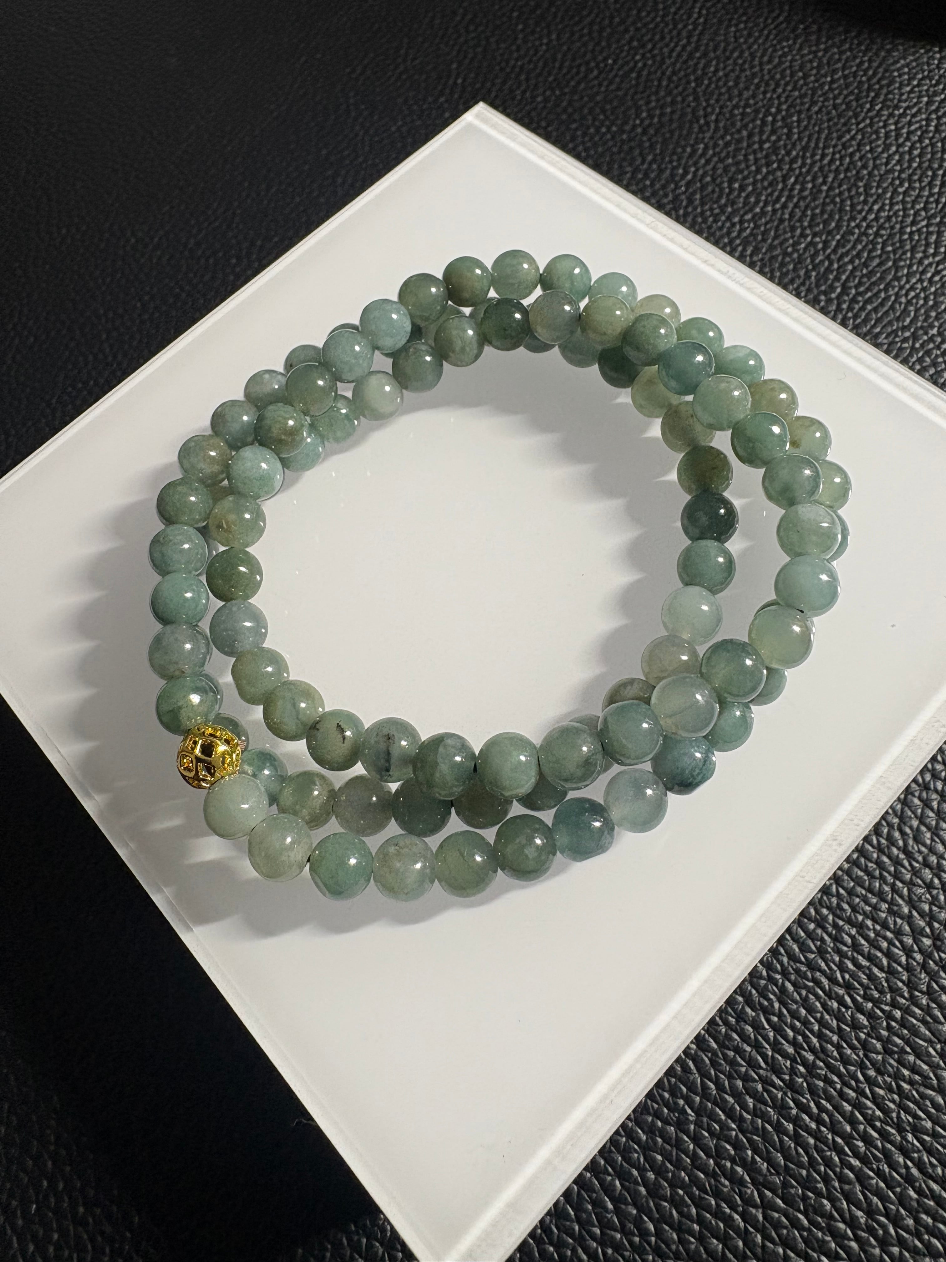 ミャンマー翡翠3連ブレスレット 6ミリ