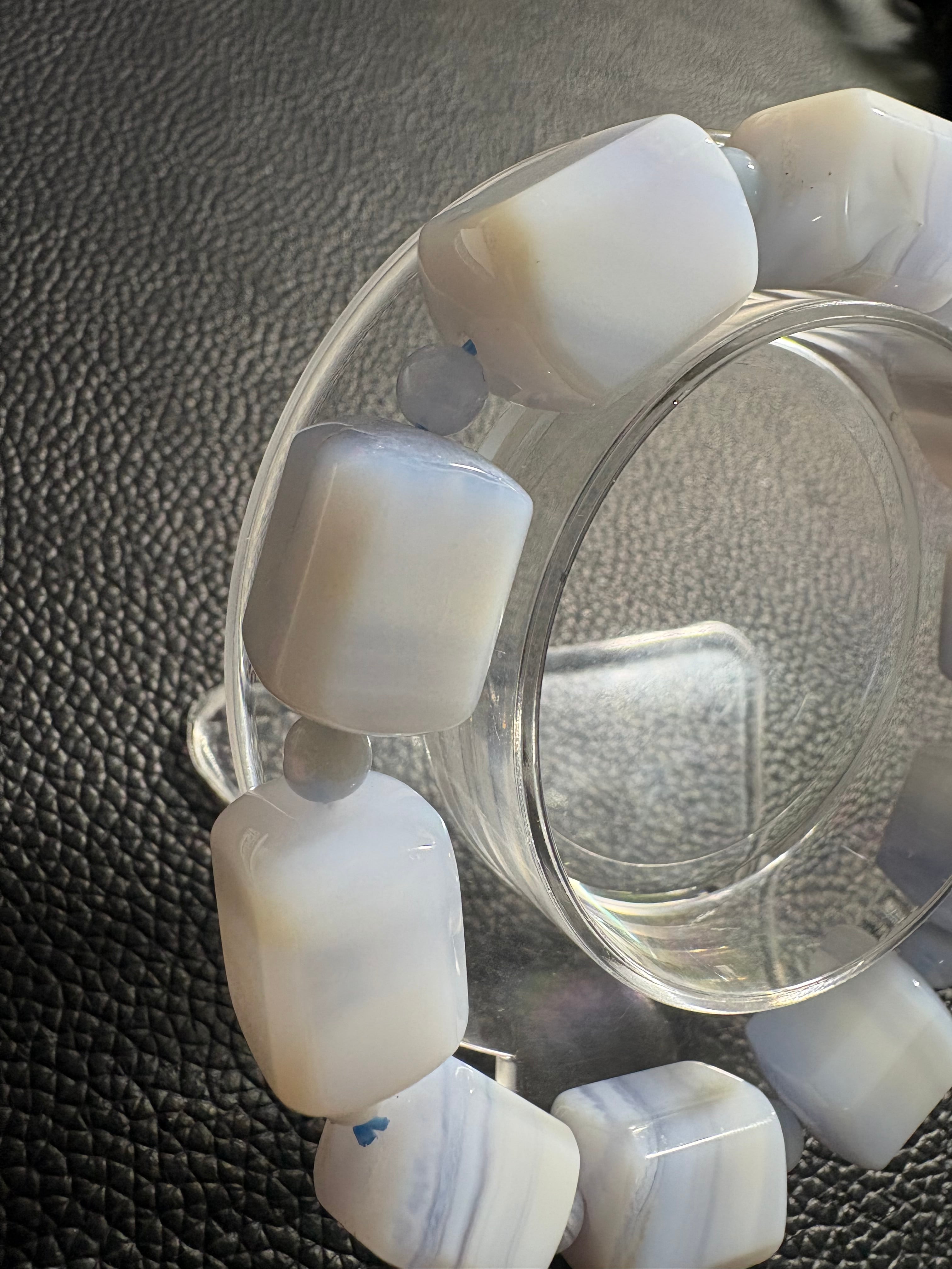優しいブルーの縞模様が美しいブルーレースアゲートのキューブブレスレットです✨