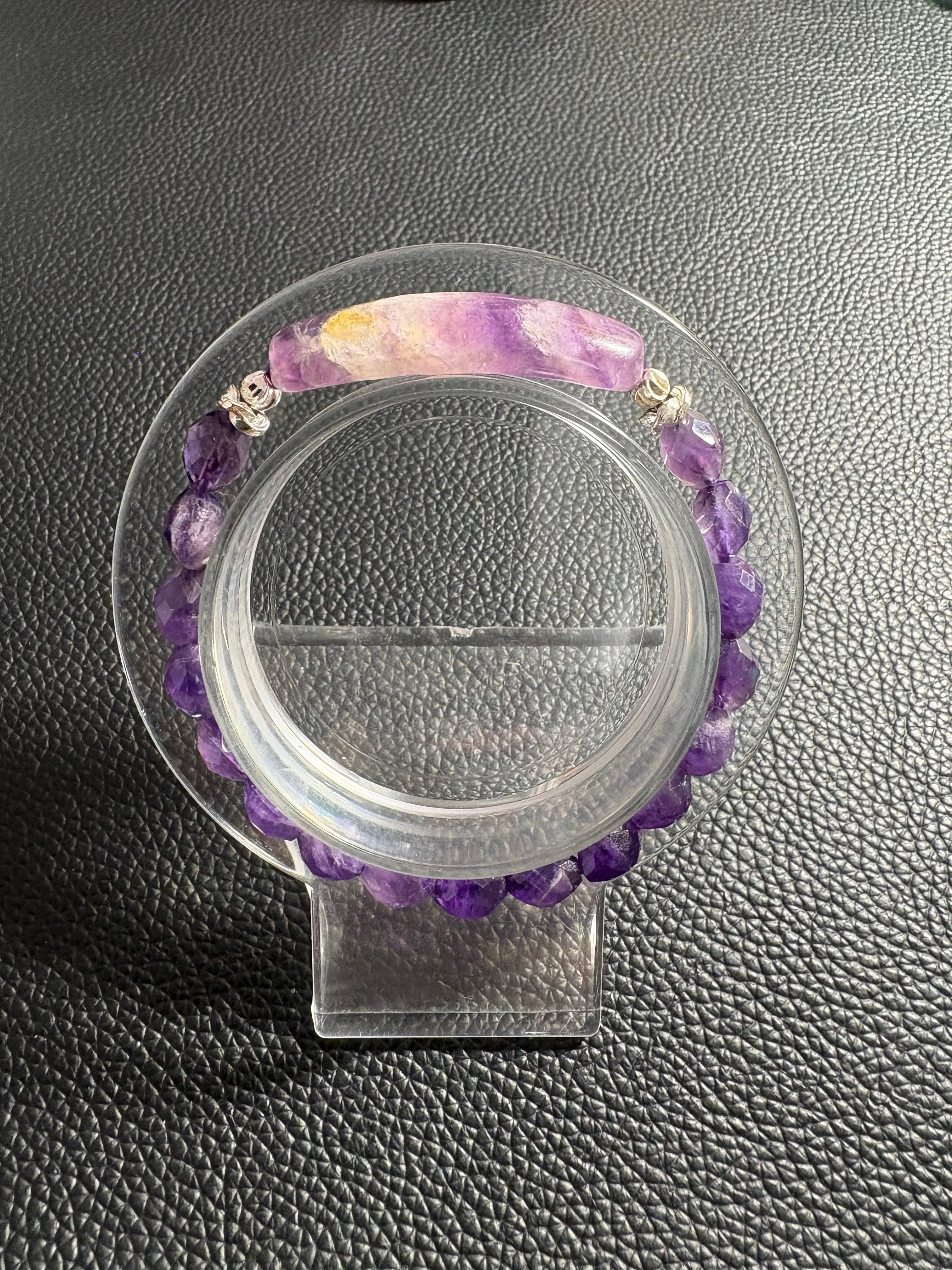 ✨天然アメジストカットデザインブレスレット✨ サイズ6.3ミリ 内径16㎝ ※フォローして頂き、10%OFFクーポンをご利用下さい☆