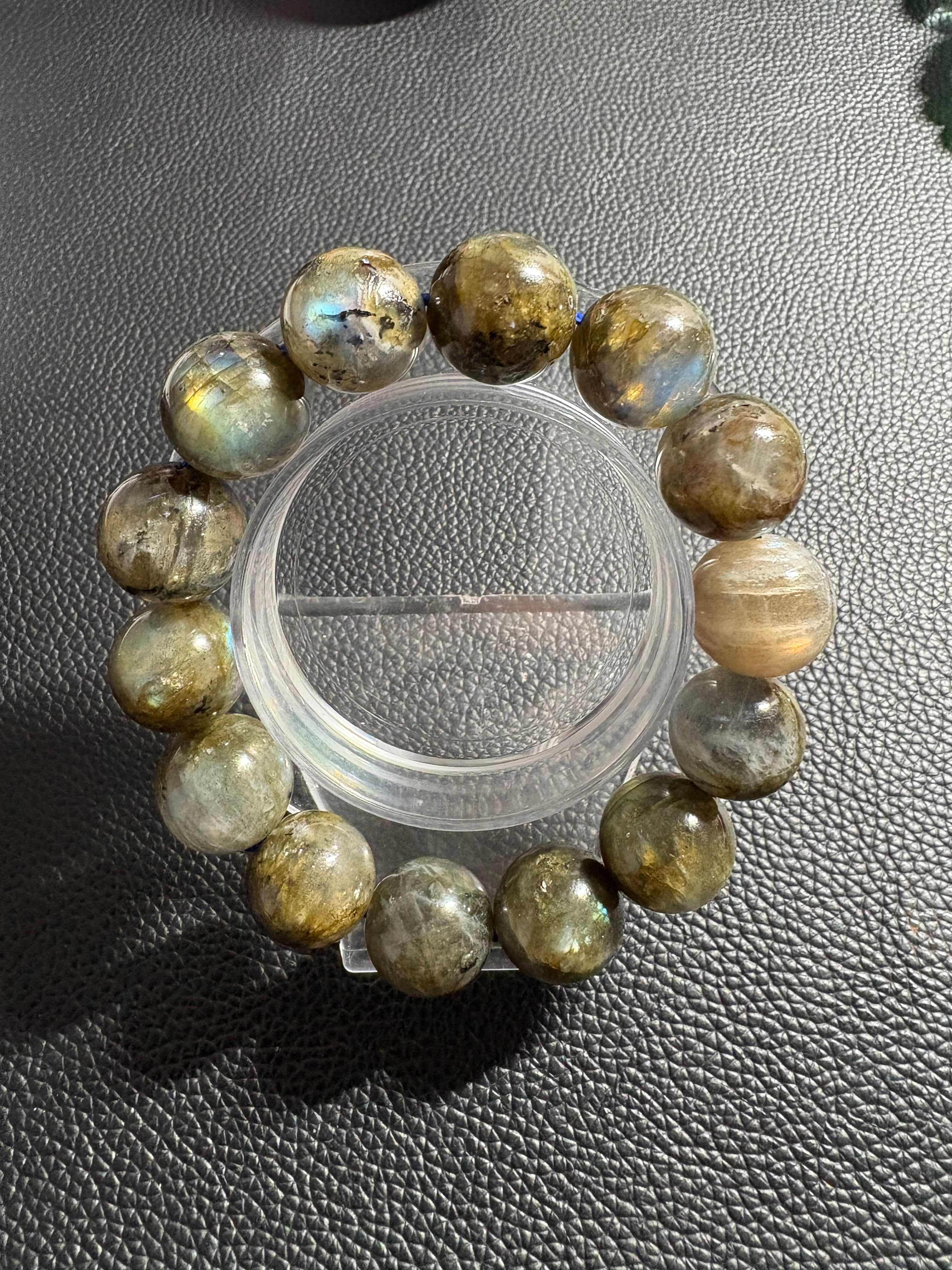 ✨幻想ブルーシラー大玉ラブラドライト✨ サイズ15.3ミリ 内径16.5㎝ ※フォローして頂き、10%OFFクーポンをご利用下さい☆