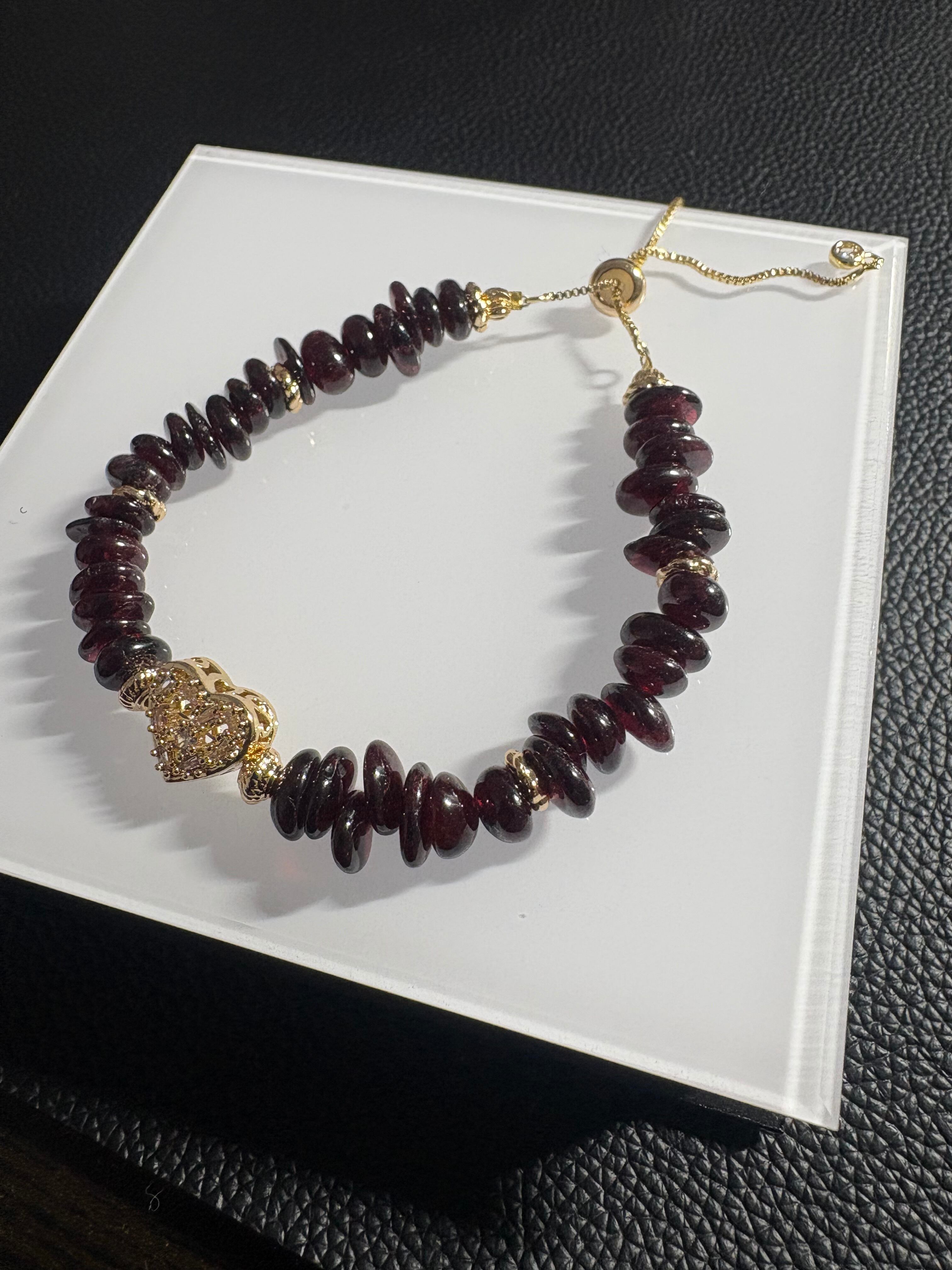 美しい深紅カラーが魅力のガーネット細石を贅沢に使用したデザインブレスレットです✨
