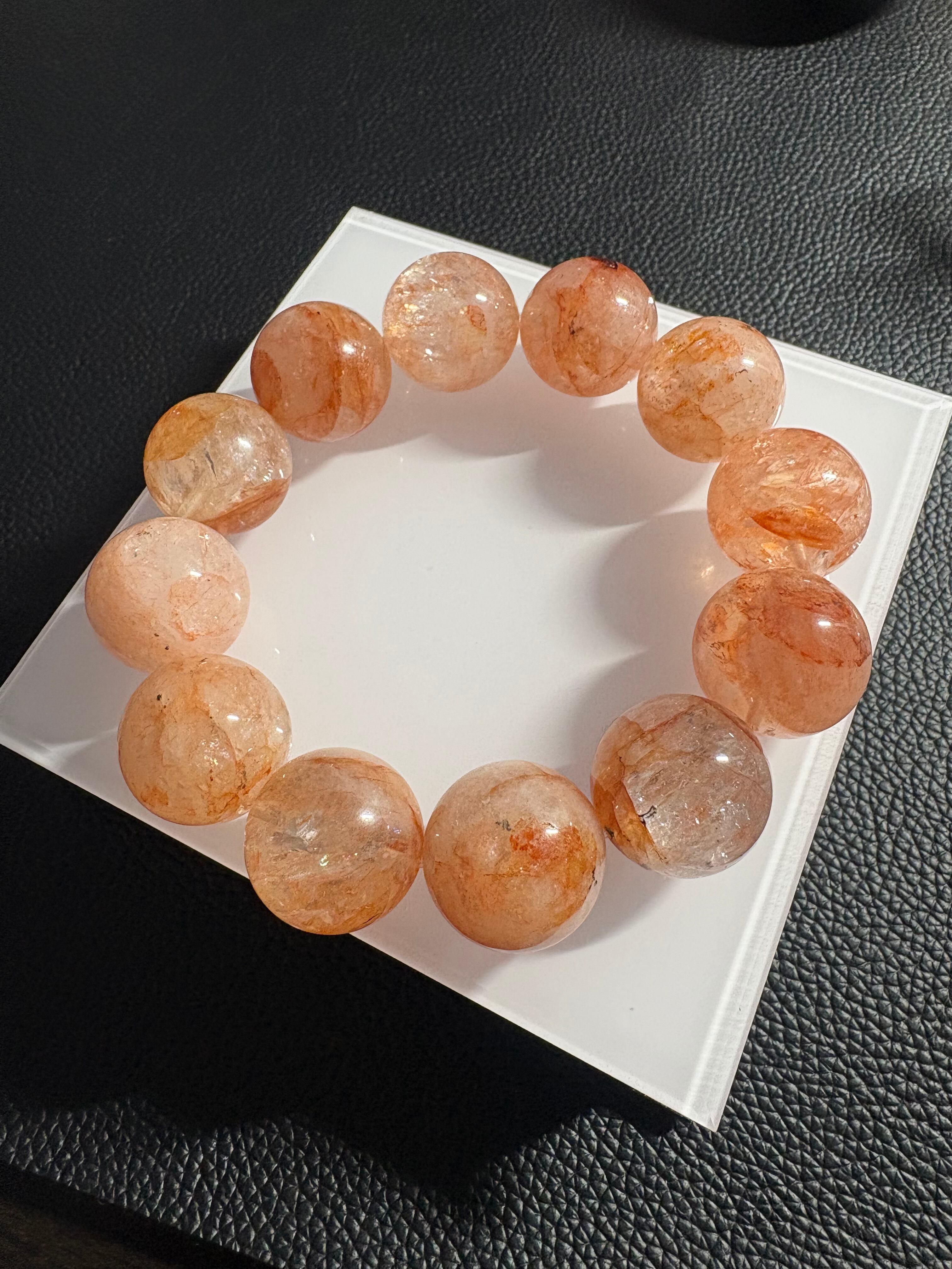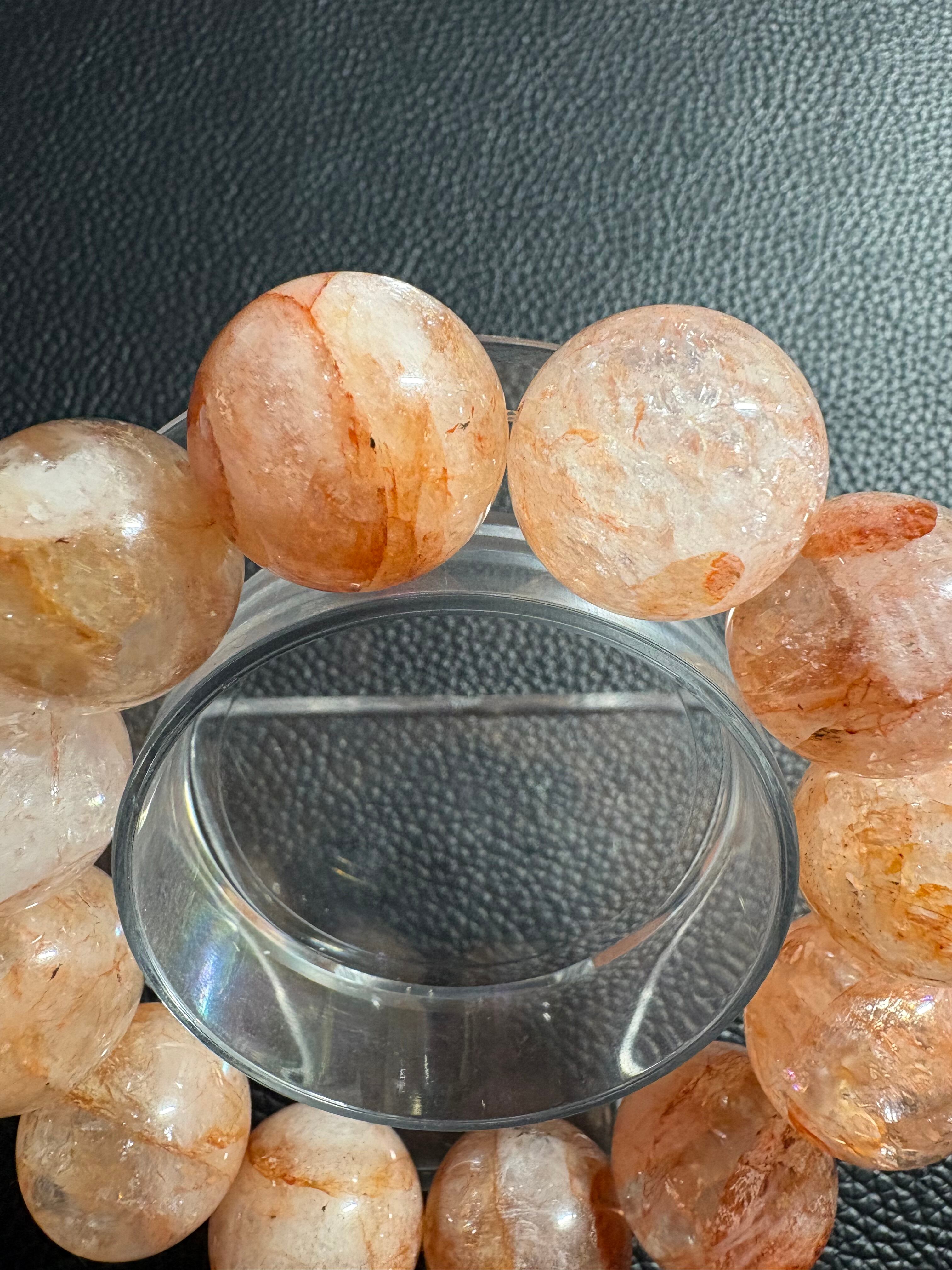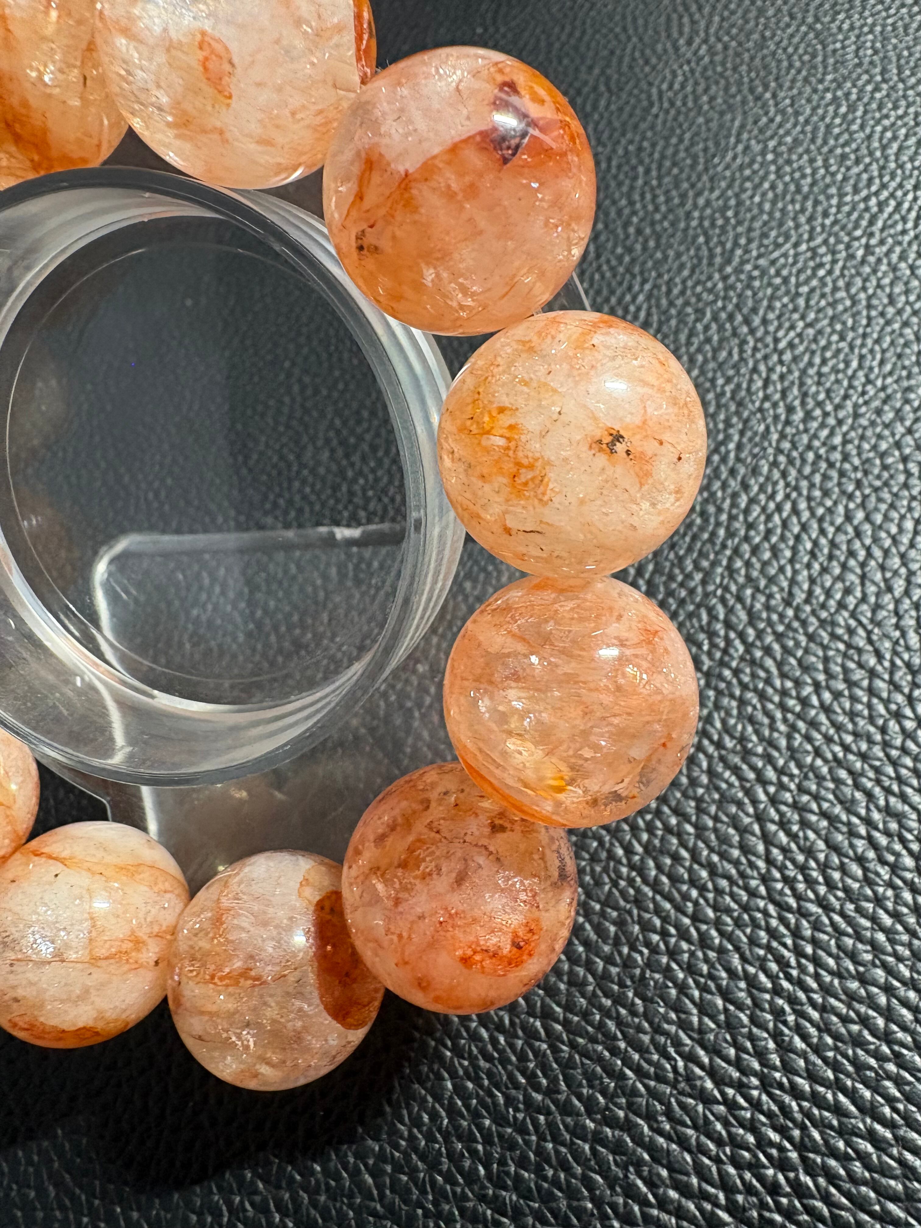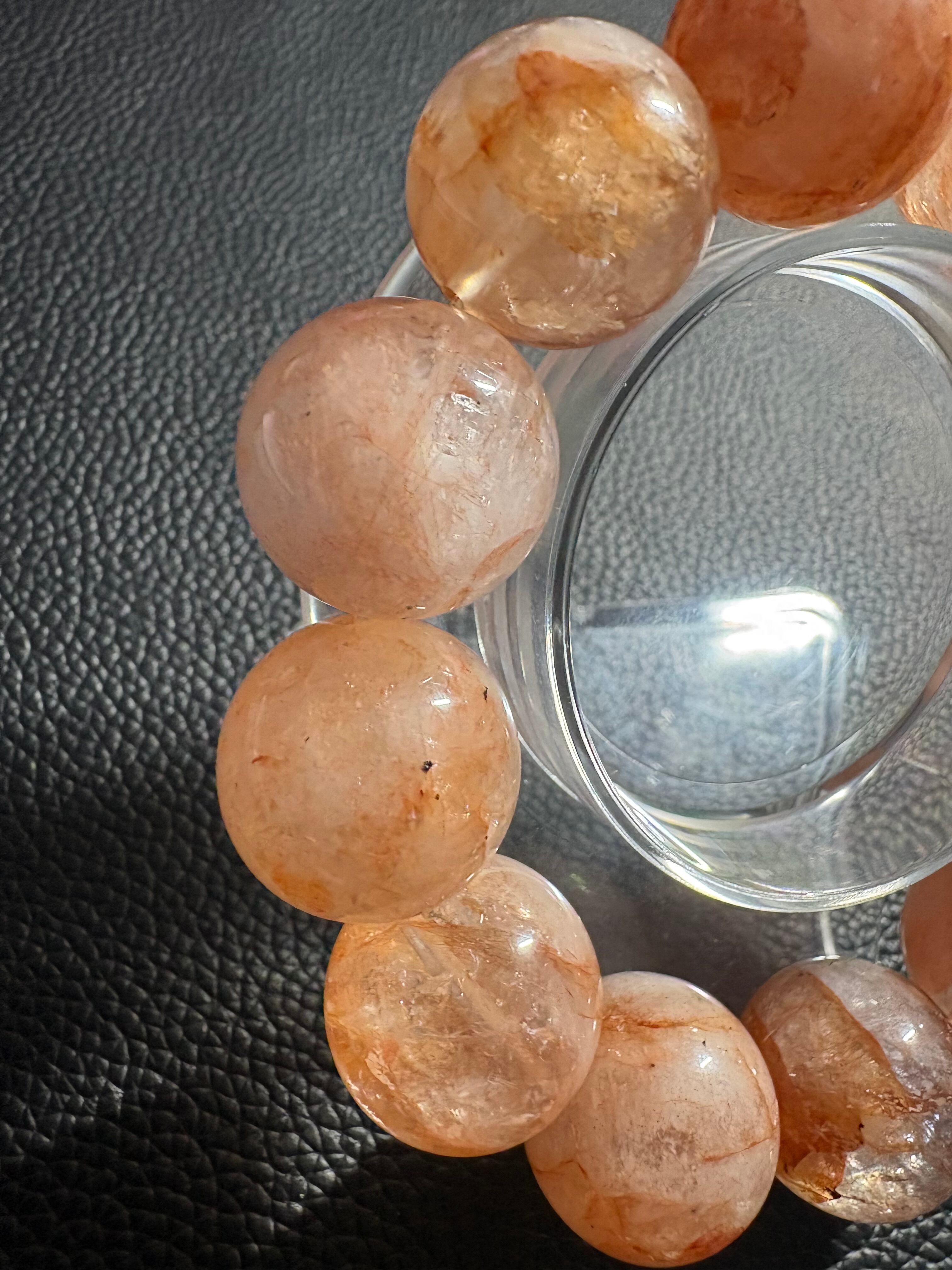 天然のアートのような表情が魅力のライモナイトインクォーツ(褐鉄鉱入り水晶)ブレスレット✨透明感のある水晶の中に広がるオレンジ〜ブラウンの優しい発色は、ひと粒ごとに異なる景色を見せてくれます☆