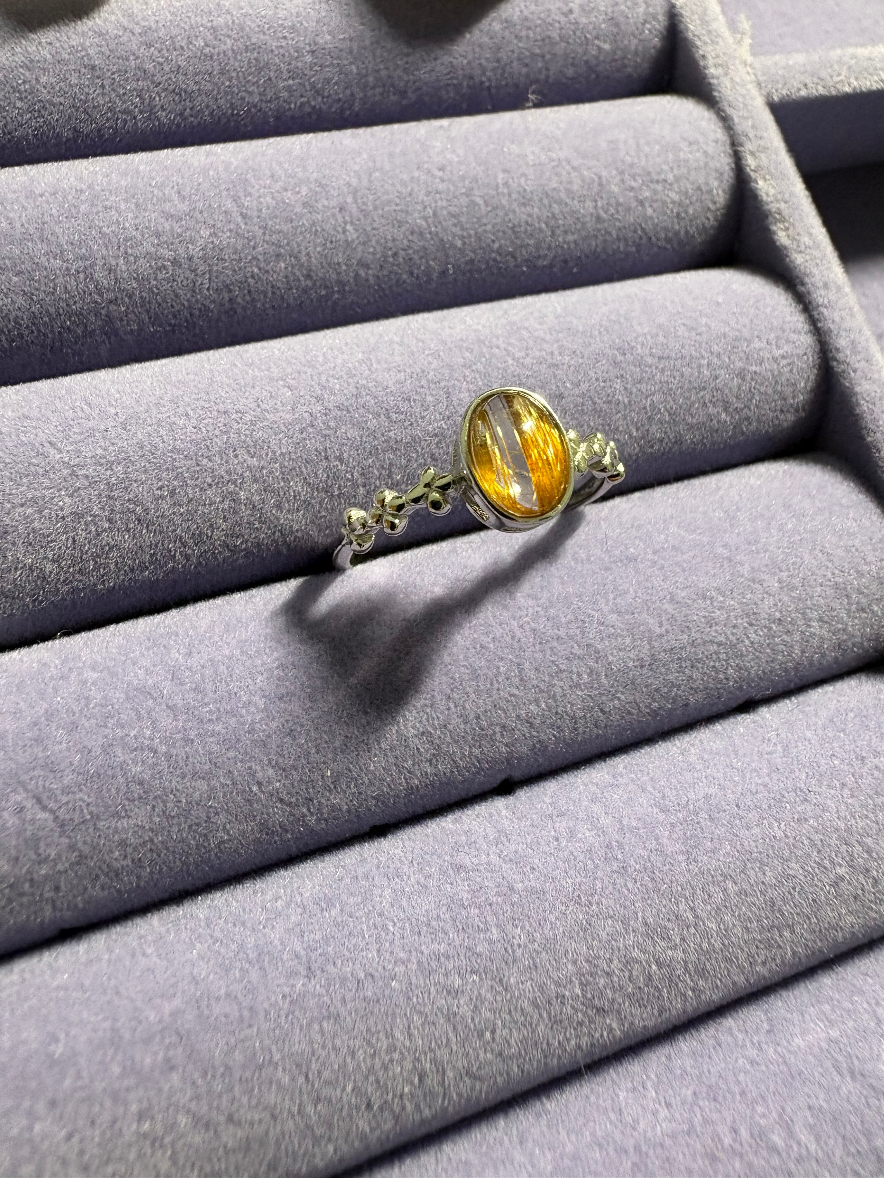 ゴールドカラーの太針(タイチン)が入り、光の当たり方によって華やかに輝く魅力的な一石☆ 上品で繊細なデザインのS925シルバーリング枠が石の存在感を引き立て、手元に高級感と特別感をプラスしてくれます✨
