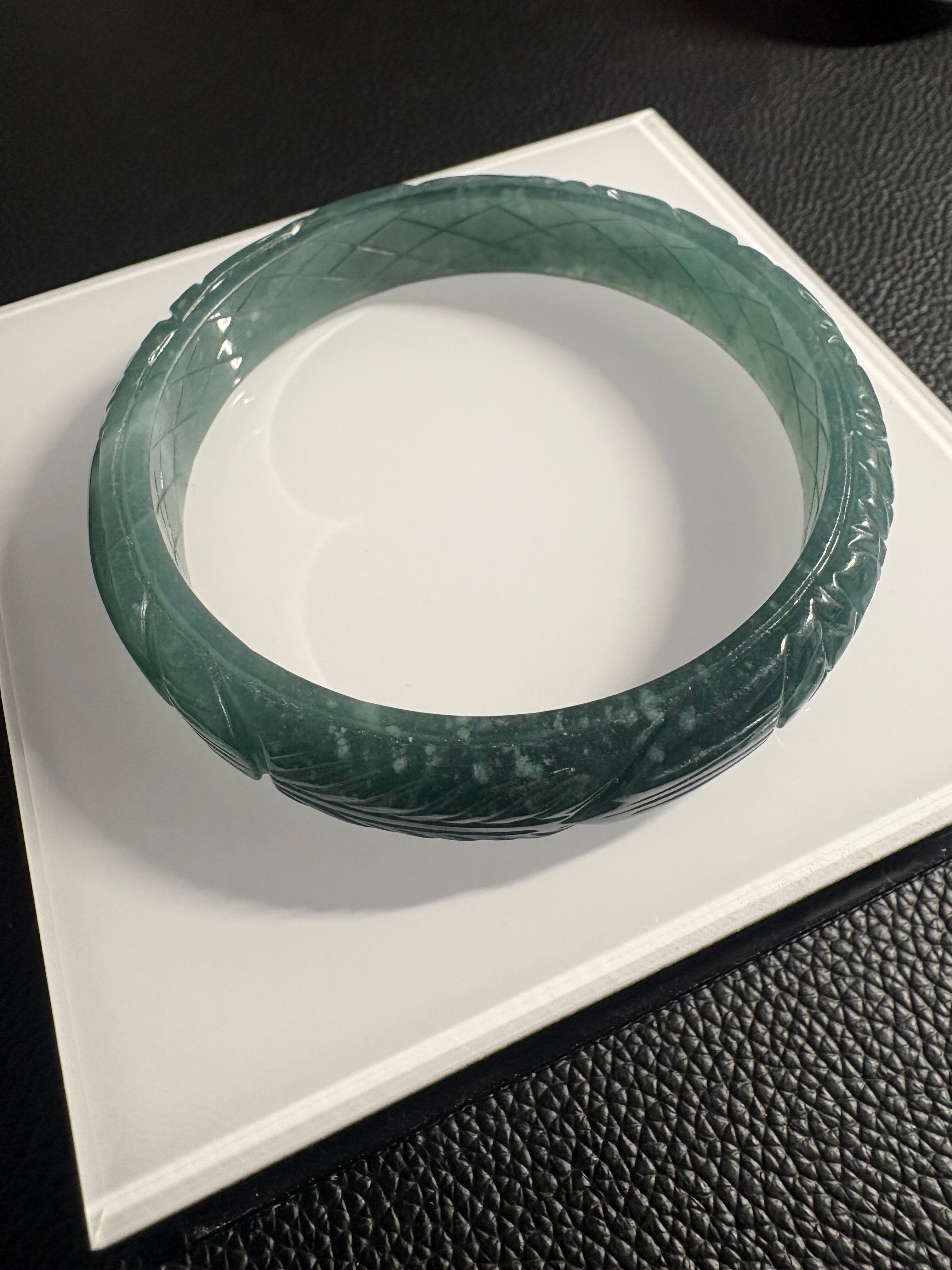 ✨ミャンマー翡翠彫りバングル✨ サイズ11.8ミリ 内径は写真を参考にして下さい✨ ※フォローして頂き、10%OFFクーポンをご利用下さい☆