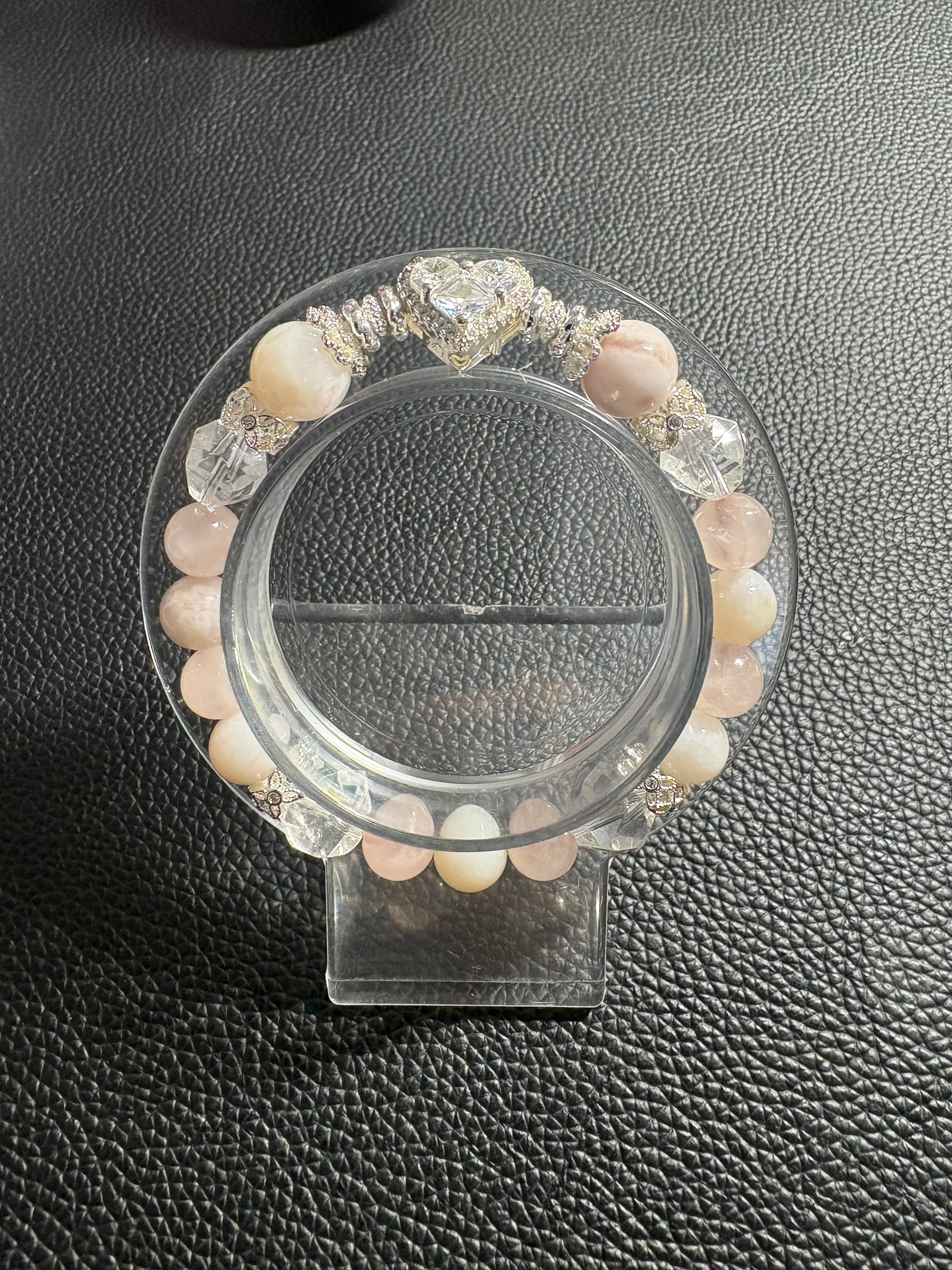 桜瑪瑙✖️ローズクォーツ ハートデザインブレスレット&ピアス