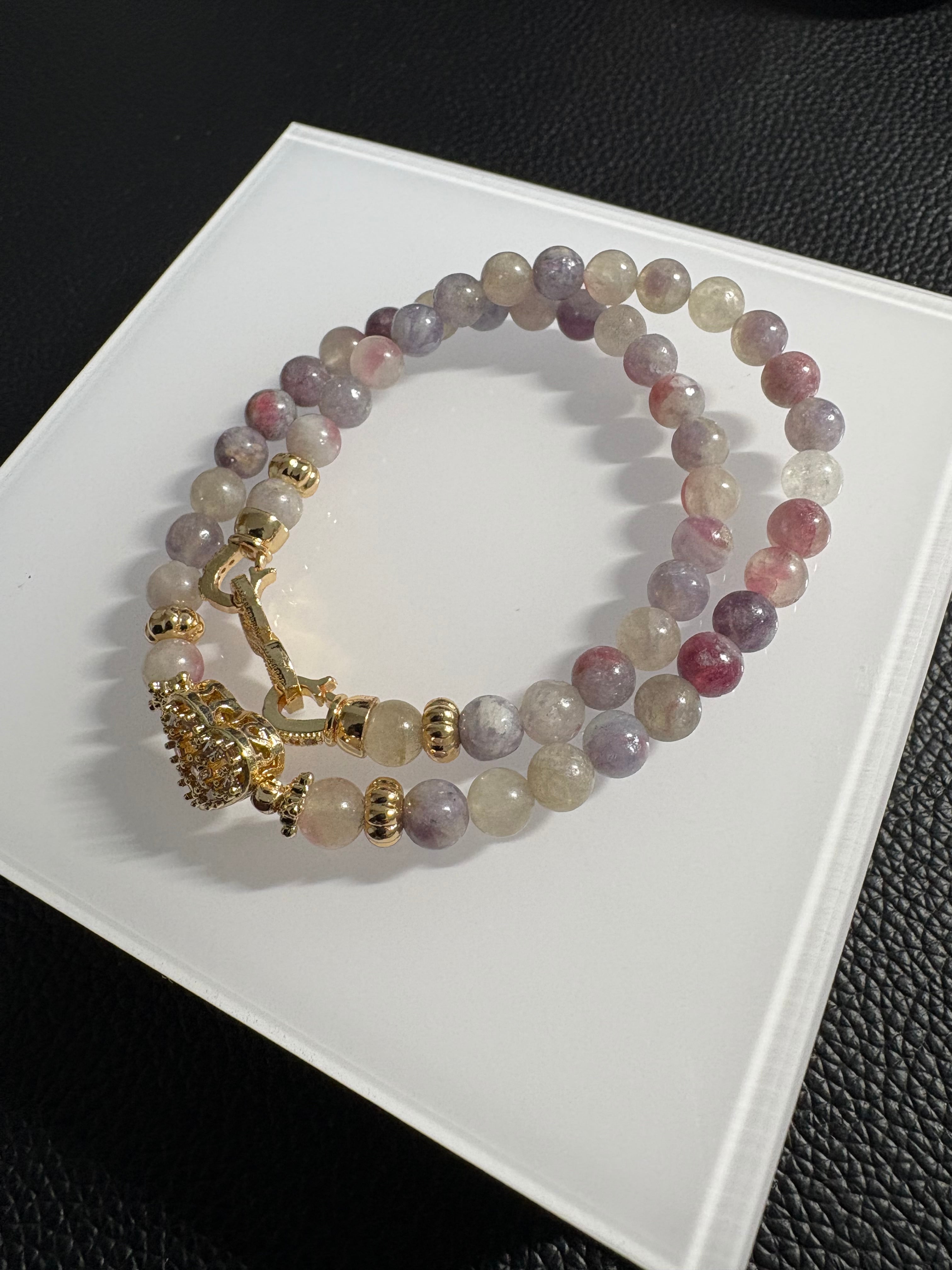 ラベンダー・ピンク・ミルキーイエロー・クリームカラーなどが優しく混ざり合う天然ならではの色彩は、手元をふんわりと女性らしく彩ります✨ 約5.8㎜の華奢なサイズ感ながら、2連デザインにすることで程よいボリュームと存在感を演出してくれる一本です☆